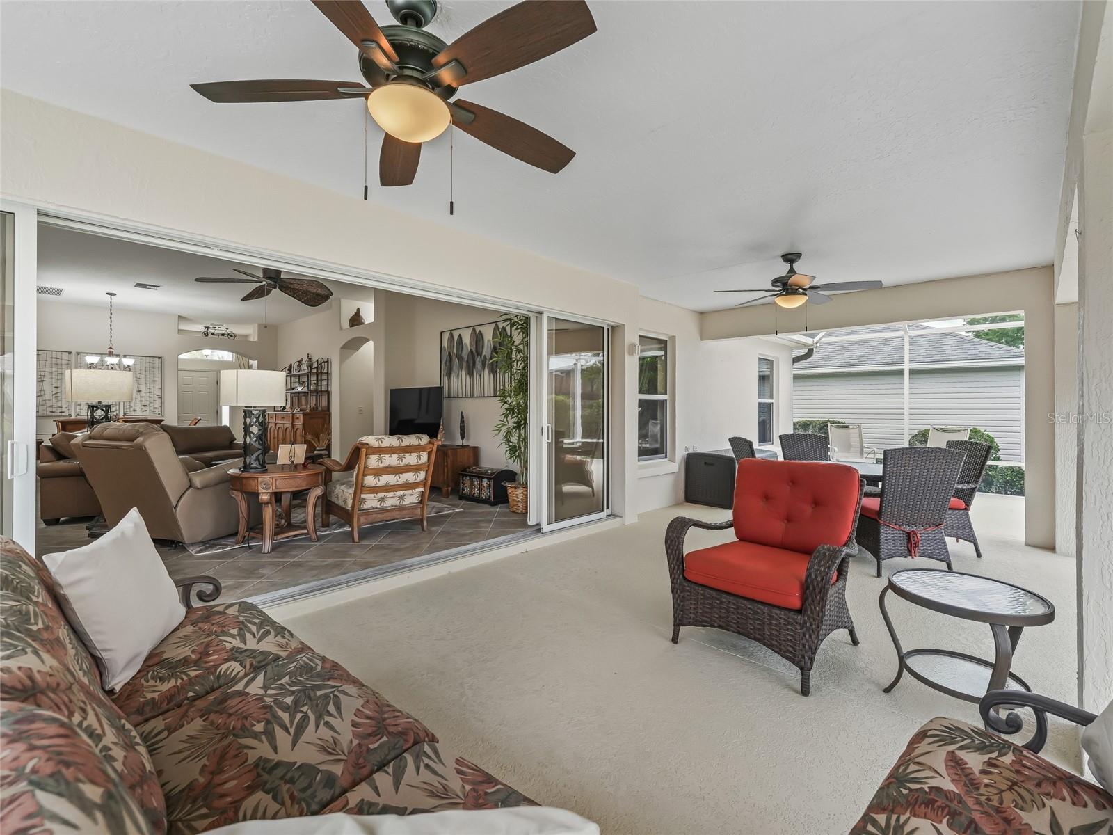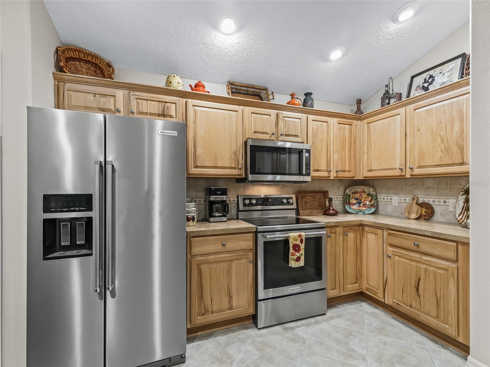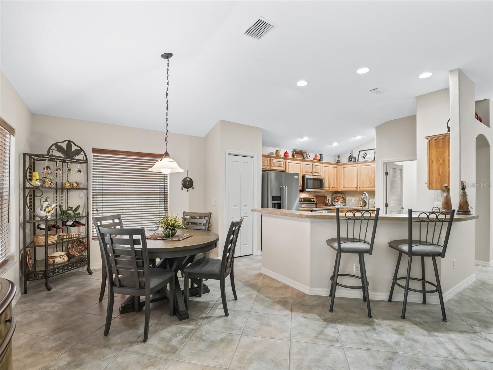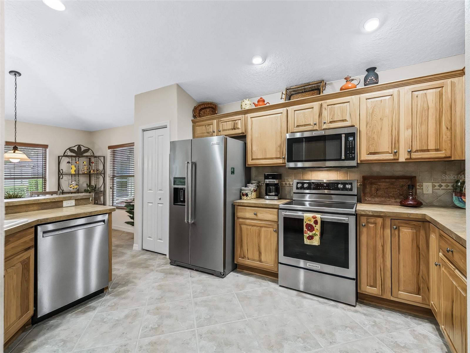 NO BOND. Nestled near the end of a quiet cul-de-sac in the desirable Village of Piedmont, this meticulously maintained one-owner home offers privacy, space, and thoughtful upgrades throughout. Boasting 2,004 SF of living space, this sought-after BLOCK & STUCCO Lantana/Live Oak DESIGNER model sits on an EXTENDED LOT that's 10' DEEPER than standard—plenty of room to enjoy the Florida lifestyle! Step inside to find NO POPCORN ceilings, elegant ROUNDED drywall CORNERS, and beautiful DIAGONAL TILE in the living and wet areas, creating a clean, modern feel. A stand-out feature is the HUGE GLASS DISAPPEARING SLIDER DOORS for and open air concept into the SPACIOUS LANAI! The lanai/ BIRDCAGE (18’ x 38’) feature a new screen enclosure (2022) and an ELECTRIC AWNING—perfect for relaxing any time of day in the shade. The kitchen boasts NEW STAINLESS STEEL appliances (2024), CROWNED HICKORY CABINETS with PULLOUTS, and a gorgeous TILE BACKSPLASH. The garage is extended 2 feet, complete with an EPOXY floor, while the driveway and walkway have been tastefully upgraded with textured paint for added CURB APPEAL. Major updates include: Roof replaced in 2020 HVAC system in 2017 Exterior painted in 2019 This home is truly move-in ready and has been lovingly cared for. Don’t miss your chance to own a piece of paradise in The Villages—schedule your private showing today!
