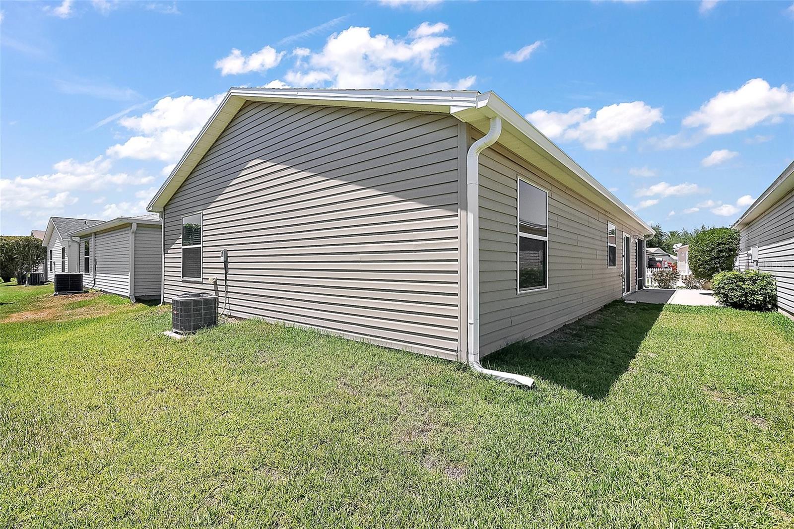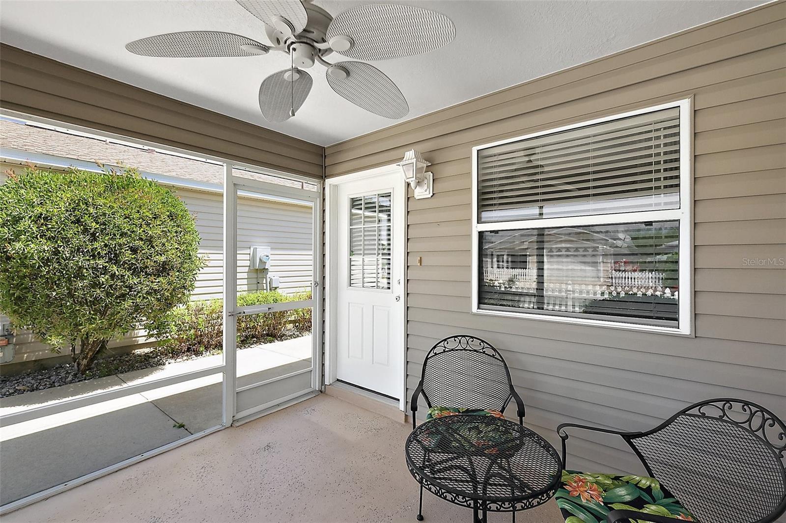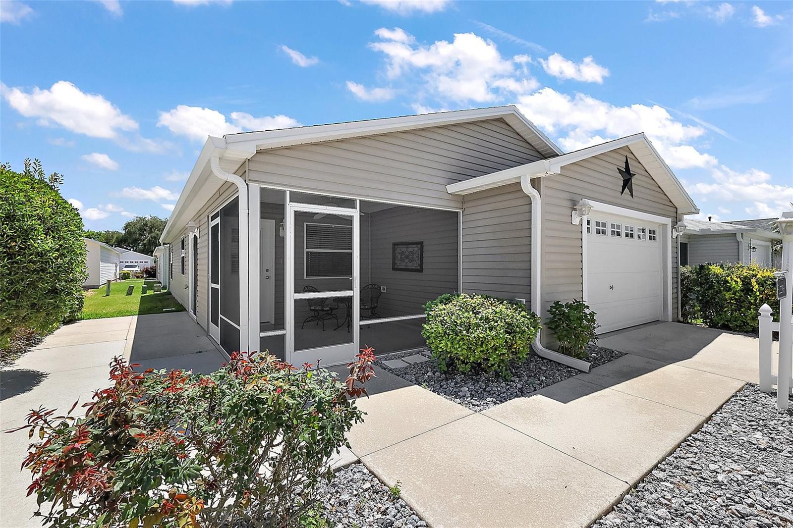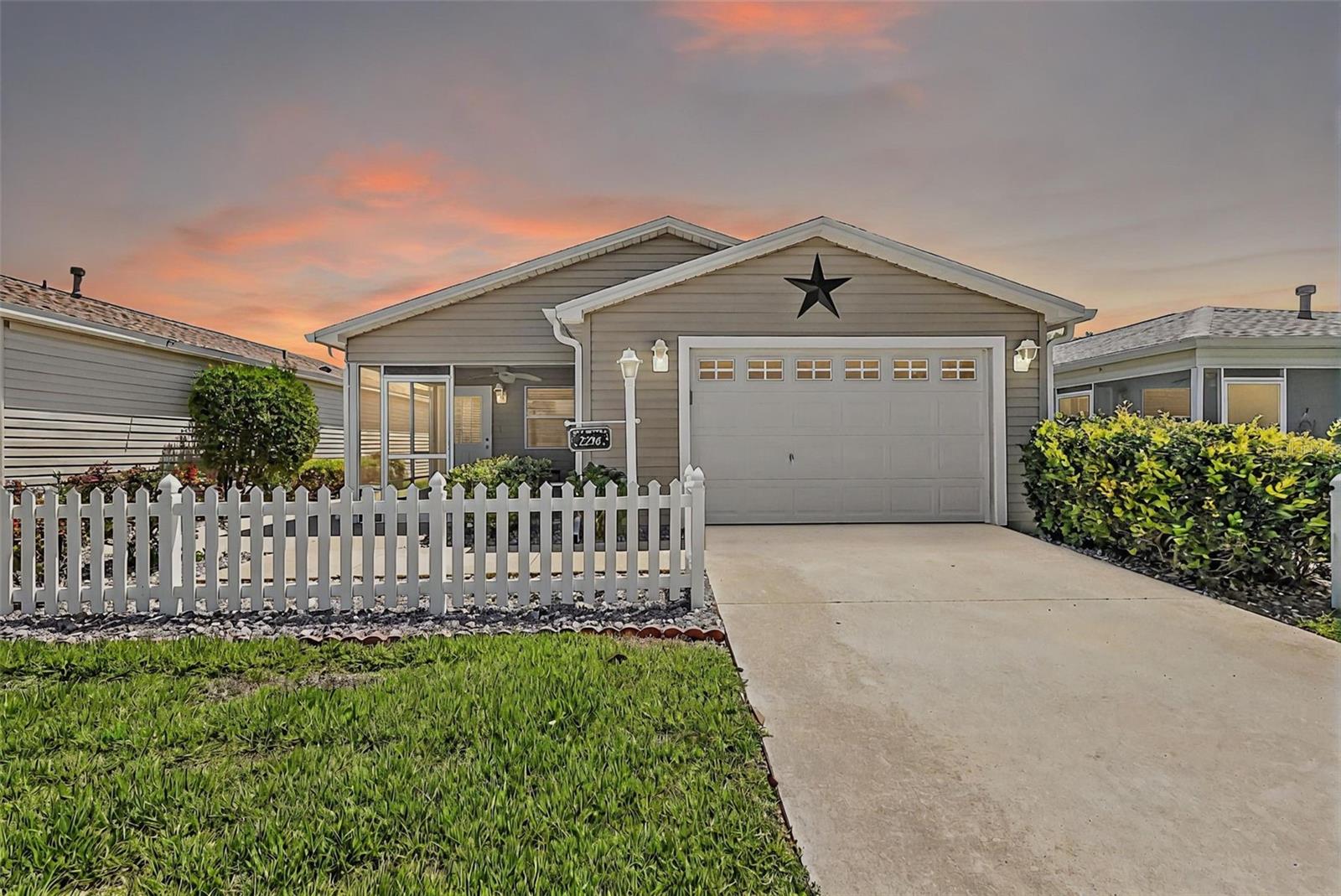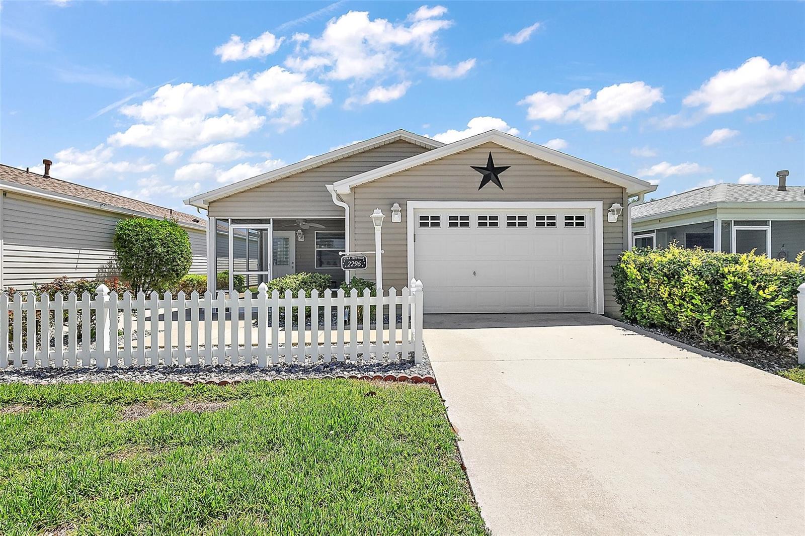 Under contract-accepting backup offers. One or more photo(s) has been virtually staged. Welcome to this 2/2 Colony Patio Villa in the charming Village of Ashland. Featuring NO carpet, a PAID bond, and a 2021 roof, this home is ready for you to make it your own. The front exterior features lush landscaping and a welcoming front lanai that leads to the entryway. Inside, you'll find laminate flooring throughout. The open living and dining area includes a sliding glass door that opens to the side patio, perfect for enjoying the outdoors. The kitchen boasts WHITE CABINETRY, breakfast bar, and dinette area. The primary suite is a true oasis with a walk-in closet and ensuite bath which boasts a walk-in shower with glass doors. Bedroom two is perfect for guests with a built in closet and close proximity to the guest bathroom. This home offers valuable updates, including a 25-year roof warranty that began in 2021. Interior paint and hardwood laminate flooring were completed in 2015. Additional upgrades include a water softener and reverse osmosis system, a lanai ceiling fan, and two updated vanity lights. Conveniently located between 466 and 466A, the Village of Ashland is only a short golf cart ride to Lake Sumter Landing and the shopping, restaurants, and banks on 466. Nearby, you’ll find Publix, Fresh Market, CVS, Walgreens, Ace Hardware, Bonefish Grill, Olive Garden, Culver's, Bob Evans, and Starbucks. The Village of Ashland has its own neighborhood recreation center, complete with an adult swimming pool, bocce, shuffleboard courts, and horseshoe pits. Just around the corner is the Churchill Street Village Recreation Center. Nearby executive courses include Pimlico, Churchill Greens, and Belmont. The Arnold Palmer Country Club and Championship Golf Course is also just minutes away. PLEASE WATCH OUR WALKTHROUGH VIDEO OF THIS HOME and call today to schedule your Private Showing or Virtual Tour!