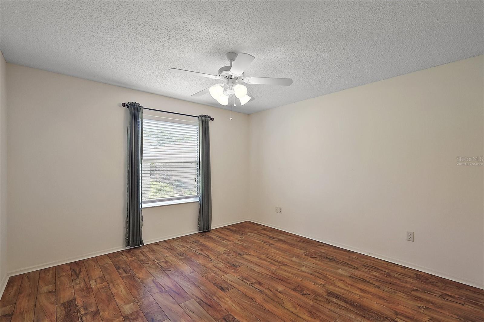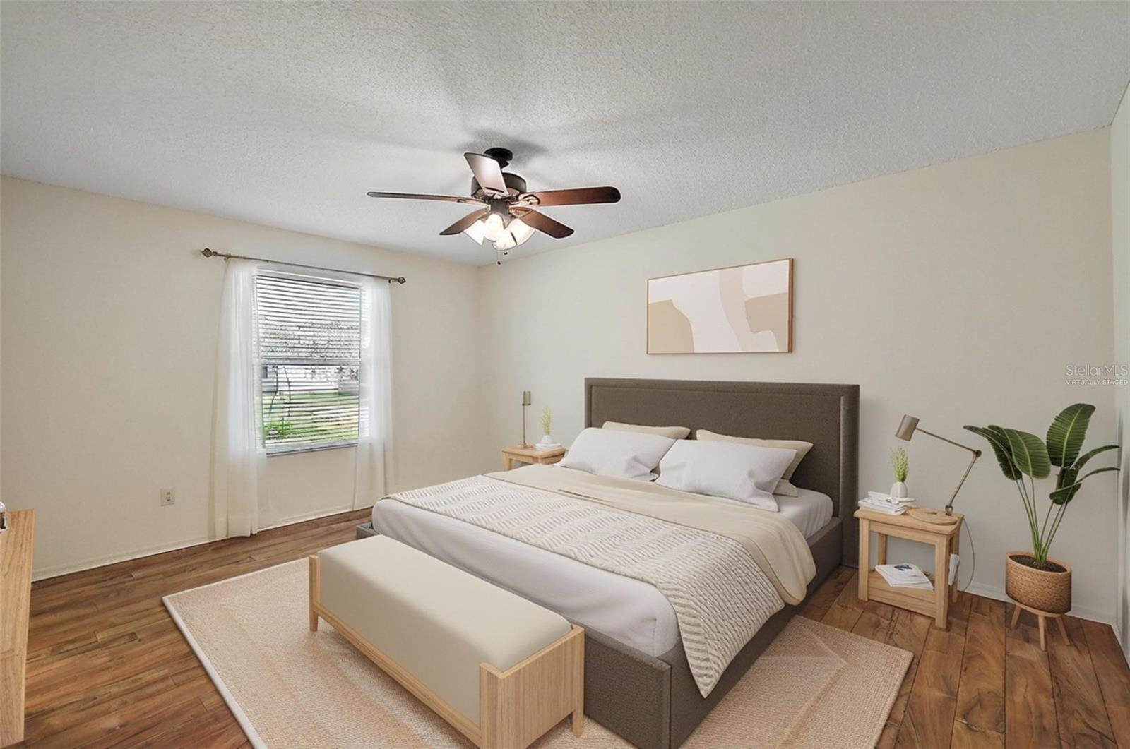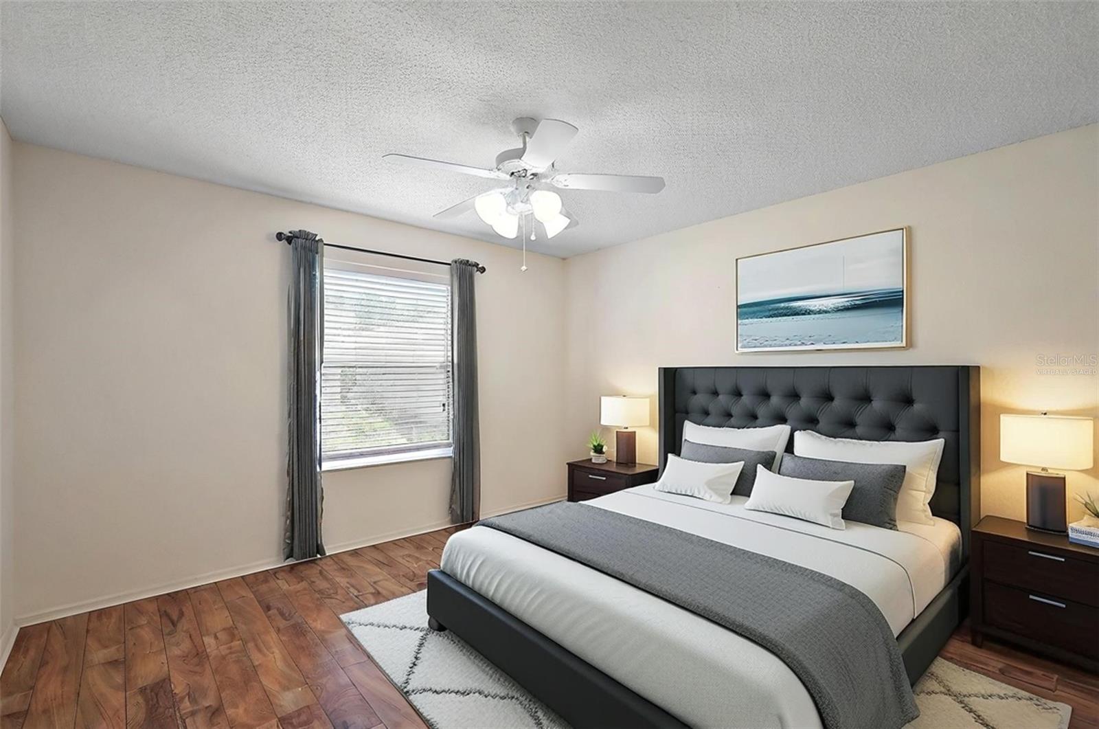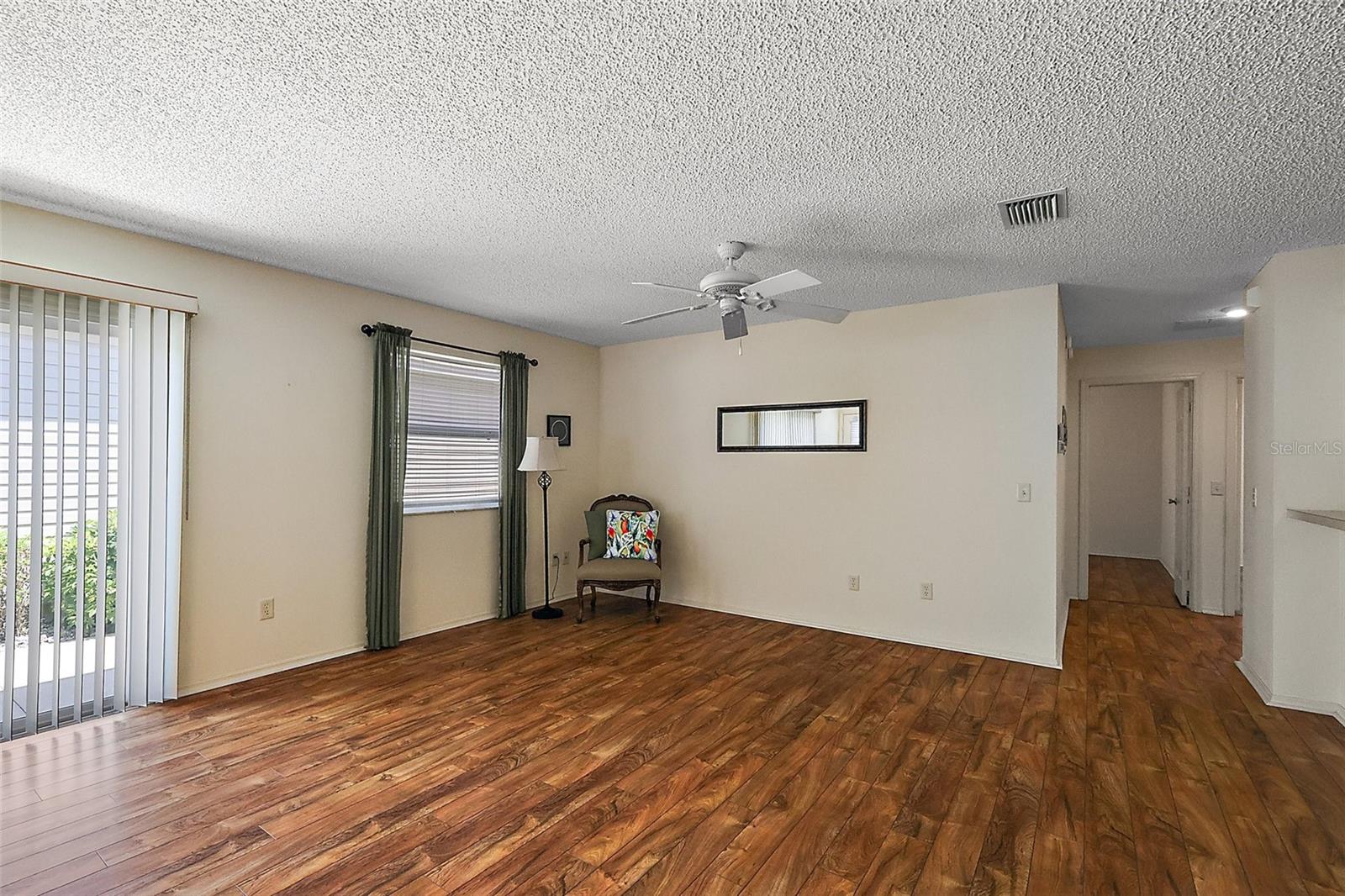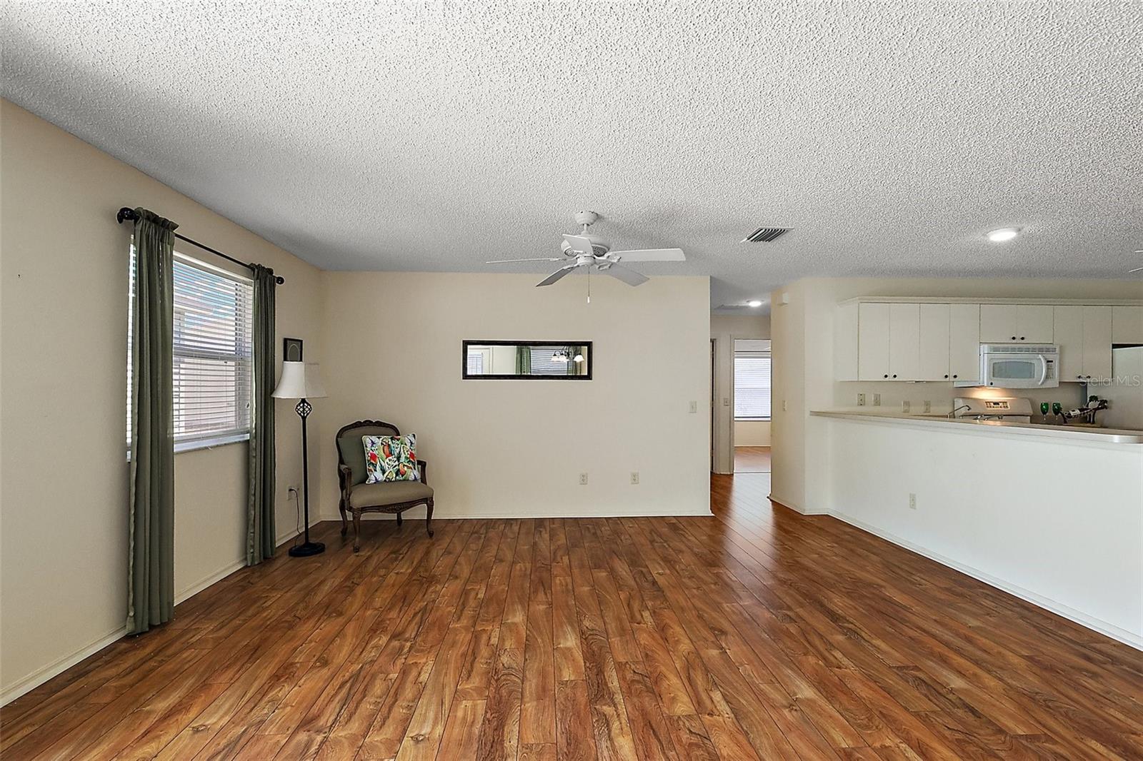 Under contract-accepting backup offers. One or more photo(s) has been virtually staged. Welcome to this 2/2 Colony Patio Villa in the charming Village of Ashland. Featuring NO carpet, a PAID bond, and a 2021 roof, this home is ready for you to make it your own. The front exterior features lush landscaping and a welcoming front lanai that leads to the entryway. Inside, you'll find laminate flooring throughout. The open living and dining area includes a sliding glass door that opens to the side patio, perfect for enjoying the outdoors. The kitchen boasts WHITE CABINETRY, breakfast bar, and dinette area. The primary suite is a true oasis with a walk-in closet and ensuite bath which boasts a walk-in shower with glass doors. Bedroom two is perfect for guests with a built in closet and close proximity to the guest bathroom. This home offers valuable updates, including a 25-year roof warranty that began in 2021. Interior paint and hardwood laminate flooring were completed in 2015. Additional upgrades include a water softener and reverse osmosis system, a lanai ceiling fan, and two updated vanity lights. Conveniently located between 466 and 466A, the Village of Ashland is only a short golf cart ride to Lake Sumter Landing and the shopping, restaurants, and banks on 466. Nearby, you’ll find Publix, Fresh Market, CVS, Walgreens, Ace Hardware, Bonefish Grill, Olive Garden, Culver's, Bob Evans, and Starbucks. The Village of Ashland has its own neighborhood recreation center, complete with an adult swimming pool, bocce, shuffleboard courts, and horseshoe pits. Just around the corner is the Churchill Street Village Recreation Center. Nearby executive courses include Pimlico, Churchill Greens, and Belmont. The Arnold Palmer Country Club and Championship Golf Course is also just minutes away. PLEASE WATCH OUR WALKTHROUGH VIDEO OF THIS HOME and call today to schedule your Private Showing or Virtual Tour!