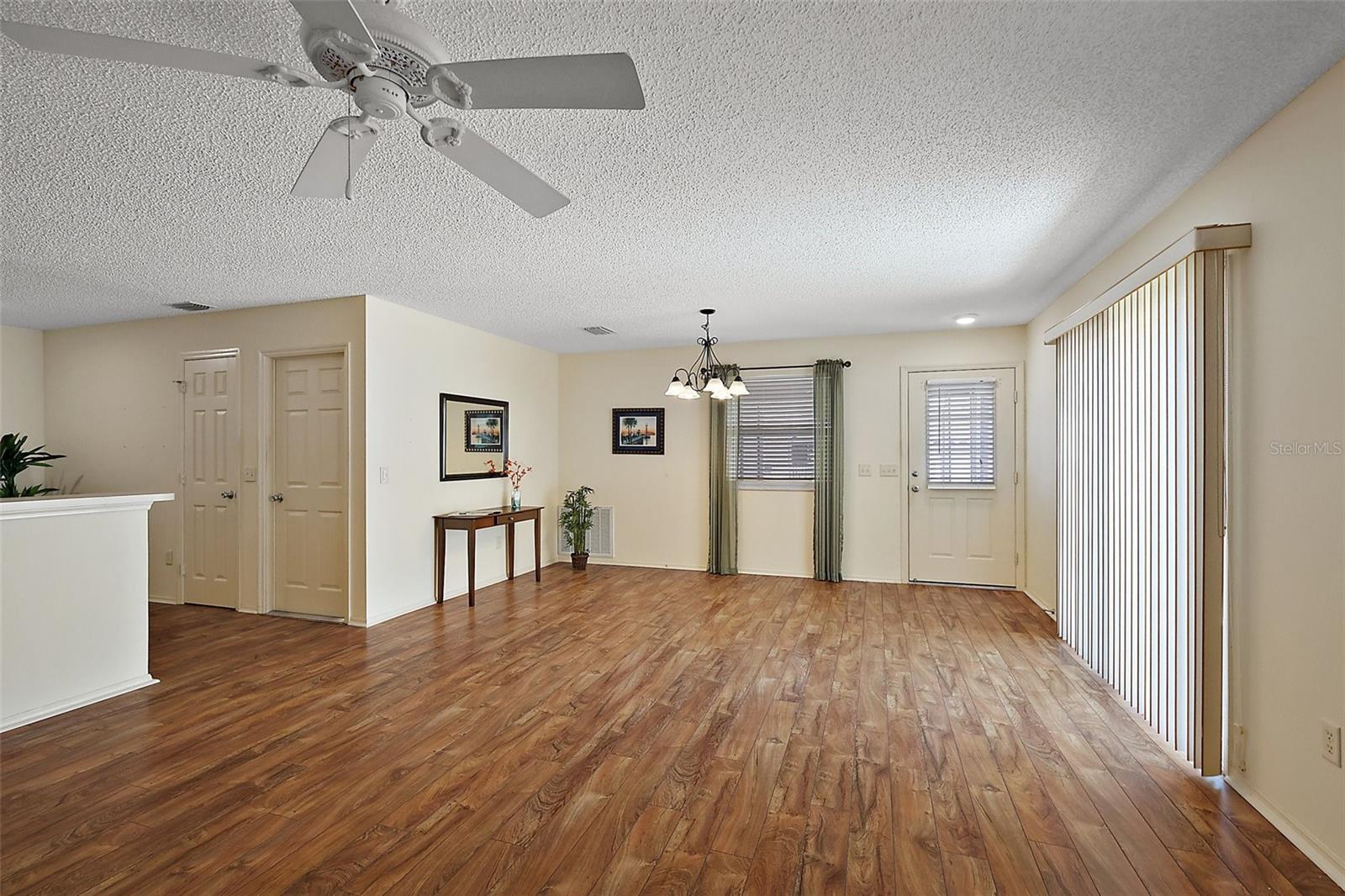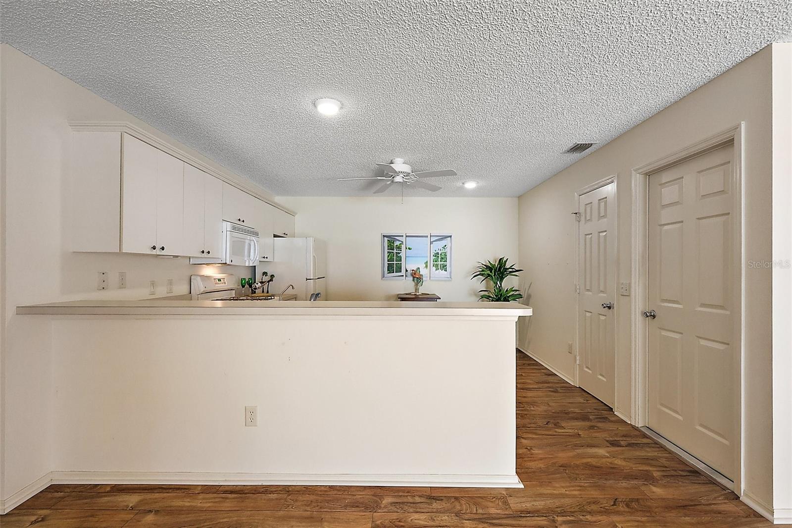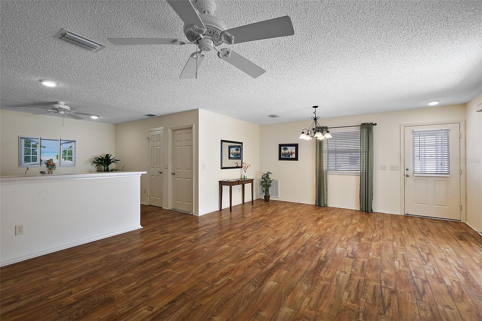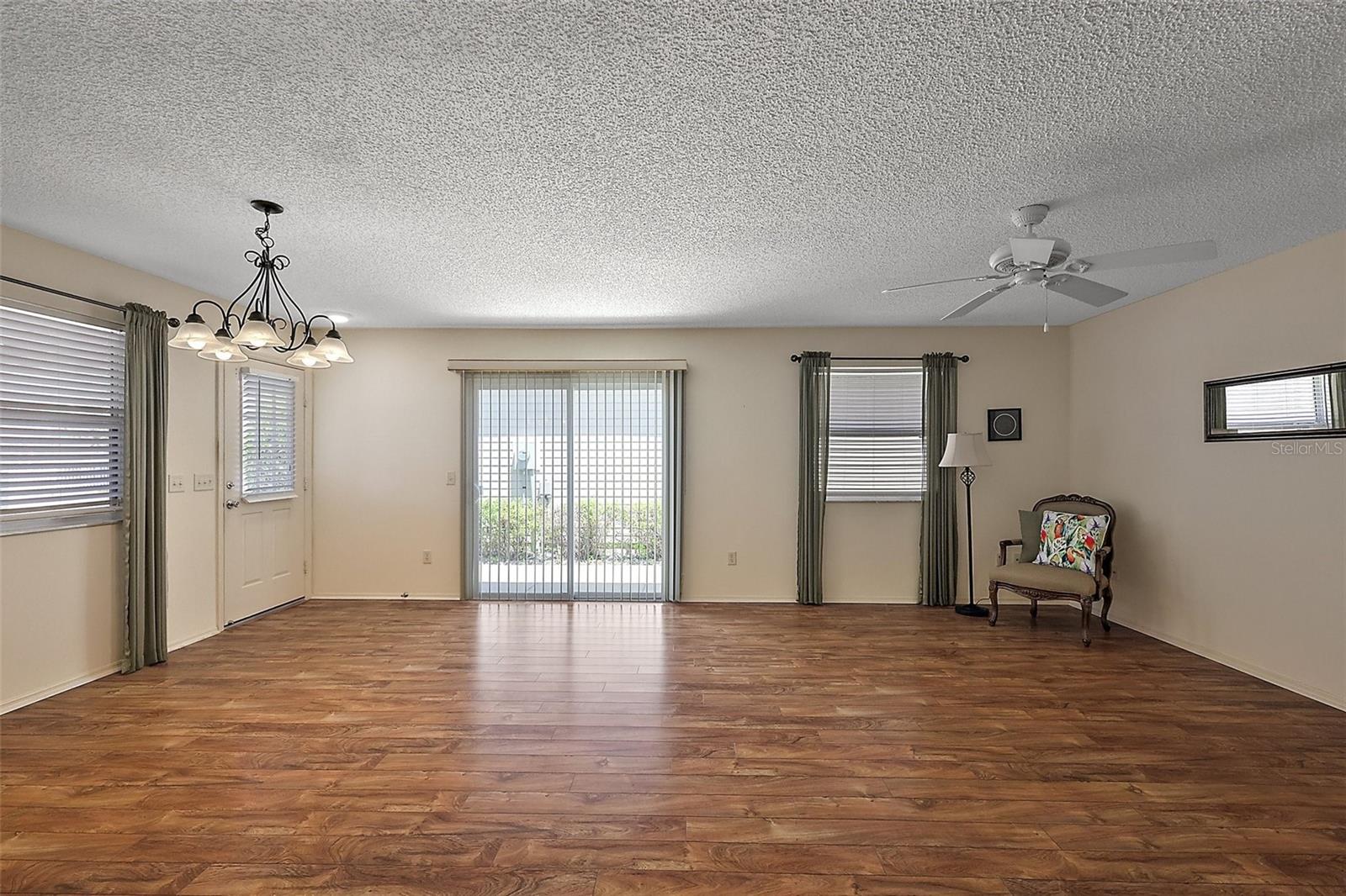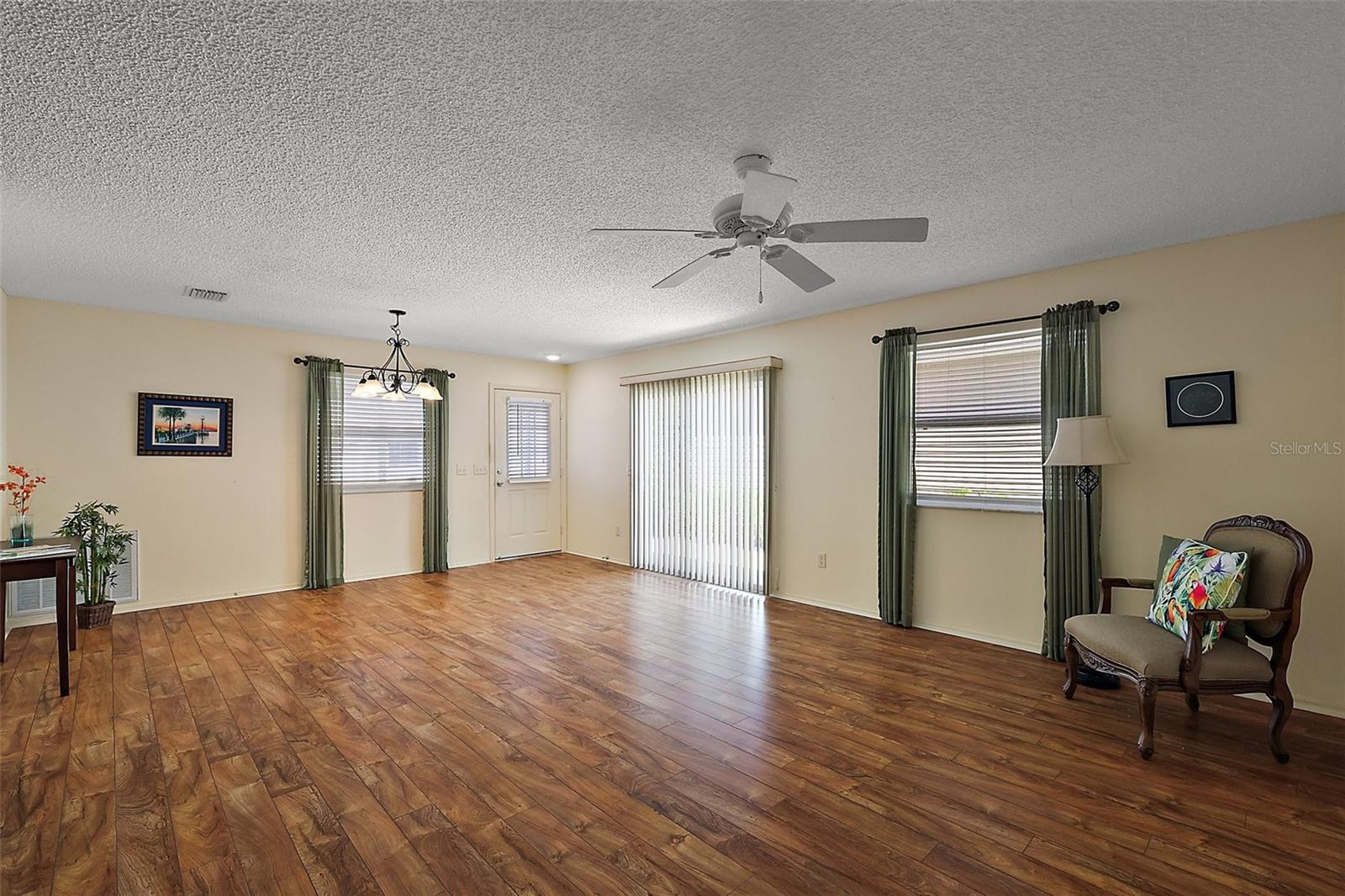 Under contract-accepting backup offers. One or more photo(s) has been virtually staged. Welcome to this 2/2 Colony Patio Villa in the charming Village of Ashland. Featuring NO carpet, a PAID bond, and a 2021 roof, this home is ready for you to make it your own. The front exterior features lush landscaping and a welcoming front lanai that leads to the entryway. Inside, you'll find laminate flooring throughout. The open living and dining area includes a sliding glass door that opens to the side patio, perfect for enjoying the outdoors. The kitchen boasts WHITE CABINETRY, breakfast bar, and dinette area. The primary suite is a true oasis with a walk-in closet and ensuite bath which boasts a walk-in shower with glass doors. Bedroom two is perfect for guests with a built in closet and close proximity to the guest bathroom. This home offers valuable updates, including a 25-year roof warranty that began in 2021. Interior paint and hardwood laminate flooring were completed in 2015. Additional upgrades include a water softener and reverse osmosis system, a lanai ceiling fan, and two updated vanity lights. Conveniently located between 466 and 466A, the Village of Ashland is only a short golf cart ride to Lake Sumter Landing and the shopping, restaurants, and banks on 466. Nearby, you’ll find Publix, Fresh Market, CVS, Walgreens, Ace Hardware, Bonefish Grill, Olive Garden, Culver's, Bob Evans, and Starbucks. The Village of Ashland has its own neighborhood recreation center, complete with an adult swimming pool, bocce, shuffleboard courts, and horseshoe pits. Just around the corner is the Churchill Street Village Recreation Center. Nearby executive courses include Pimlico, Churchill Greens, and Belmont. The Arnold Palmer Country Club and Championship Golf Course is also just minutes away. PLEASE WATCH OUR WALKTHROUGH VIDEO OF THIS HOME and call today to schedule your Private Showing or Virtual Tour!