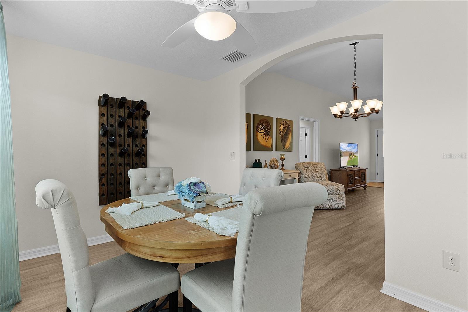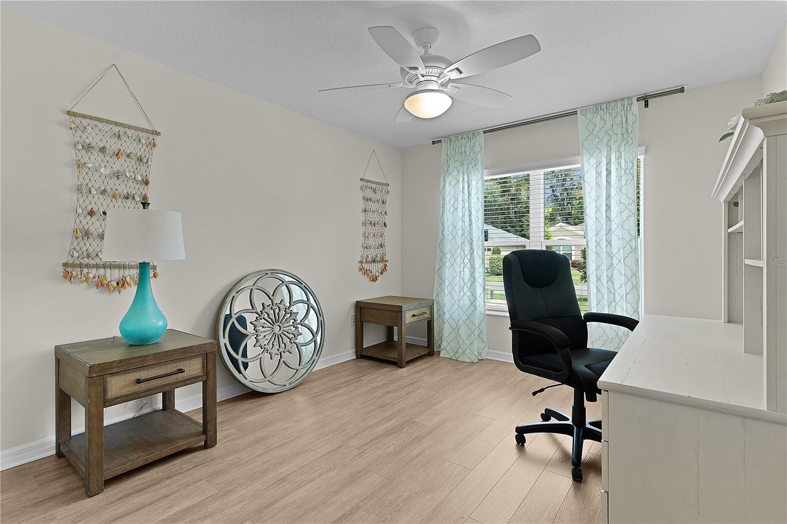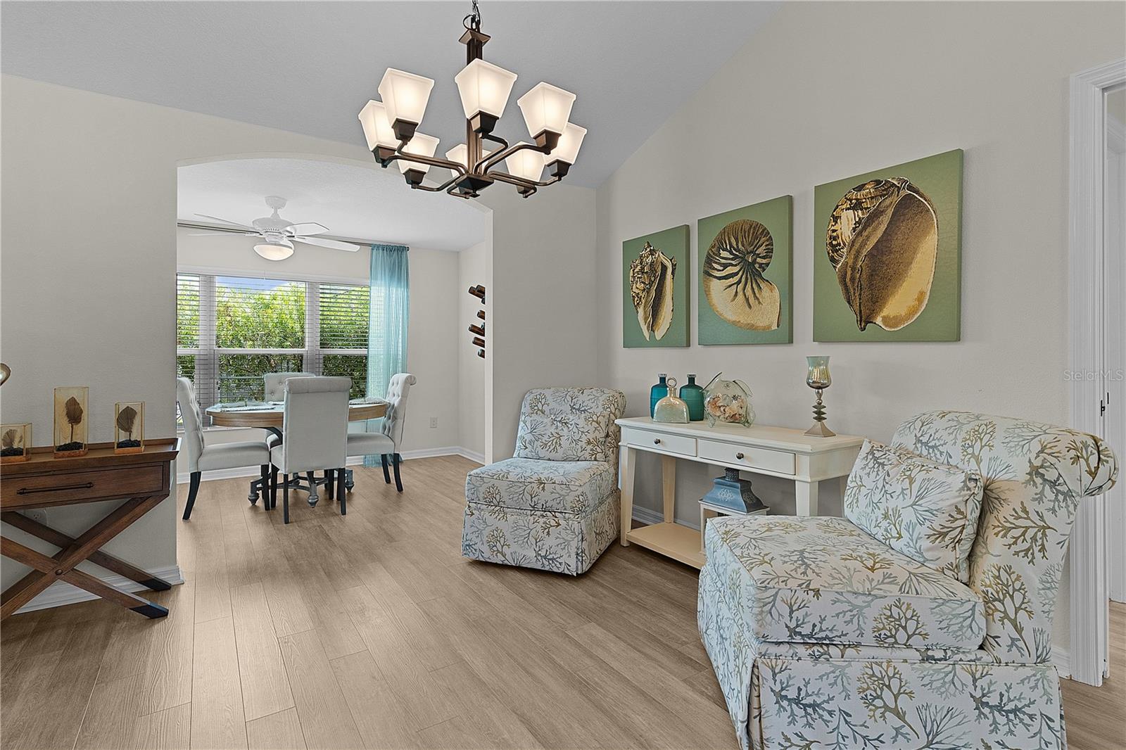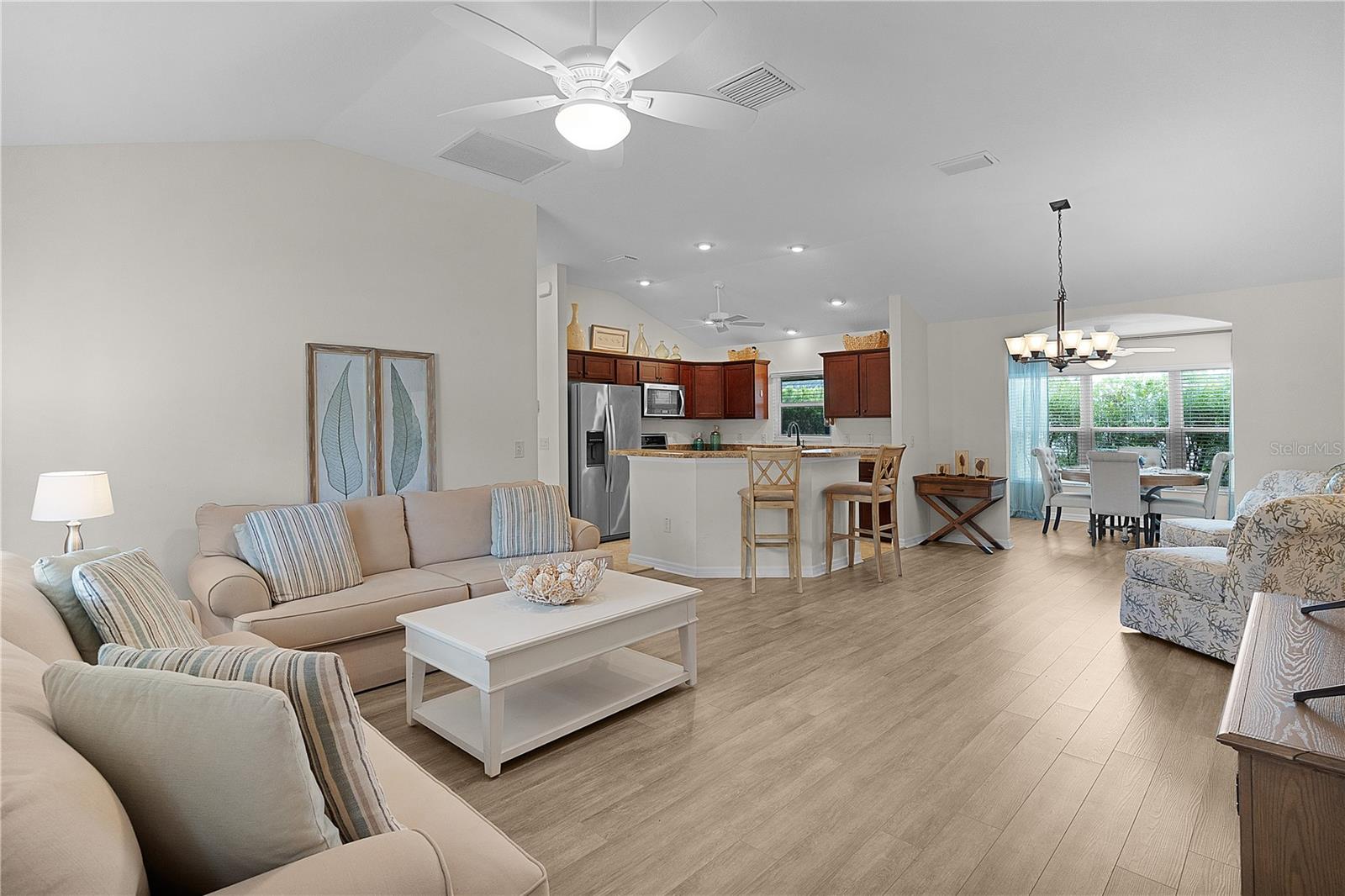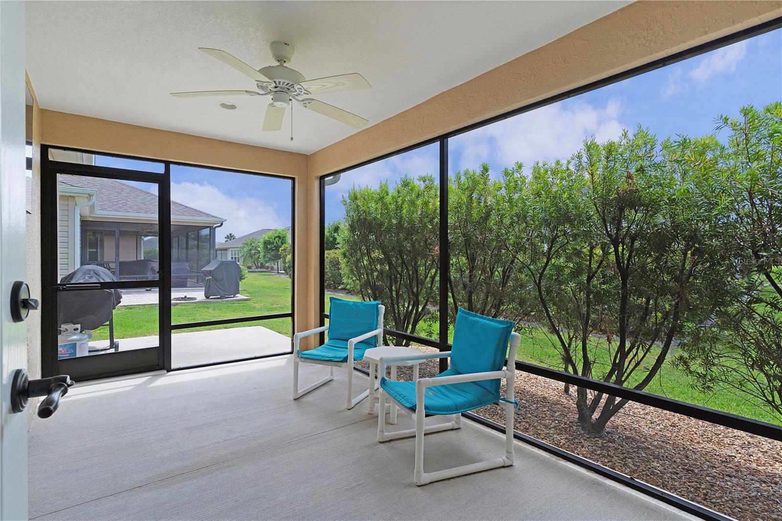 Move right in and start enjoying the Villages Lifestyle right away! FABULOUS PRICE on this Beautiful 3/2 Block/Stucco ALLAMANDA Designer home with a Sunny Florida Room...and is ready for immediate occupancy. Being offered TURNKEY with Quality furnishings, you’ll want to make this wonderful home your own. As you approach, you'll be greeted with attractive curb appeal and a cozy North-facing covered front porch - very welcoming! Inside, you’ll immediately feel at home with a spacious living area featuring VAULTED KNOCKDOWN CEILINGS and LUXURY VINYL PLANKING in the main living area, Florida Room and Guest room. You'll love the open concept of this very popular model which boasts 3 bedrooms (closets in all), 2 spacious bathrooms, Florida Room, Inside laundry with extra cabinets, and an Oversized 2-car garage. Ideal for entertaining, the open kitchen offers Stainless appliances with a Natural Gas Range, plenty of cabinets with pull-out shelves, a Closet pantry, ceiling fan, and the breakfast bar makes for a wonderful gathering spot. The inviting Florida Room leads to the South-facing Covered and Screened lanai to enjoy the fresh air without the elements, and the strategically placed hedge offers a bit of PRIVACY. The outdoor patio is a perfect spot for grilling. The Large primary suite features an en-suite bath with DUAL sinks, 2 WALK-IN CLOSETS, Custom Tiled Walk-in Shower, Ceiling fan and Privacy commode. You and your guests will appreciate the Privacy afforded by a pocket door to the 2 guest bedrooms and a full guest bath which offers a deep soaking tub/shower combo! Additional features include a whole house Nova Water Filtration system, Tankless Gas Water Heater, gutters, blinds, window treatments, utility tub, and the extra storage closet in the garage will be appreciated. Conveniently located in the Village of Fenney, you can easily access all your favorite activities by golf cart --numerous golf courses, pools, recreation centers, dining, shopping, medical services, and much, much more! Be sure to watch the VIDEO TOUR! The tax line reflects property taxes, and the CDD line includes the bond, maintenance, and fire district. Bond balance: $21,225.36. So…what are you waiting for? If not now, when? Call to book your private showing today before it is too late!