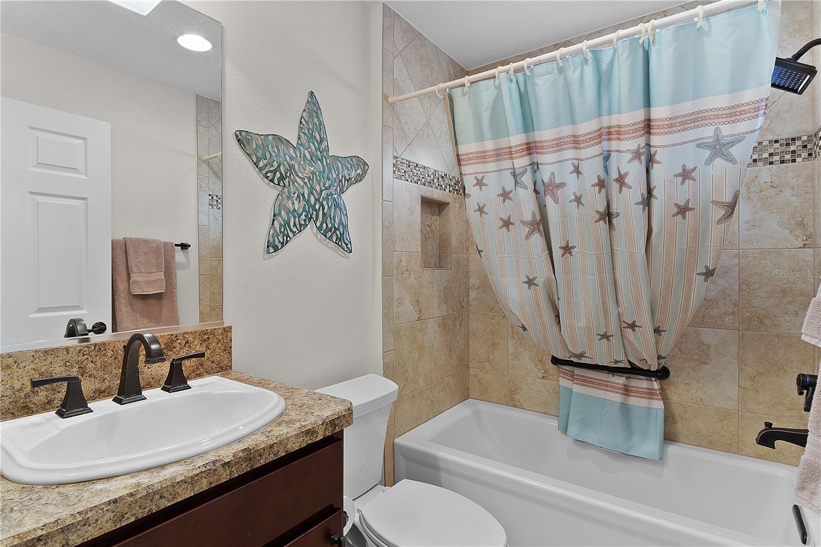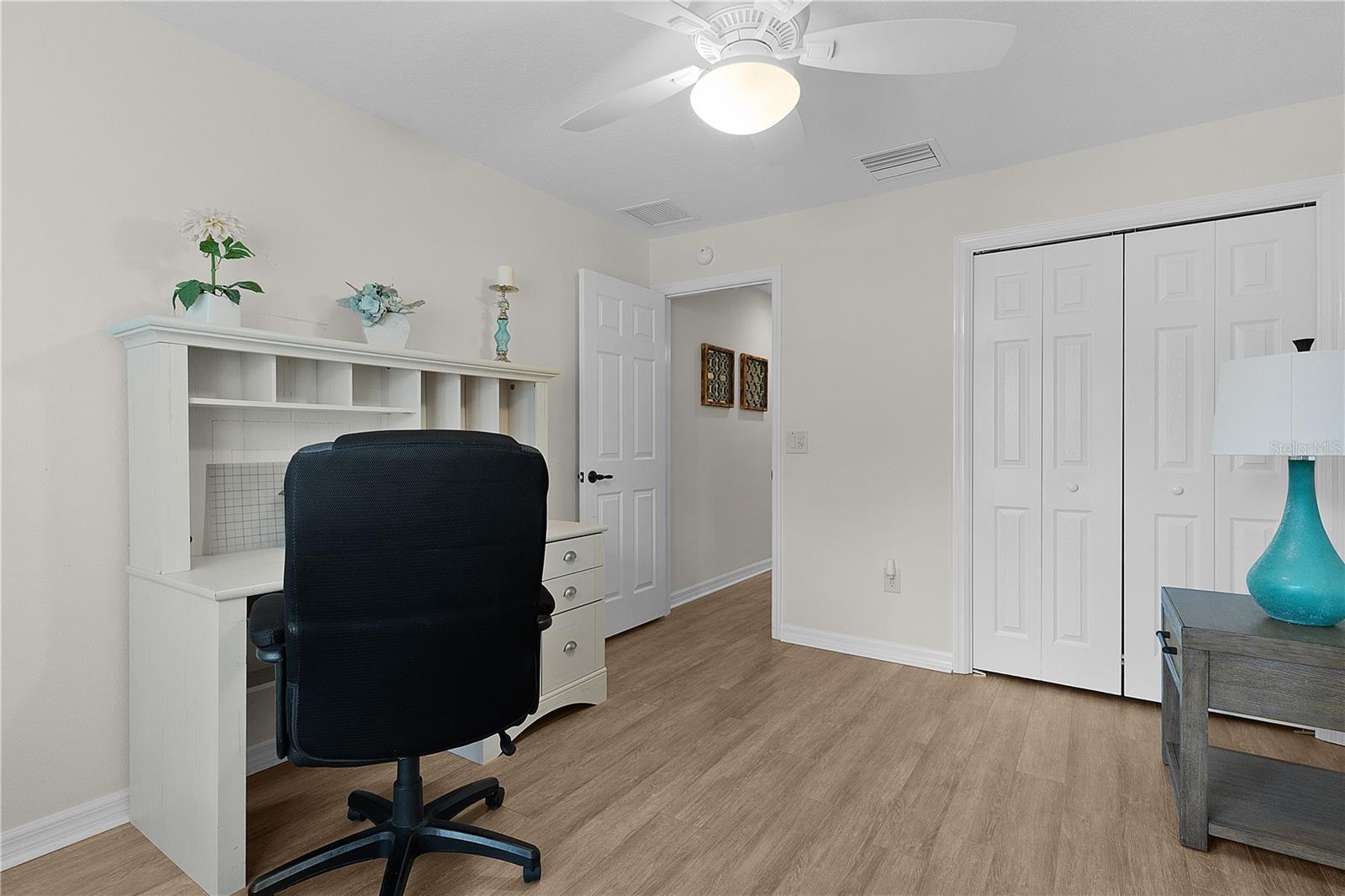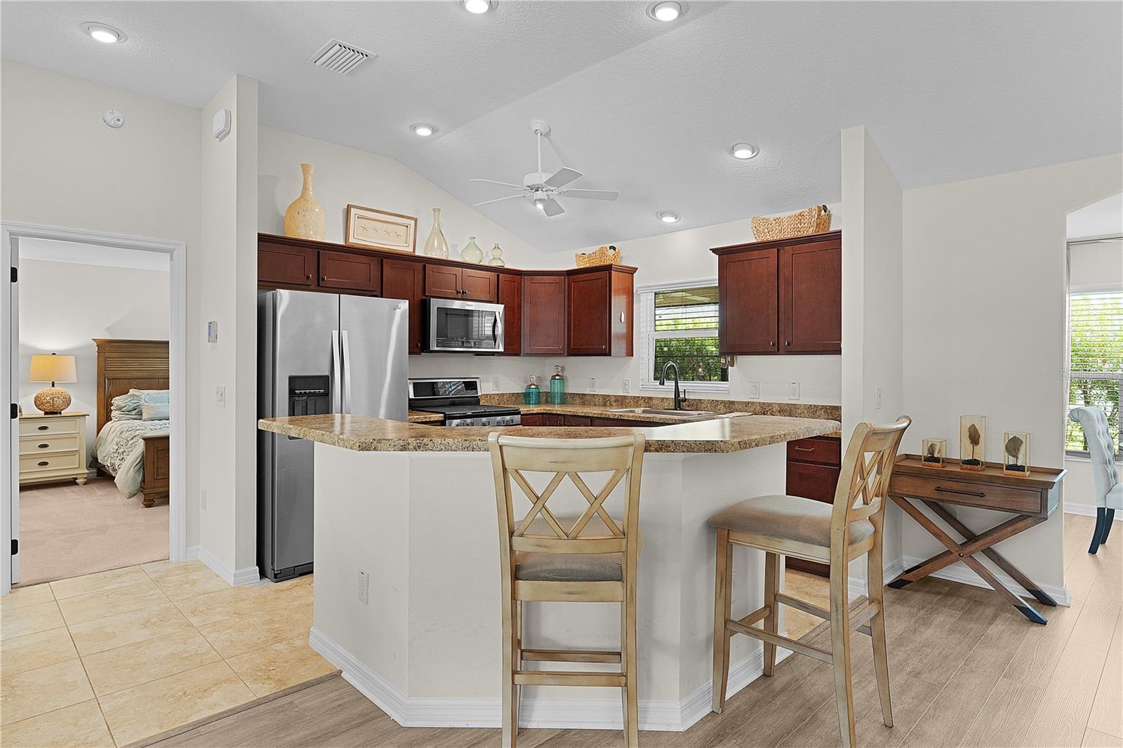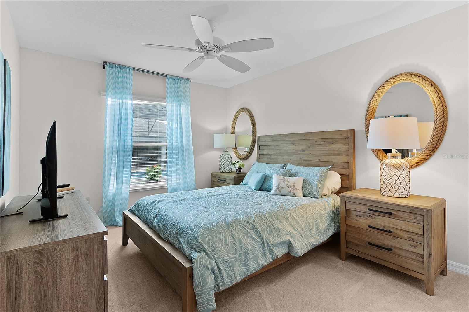 Move right in and start enjoying the Villages Lifestyle right away! FABULOUS PRICE on this Beautiful 3/2 Block/Stucco ALLAMANDA Designer home with a Sunny Florida Room...and is ready for immediate occupancy. Being offered TURNKEY with Quality furnishings, you’ll want to make this wonderful home your own. As you approach, you'll be greeted with attractive curb appeal and a cozy North-facing covered front porch - very welcoming! Inside, you’ll immediately feel at home with a spacious living area featuring VAULTED KNOCKDOWN CEILINGS and LUXURY VINYL PLANKING in the main living area, Florida Room and Guest room. You'll love the open concept of this very popular model which boasts 3 bedrooms (closets in all), 2 spacious bathrooms, Florida Room, Inside laundry with extra cabinets, and an Oversized 2-car garage. Ideal for entertaining, the open kitchen offers Stainless appliances with a Natural Gas Range, plenty of cabinets with pull-out shelves, a Closet pantry, ceiling fan, and the breakfast bar makes for a wonderful gathering spot. The inviting Florida Room leads to the South-facing Covered and Screened lanai to enjoy the fresh air without the elements, and the strategically placed hedge offers a bit of PRIVACY. The outdoor patio is a perfect spot for grilling. The Large primary suite features an en-suite bath with DUAL sinks, 2 WALK-IN CLOSETS, Custom Tiled Walk-in Shower, Ceiling fan and Privacy commode. You and your guests will appreciate the Privacy afforded by a pocket door to the 2 guest bedrooms and a full guest bath which offers a deep soaking tub/shower combo! Additional features include a whole house Nova Water Filtration system, Tankless Gas Water Heater, gutters, blinds, window treatments, utility tub, and the extra storage closet in the garage will be appreciated. Conveniently located in the Village of Fenney, you can easily access all your favorite activities by golf cart --numerous golf courses, pools, recreation centers, dining, shopping, medical services, and much, much more! Be sure to watch the VIDEO TOUR! The tax line reflects property taxes, and the CDD line includes the bond, maintenance, and fire district. Bond balance: $21,225.36. So…what are you waiting for? If not now, when? Call to book your private showing today before it is too late!