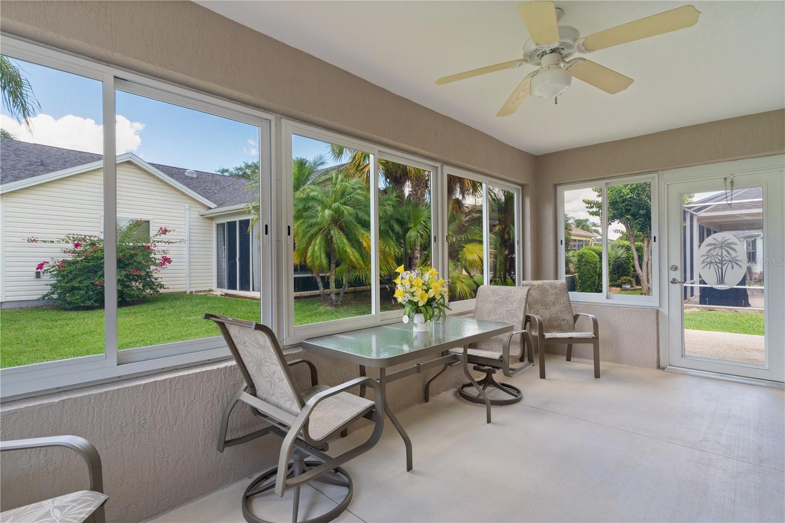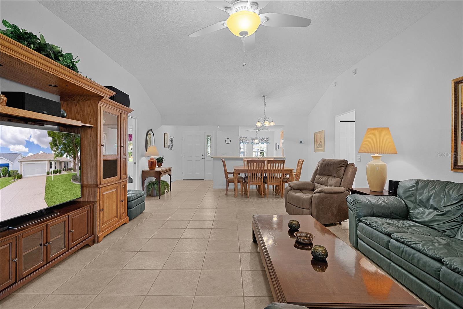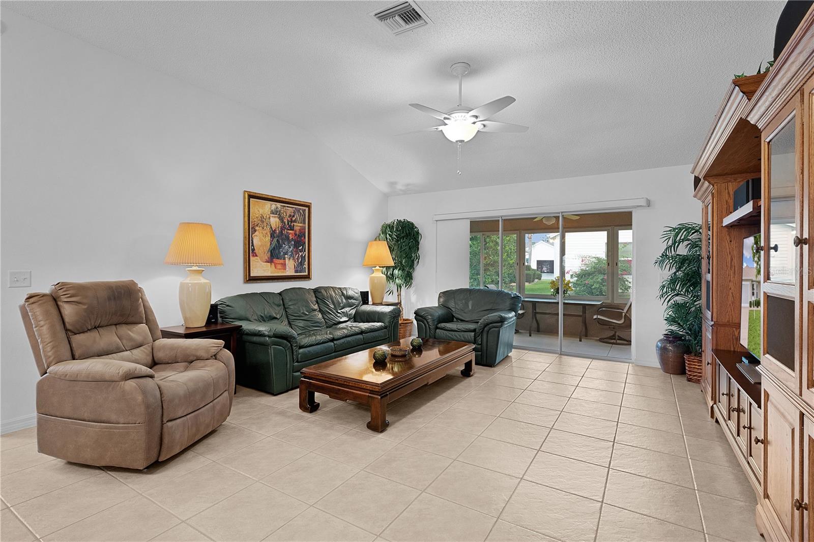 ~PRICE REDUCTION~ ~NO BOND~ ~2020 ROOF~ ~2022 HVAC~ ~WHOLE HOUSE SURGE PROTECTOR~ ~SOLAR ATTIC FAN~ This beautifully maintained 3/2 EXPANDED JASMINE in the highly desirable Village of WINIFRED offers exceptional features throughout. Step inside to discover VAULTED CEILINGS and ceramic tile flooring in the living, dining, and kitchen areas. The spacious living room is wired for SURROUND SOUND and includes a ceiling fan. The kitchen boasts bottom roll-out cabinets, an eat-in area with ceiling fan, a COLD-WATER FILTRATION SYSTEM, and GAS AVAILABILITY. The primary suite features an OVERSIZED WALK-IN CLOSET, ceiling fan, and ensuite bath with DOUBLE SINKS, a CULTURED MARBLE WALK-IN SHOWER (no grout), and pocket doors for added privacy. Two guest bedrooms, separated from the rest of the home by a pocket door, include built-in closets and ceiling fans, while the guest bath offers a tub/shower combo. There is an INSIDE LAUNDRY ROOM with shelving and an ENCLOSED LANAI with painted floors and ceiling fan, and an outdoor grill pad—perfect for entertaining. The OVERSIZED 2-CAR GARAGE includes a laundry tub, a PULL-ACROSS SCREEN and additional storage space. The Hot Water Heater is 2014. This home is in a prime location – close to the Winifred Rec Area, the Arnold Palmer Legends Country Club and tons of shopping, dining & medical on CR466!