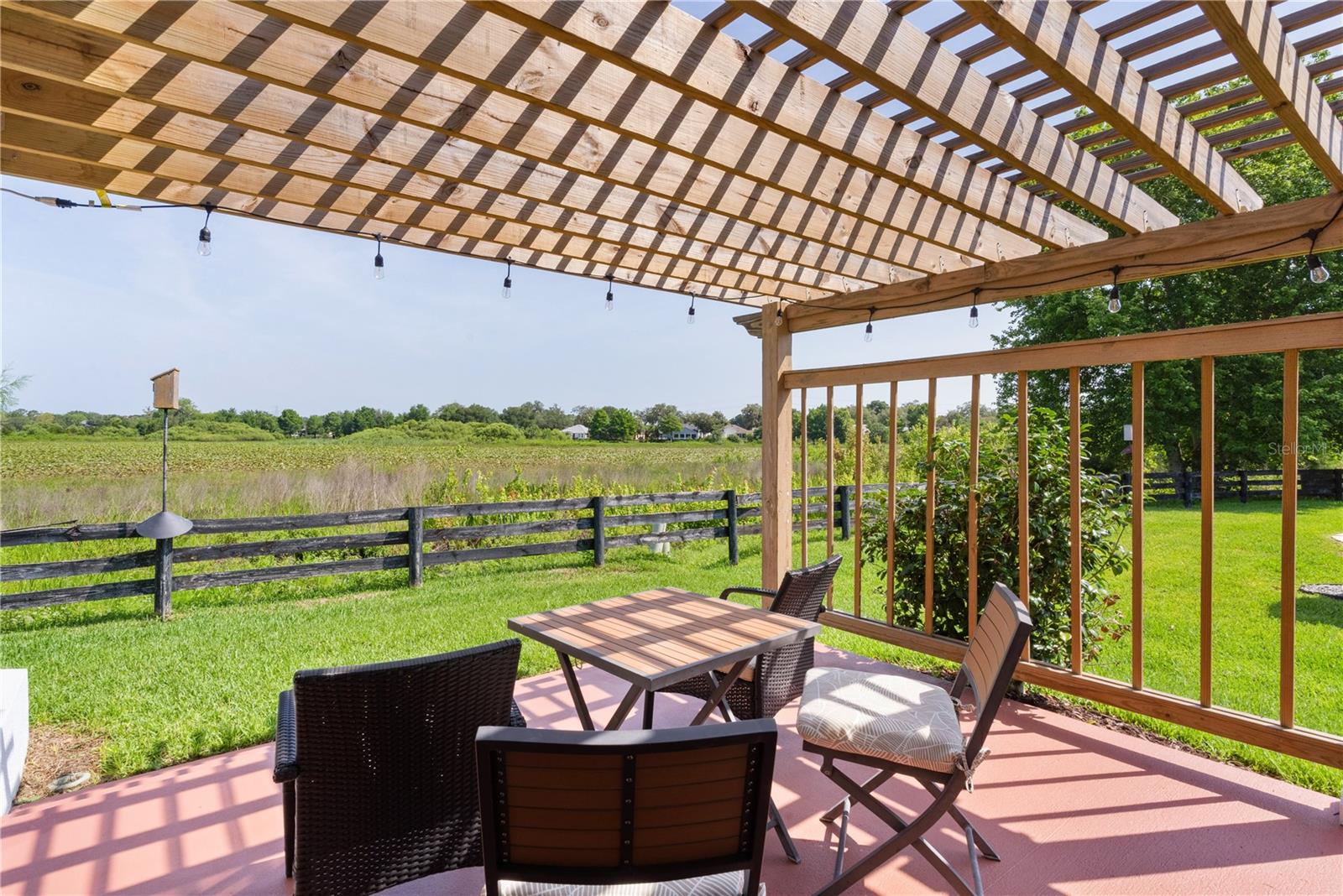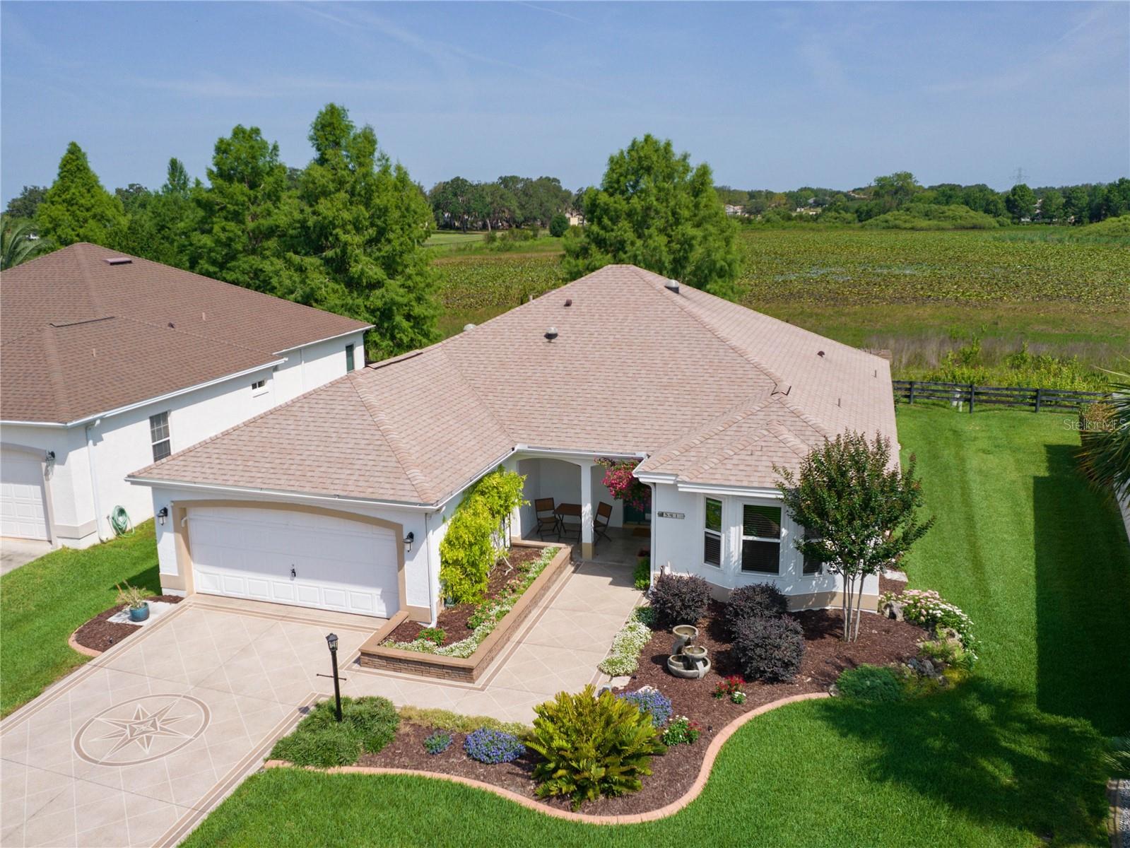 This home will KNOCK YOUR SOCKS OFF! Being offered TURNKEY, and the BOND is PAID, this GORGEOUS 3/2 Block & Stucco SIERRA Designer is tastefully decorated with quality furnishings and is situated on a fabulous lot looking out across the GRASS POND PRESERVE filled with many varieties of birds and other wildlife. ALL ABOUT LOCATION, this beautiful home is situated in De La Vista West, just moments by golf cart to Spanish Springs and Lake Sumter Town Squares, Golf, Pools, Recreation Centers, Major Shopping and Medical! The beautiful landscaping and raised garden bed with lighting set the stage as you approach the cozy covered front porch with Southern exposure ---a wonderful spot to enjoy your morning coffee. As you enter, your eyes will carry through the main living area to the SPECTACULAR PANORAMIC VIEW of the PRESERVE, and a glimpse of the Tierra del Sol Championship Golf Course. The Stunning Florida Room capitalizes on this amazing view and invites you outdoors to the North-Facing Patio with a lighted Pergola to enjoy the beautiful setting before you! The kitchen is sure to please with UPGRADED CABINETRY, Pull-out Shelves, Stainless Appliances with a Double-oven, Granite Counters, Custom lighting….and a wonderfully cozy breakfast nook with a Bay window and sliding doors to the Florida Room. If you enjoy cooking with home-grown herbs, the raised garden bed in the back is a perfect place to nurture your own herb garden! This wonderful home (2143 sq. ft. under air) has a Split floor plan, with 2 Guest Rooms and spacious Guest Bath tucked away on one side of the home, and the Primary Suite on the other side - providing privacy for you and your guests! The foyer greets you with architectural columns providing a visual separation as you approach the main living and dining area, which seamlessly flows into the amazing 429 sq. ft. SUNNY FLORIDA ROOM complete with a BUILT-IN BAR and Chattahoochee River Rock flooring – no doubt, this will be your favorite room in the home! The Primary Suite is a retreat unto itself, with a JETTED TUB, separate Tiled Shower with Frameless Enclosure, Granite Counters, Make-up Vanity, Dual Sinks, Solar Tube…and 2 Walk-in Closets. Plus, the En-Suite bath offers a door providing Privacy from the rest of the Primary Suite! The inside Laundry Room includes Washer & Dryer (both on pedestals), Utility Tub and Solar Tube. You’ll appreciate the Whole House Water Filtration system, Extra Refrigerator, Workbench and Attic Stairs in the 2-car garage, with direct access off the laundry room. This is a MUST-SEE home to appreciate all it has to offer – many extras include all Dual-Paned Windows, Laminate & Tile Floors (NO CARPET), 4 Solar Tubes, gutters, window blinds, hall closet, and a separate grilling pad off the Florida Room. Additionally, the ROOF and HVAC were replaced in 2020, and the WATER HEATER was replaced in 2025. Tax line reflects combination of annual maintenance and fire district. BOND IS PAID. Opportunities like this don’t come along every day, particularly at this price…so, what are you waiting for? If not now, when??
