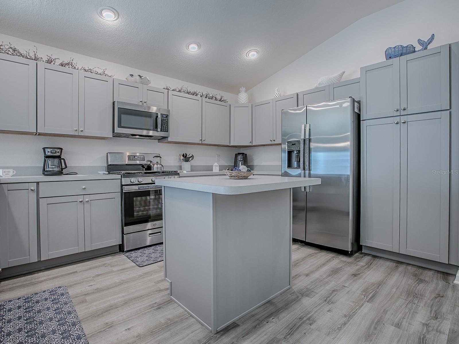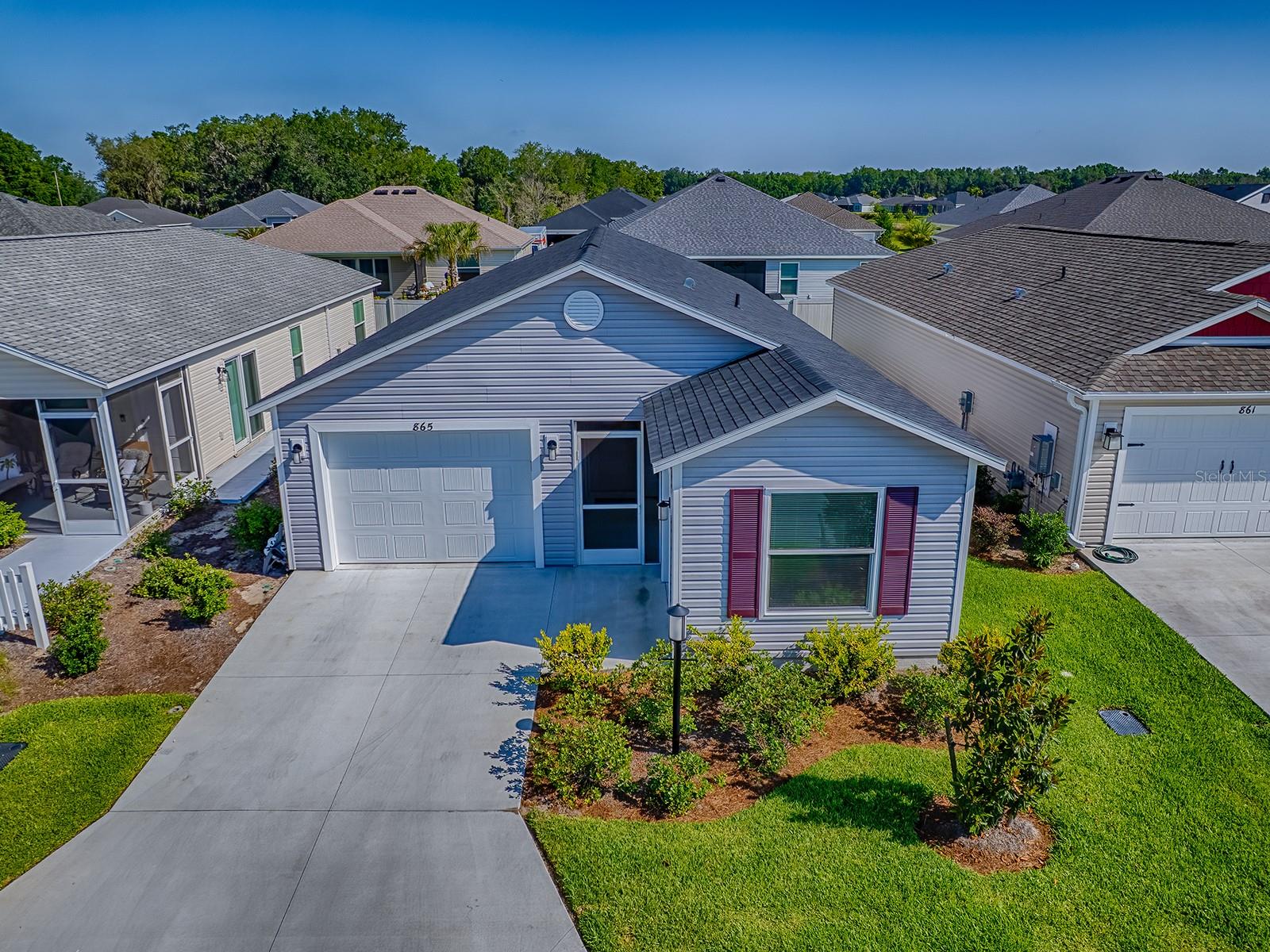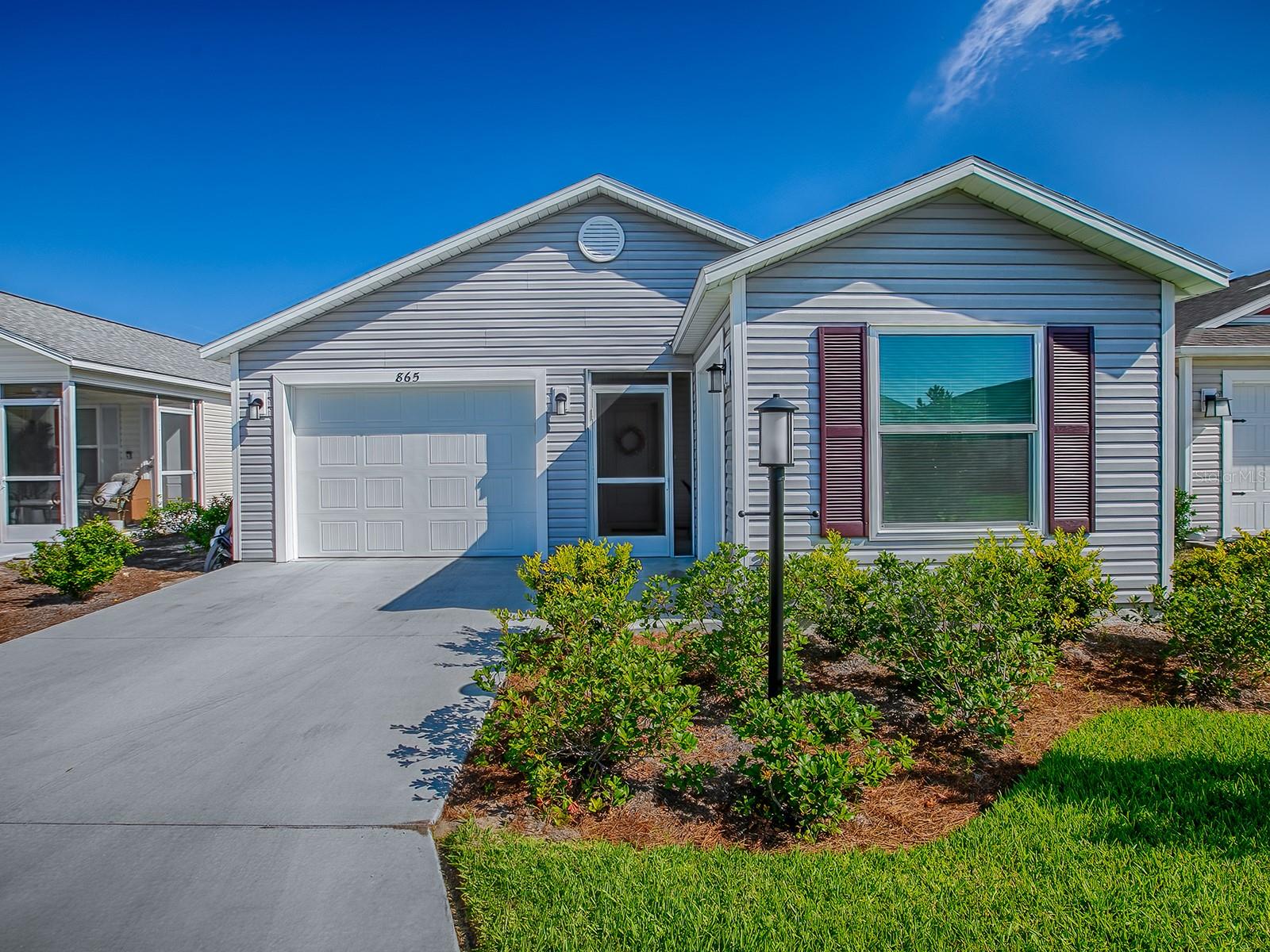 Welcome to the enchanting Village of Dabney, nestled just south of Sawgrass Grove and a stone's throw away from the exciting, soon-to-be Eastport Square. There, you'll find no shortage of lakeside adventures, a recreation complex, a dog park, and countless recreational activities that define the vibrant lifestyle at the Villages. Situated just across the street from the Dabney pool and postal station, this delightful villa invites you to indulge in comfort and leisure. Imagine residing in this splendid 2-bedroom, 2-bathroom haven, featuring a serene private front lanai for tranquil mornings or relaxing evenings. With a one-car garage alongside a separate golf cart garage, you'll have all the space needed for both vehicles and hobbies. The kitchen boasts modern stainless steel appliances complemented beautifully by light gray cabinets, creating a sleek and stylish look. Vaulted ceilings enhance the feeling of spaciousness, while luxury vinyl plank flooring gracefully extends through the main living areas. This villa is offered fully Turnkey, awaiting only your personal touches. Experience a harmonious blend of simplicity and elegance in a community renowned for its rich array of recreation, entertainment, shopping, and dining venues, along with exceptional medical facilities and specialists.