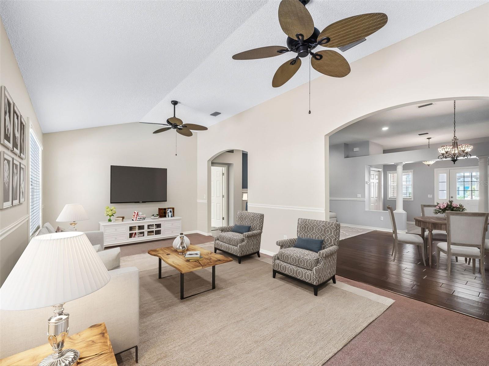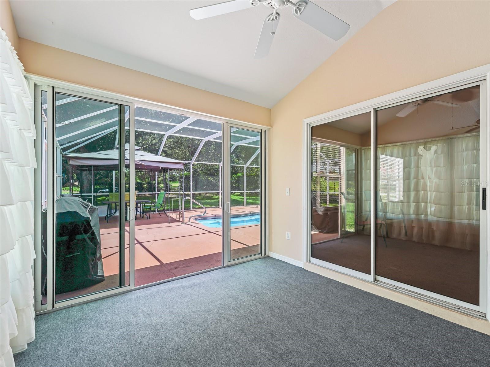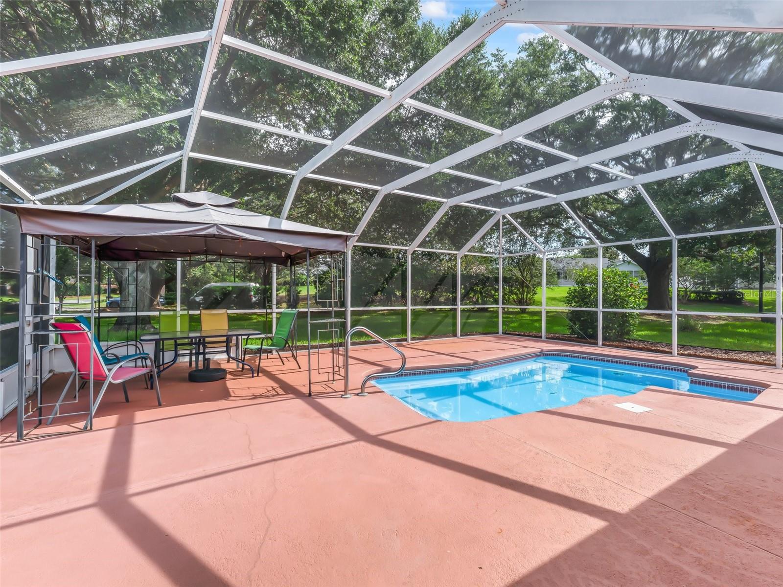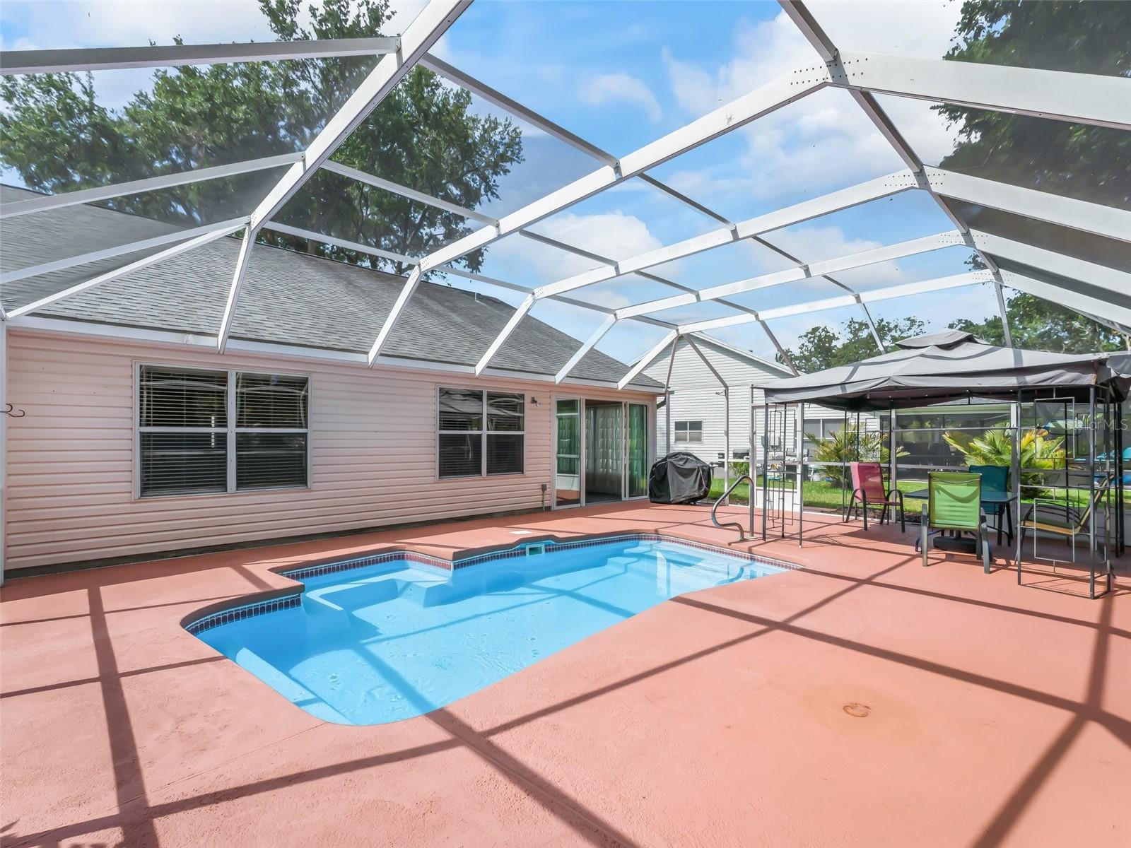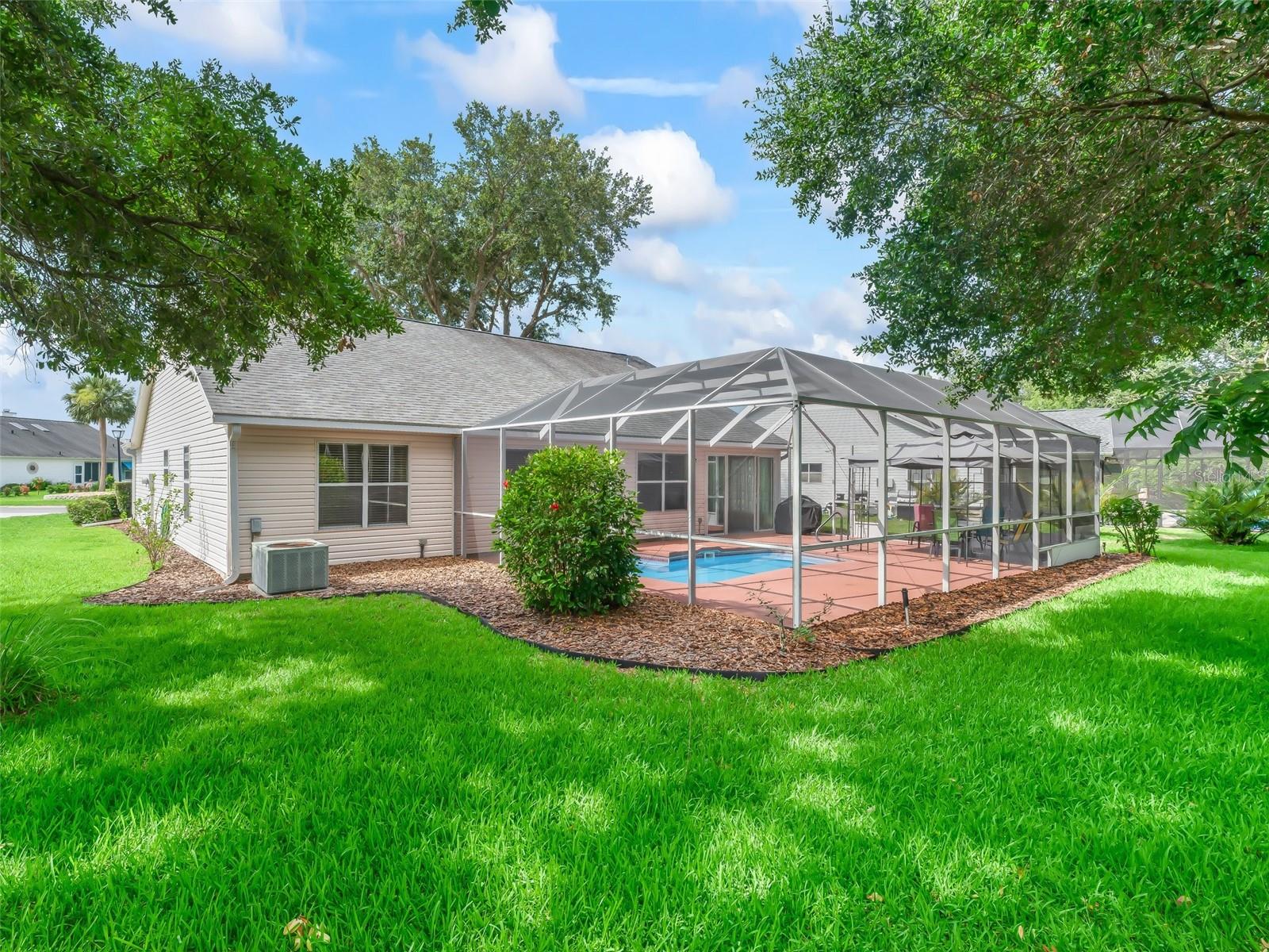 One or more photos have been virtually staged. Welcome to your slice of paradise in the Village of Rio Grande! This well-maintained home offers comfort, privacy, and location—all in one package. Nestled near Spanish Springs Town Square and just a short drive from Lake Sumter Landing, it is ideal for enjoying all the amenities The Villages has. This charming residence features no bond, a newer roof (2017), updated water heater (2022), and newer stainless steel appliances for peace of mind and energy efficiency. The vaulted ceilings create an open, airy feel and natural light throughout. Step outside to your private pool and spacious birdcage-covered patio, perfect for relaxing, entertaining guests, or enjoying Florida’s beautiful weather. Best of all, no neighbors are behind you, offering added privacy and serene views. Whether you're seeking a year-round home or a seasonal getaway, this one-of-a-kind property is move-in ready and waiting for your personal touch. Schedule your private showing today — don’t miss this exceptional opportunity!