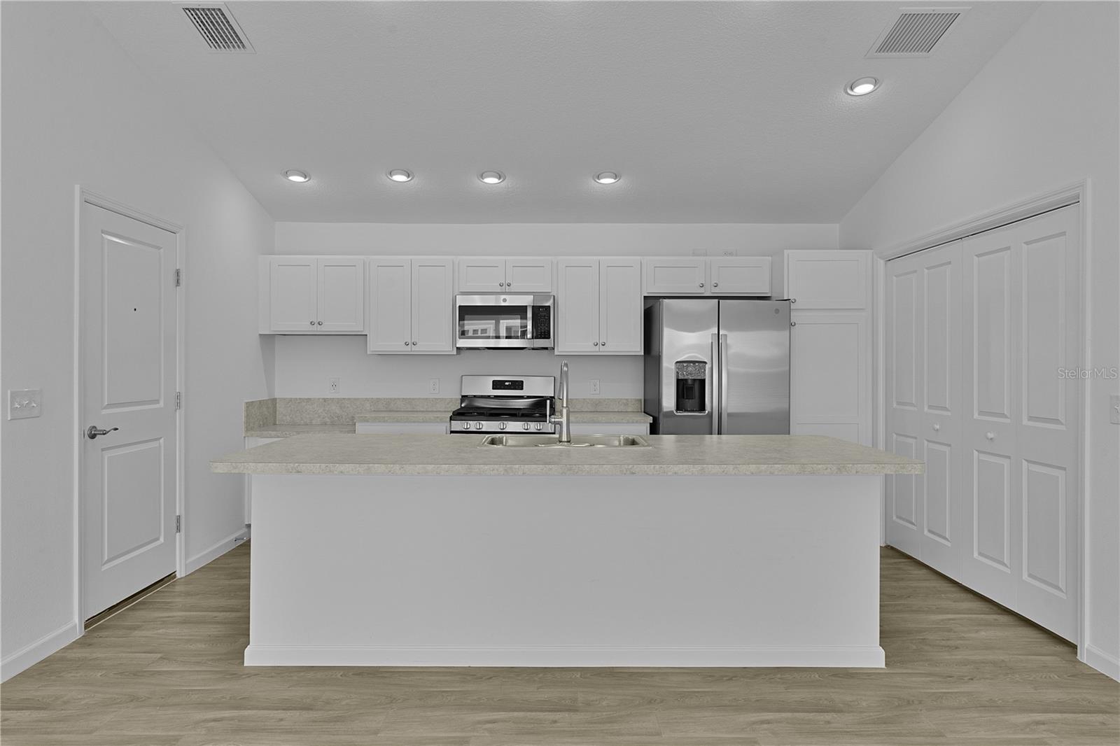 One or more photo(s) has been virtually staged. Welcome to this immaculate and contemporary 2-bedroom, 2-bathroom patio villa nestled on a spacious corner lot in the highly sought-after Village of DeLuna in The Villages, Florida! Set in one of the newest and most vibrant areas of the community, this beautifully maintained home offers the perfect blend of comfort, style, and convenience—plus room to add your dream pool! As you arrive, the curb appeal is undeniable. The expansive corner lot provides extra green space and privacy, making it one of the most desirable locations in the neighborhood. Step inside to find a bright and airy open-concept layout, where vaulted ceilings in the main living area add a sense of spaciousness and light. Contemporary finishes and neutral tones throughout make it easy to personalize and move in right away. The kitchen is a standout feature, boasting pristine white cabinetry, gleaming stainless steel appliances, and ample counter space to inspire any home chef. Whether you're preparing a quiet breakfast or entertaining guests, this kitchen checks all the boxes. It even has a built-in desk area! The generous master suite is a true retreat, with a large walk-in closet and an elegant en suite bathroom featuring dual sinks and a spacious walk-in shower. The second bedroom is perfect for guests or a home office and is located near the second full bathroom for added privacy and convenience. This villa offers the potential for a private backyard oasis—with plenty of room to add a custom pool, outdoor kitchen, or extended lanai to enjoy Florida’s sunshine year-round. Location is everything, and this home delivers. Just a short golf cart ride across the stunning Water Lily Bridge, you’ll find yourself at Brownwood Paddock Square, where nightly live entertainment, dining, and shopping await. You're also minutes from Magnolia Shopping Plaza for all your daily needs, and close to recreation centers, golf, and walking trails. Don’t miss this opportunity to own a move-in-ready, stylish home on one of the best lots in DeLuna. Schedule your private showing today and start living your Villages dream!