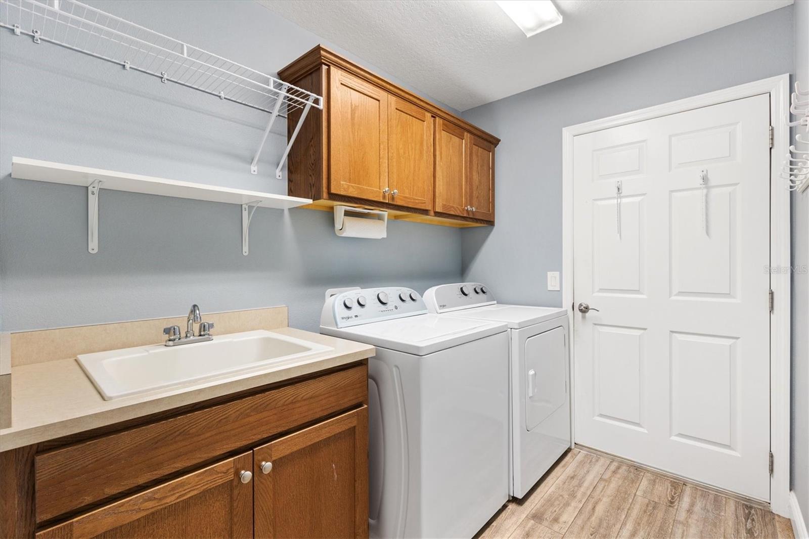 Beautifully maintained 3/2 Sunflower Designer Home with 2 Car plus Golf Cart Garage in the Village of Dunedin. Nestled perfectly between Lake Sumter Landing and Brownwood Paddock Square, with shopping, dining, and entertainment just minutes away. A covered front entry welcomes you in through a front door accented by stained glass side panel and transom window. The home also features a handsome paver driveway and mature landscaping, enhancing curb appeal. You'll appreciate no carpet having Luxury Vinyl Flooring throughout the home. The open floor plan seamlessly connects the main living areas, with sliding doors leading to an enclosed, temperature-controlled lanai—ideal for year-round enjoyment. The kitchen offers a cozy dining nook, stainless steel appliances, pull-out shelves, and a breakfast bar, making meal prep and entertaining a breeze. Retreat to the spacious master bedroom featuring a tray ceiling and his and hers custom walk-in closets. The ensuite bath includes a split dual vanity, a private water closet, and a luxurious Roman-style walk-in shower. The guest bedrooms (3rd bedroom no closet) are conveniently located off the entry and features a pocket door for added privacy. The adjacent guest bath includes a shower/tub combo and a window for brightness. The Lanai has pull down shades, mini split and ceiling fans and leads to an outdoor grilling patio. A 2-car plus golf cart garage provides space for vehicles and storage and includes an electric screen and a durable epoxy-coated floor. This home blends comfort, style, and an unbeatable location—don’t miss your opportunity to start living The Villages Dream. Watch our video and make your appointment to see this home today.