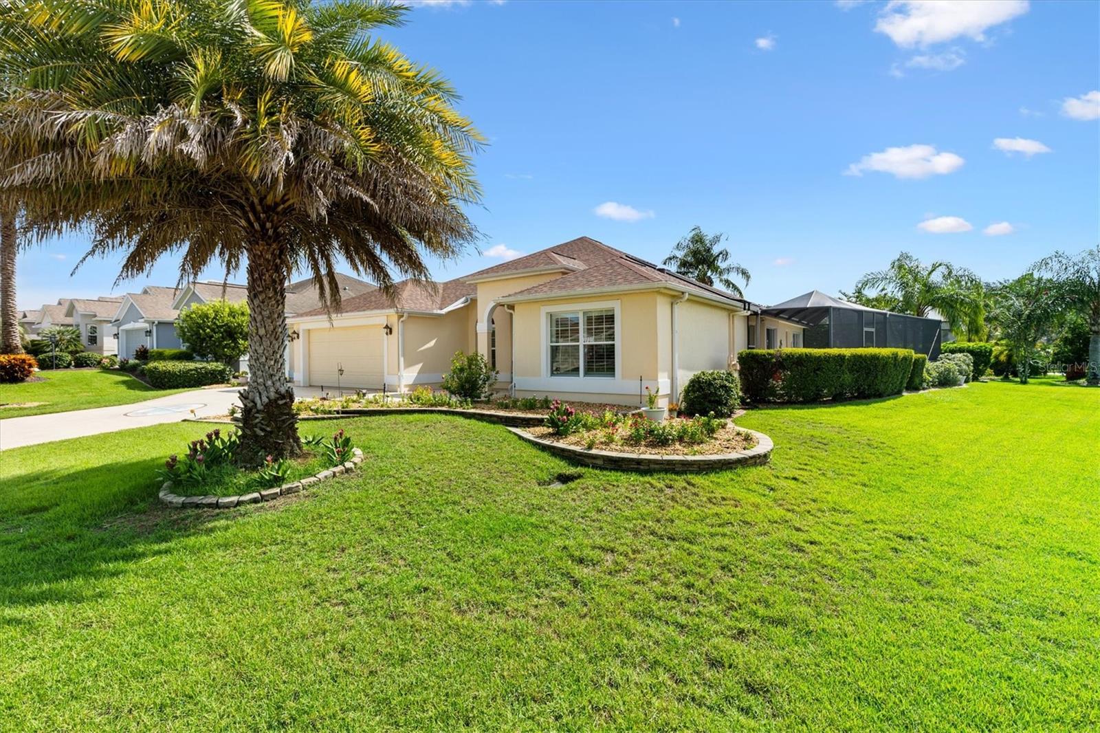 Pool Home• 2 Car plus Golf Cart Garage • Corner Lot • Virtual Tour Available Welcome to this exceptional Gardenia Pool Home in the Village of Hemingway, combining the perfect balance of style, comfort, and location in the heart of The Villages, Florida. Situated on a corner lot and featuring a golf cart garage, this 3-Bedroom, 2-Bathroom residence offers everything you need to enjoy The Villages lifestyle at its best. This home is offered partially furnished (with golf cart included) and showcases tasteful details throughout. Plantation shutters, four solar tubes for natural light, and thoughtful upgrades enhance the sense of openness and warmth. The kitchen blends function and beauty with light staggered cabinetry, glass-front display cabinet, pull-out shelving, and Corian countertops. Enjoy casual dining in the breakfast nook or host guests in the formal dining area, which is free of the column typical of the Gardenia model, creating a more open flow between living spaces. The spacious Primary Suite features a tray ceiling, two walk-in closets, and a luxurious ensuite bath with split vanities and a Roman shower. The front bedroom includes a wall bed and built-in desk, providing flexibility for guests and a home office. The split-bedroom design places the second and third bedrooms apart from the primary suite, with the guest bath in between for added privacy. The living room flows seamlessly to your private saltwater pool, surrounded by a screen enclosure that offers the ultimate in outdoor relaxation. Double sliding doors lead to the east-facing lanai, where you can enjoy morning sun or cool evening breezes. Major system upgrades provide peace of mind: a new roof (2024) and brand-new HVAC (July 2025). Additional highlights include an inside laundry room, neutral color palette, and low-maintenance landscaping. This property’s location is one of its strongest features—just minutes from golf, recreation, dining, and shopping. You’re approximately 0.7 miles to Havana Country Club and Championship Golf, which also offers one of The Villages’ most popular restaurants. The Hemingway Pool is about 0.8 miles away, and Colony Plaza with retail and dining options is approximately 1.6 miles. Lake Sumter Landing Town Square, known for its waterfront dining, boutiques, and nightly entertainment, is 3.9 miles by golf cart. Enjoy the Florida lifestyle year-round with indoor and outdoor living spaces designed for comfort and convenience. Whether you’re lounging by the pool, hosting friends for dinner, or taking your golf cart to explore the nearby amenities, this home provides it all. Be sure to view the virtual tour to explore every detail of this impressive Gardenia Pool Home in The Village of Hemingway.