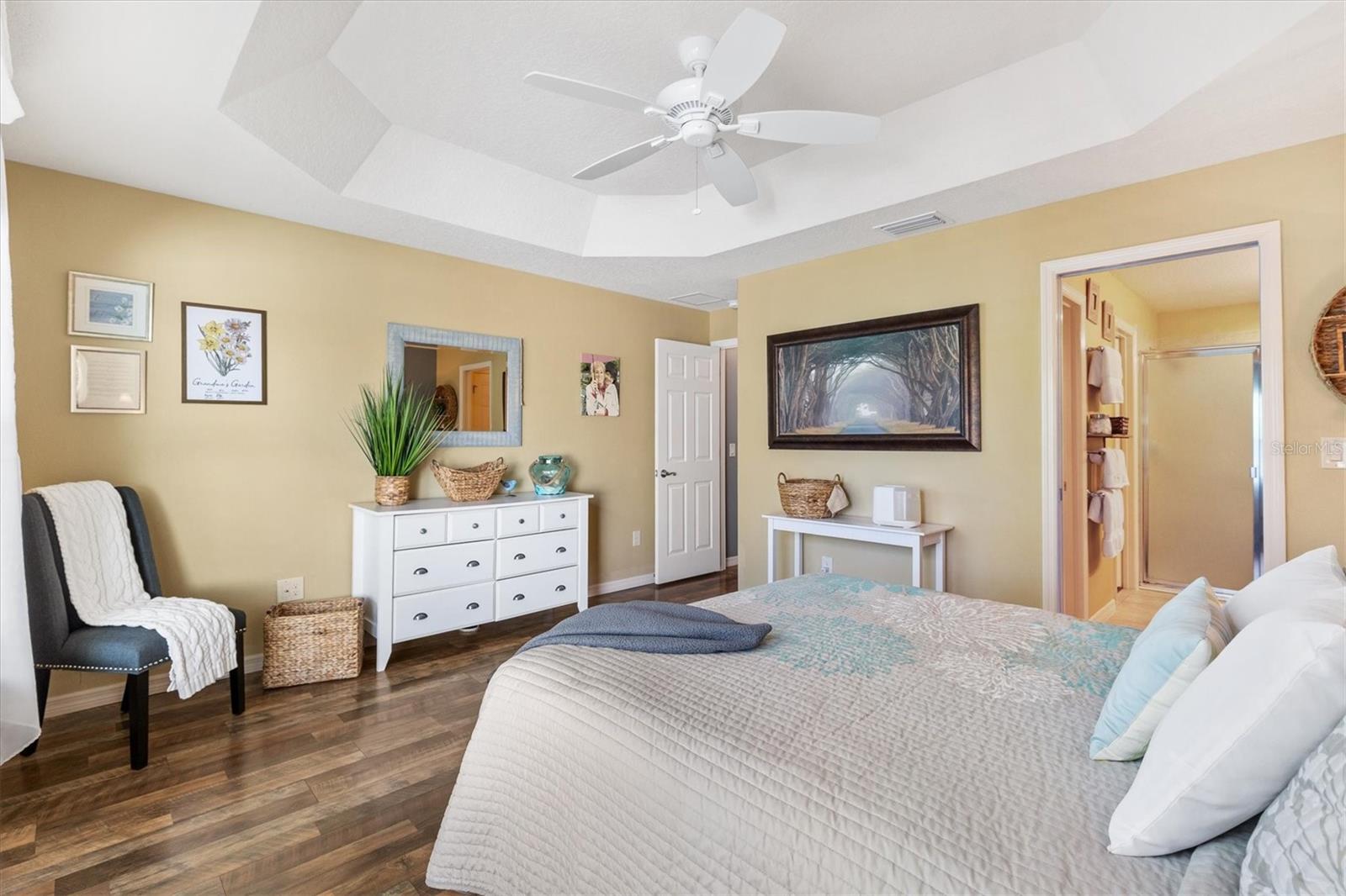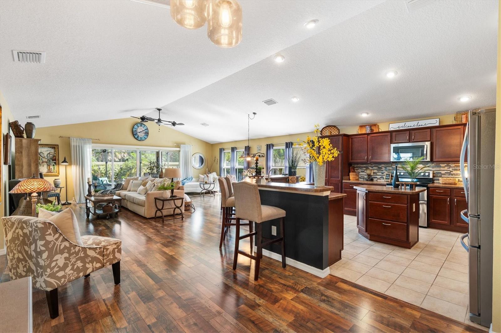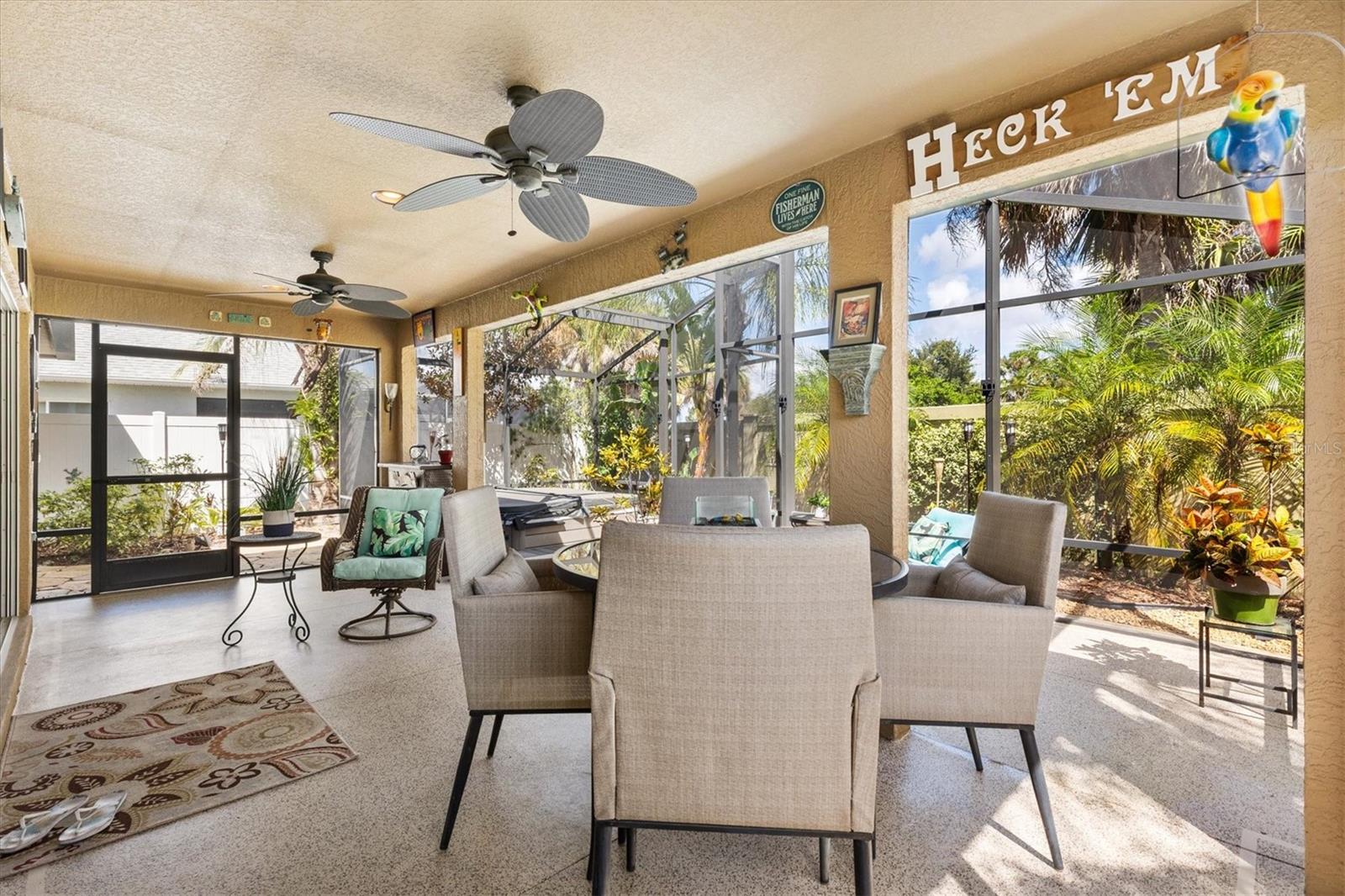 Welcome Home to Your Wyndham Model in The Villages! BOND Paid. Experience the perfect blend of elegance, comfort, and Florida lifestyle in this stunning 3-bedroom, 2-bathroom villa with a 2-car garage. This home has no carpet, no grass, and is beautifully landscaped—truly the epitome of low-maintenance luxury. Step inside to a very open, split floorplan that balances privacy with spacious living—ideal for both everyday life and entertaining. The large foyer welcomes you into a bright, airy space, flowing seamlessly into the living areas. Features You’ll Love: Master suite with tray ceiling, private bath, and spacious walk-in closet Luxurious vinyl plank flooring throughout for modern style and durability Bright kitchen with sunny nook and abundant cabinets Formal dining room for hosting family and friends 12-foot disappearing sliding doors that open the living space to your private outdoor oasis Pull-down attic stairs for extra storage. Whole-house Nova water filtration system for clean, great-tasting water Insulated garage door with stained concrete & epoxy garage floor Outdoor Living at Its Finest: Screened birdcage enclosure Partial in-ground hot tub Spacious lanai with epoxy cement flooring Cute front porch area for morning coffee or evening relaxation Neighborhood & Amenities: Join a social, fun-loving community with Thirsty Thursday events, men’s & ladies’ golf leagues, and co-ed golf Close to Evans Prairie Country Club and its amenities Short distance to 3 Executive Golf Courses and Eisenhower Regional Recreation Center Three community pools within 3 minutes Just a five-minute golf cart ride to Brownwood Town Square Nearby shopping: Publix, Target, Home Depot, Lowe’s, and more This home is truly a must-see, offering comfort, style, and Florida indoor–outdoor living at its best. Don’t miss your chance to join one of the most sought-after neighborhoods in The Villages!