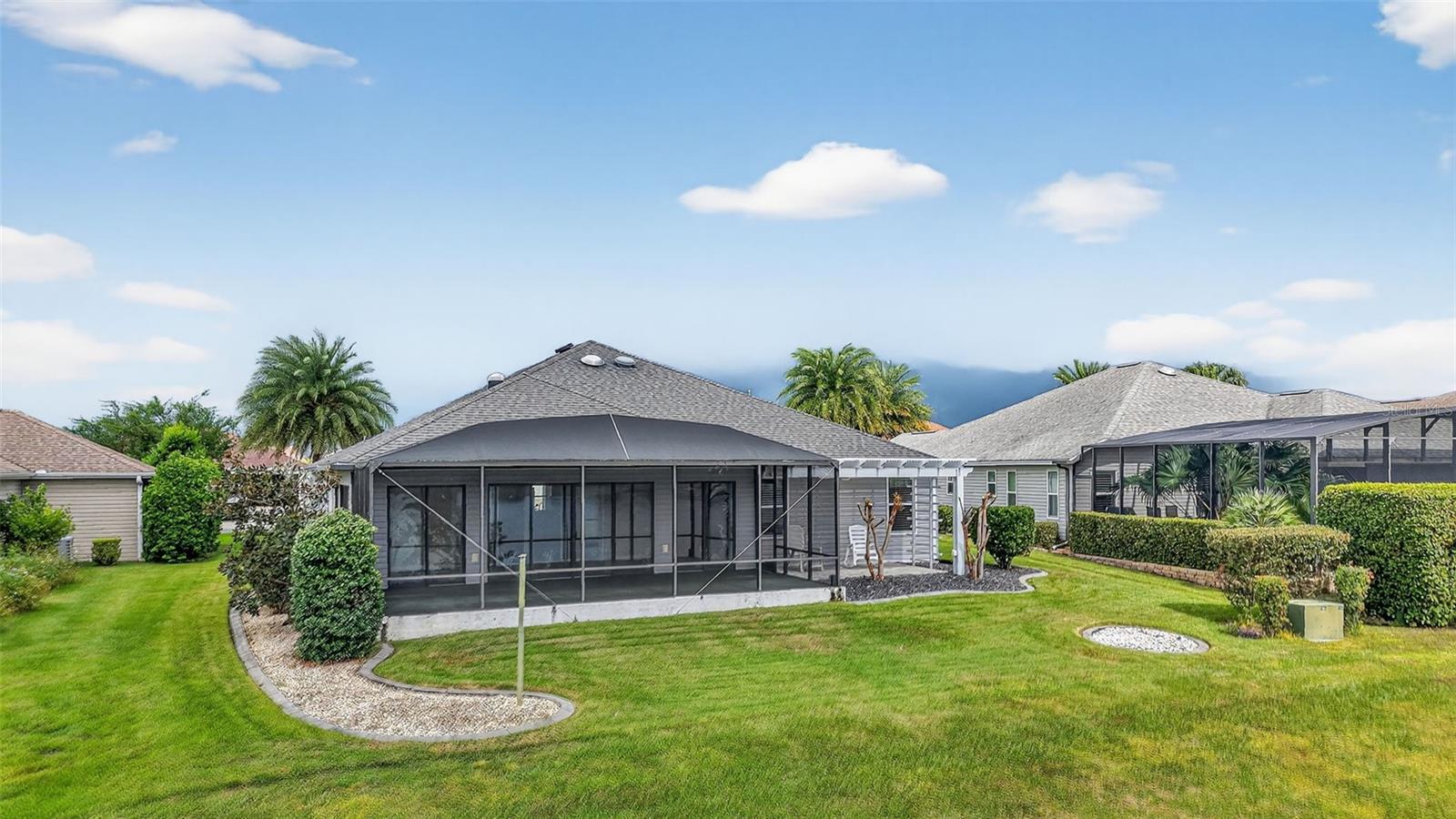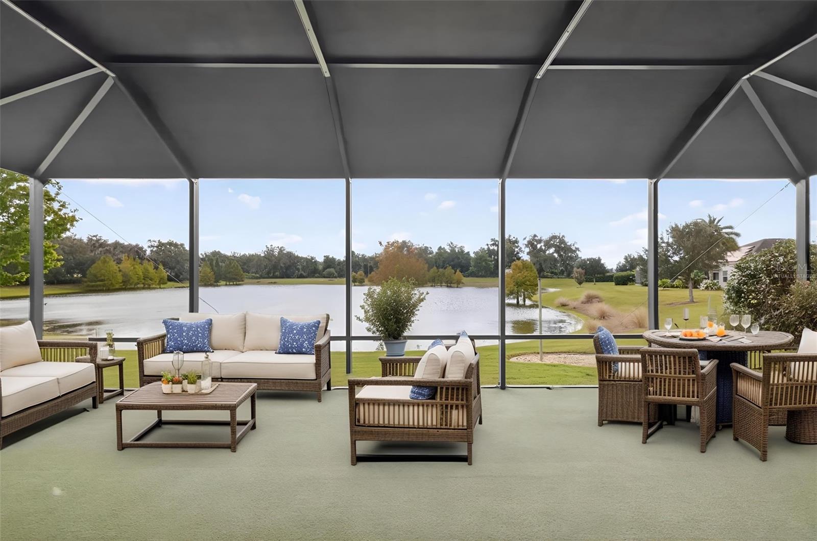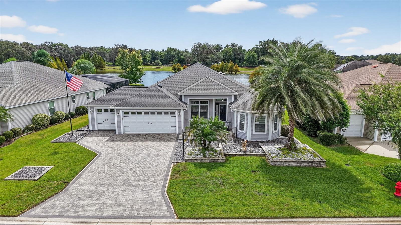 One or more photo(s) has been virtually staged. ENJOY SPECTACULAR WATERFRONT VIEWS in this 3/2 Camellia/Gardenia featuring an EXPANSIVE 364sf CLIMATE-CONTROLLED ENCLOSED LANAI, EXTENDED COVERED BIRDCAGE, REAR PAVER PATIO and PERGOLA, with ROOM FOR A POOL, and OVERSIZED 29’x24’ 2-CAR + GOLF CART GARAGE in the highly desirable Village of Hillsborough! MINUTES to Brownwood Paddock Square offering shopping, dining, and nightly entertainment! The EXQUISITE exterior of this lovely home boasts PAVER drive and walk ways, TROPICAL landscaping with WALLS and STONED beds, and a QUAINT front porch! An entry door with side lite and transom window welcome you into the GENEROUS foyer. From the moment you step inside, the OPEN-CONCEPT layout draws your eye straight through the home to the TRANQUIL WATER beyond, creating a BREATHTAKING first impression! TILE FLOORING flows seamless throughout the ENTIRE home while elegant CROWN MOLDING adds a touch of sophistication to EVERY room’s interior. HIGH VAULTED ceilings and 2 SOLAR TUBES create a bright, spacious atmosphere in the main living area. From here, step through DOUBLE sliding glass doors into the EXPANSIVE CLIMATE-CONTROLLED ENCLOSED LANAI (with an ADDITIONAL A/C and heater system) - adding an ADDITIONAL 364sf of living space to the home! This FABULOUS ROOM features a MINI-SPLIT; below ground, UNDER-AIR hurricane/tornado shelter; and FOUR SLIDING GLASS DOORS OVERLOOKING the WATER and opening to the EXTENDED 336sf BIRDCAGE with a CANVAS COVER. There’s even an ADJACENT 14’x 8’ BRICK-PAVER PATIO with a PERGOLA! Together these spaces create over 448sf of OUTDOOR LIVING SPACE with STUNNING WATERFRONT VIEWS! Back inside, the FABULOUS kitchen showcases RICH, WOOD, STAGGERED cabinetry with PULL-OUTS and GLASS-FRONT accent cabinet, GRANITE countertops, TILE backsplash, STAINLESS appliances, built-in PANTRY, and EAT-IN breakfast bar. The adjacent dinette offers double windows with large transom. Retreat to the luxurious primary bedroom, boasting VIEWS of the WATER, TRAY ceiling, and 2 SPACIOUS WALK-IN closets, one of which is CUSTOMIZED. It’s ensuite bathroom features WOOD cabinetry; DOUBLE sinks; ROMAN-STYLE, TILED, WALK-IN shower; separate water closet, and a BUILT-IN LINEN closet. A SPLIT FLOOR PLAN, places 2 additional bedrooms and second bathroom near the front of the home behind a POCKET DOOR, creating a PRIVATE GUEST WING. Bedroom two offers a TRAY ceiling, BAY window, and CUSTOM built-in closet. The second bathroom features WOOD vanity with GRANITE top, TILED tub and shower combination, and hallway LINEN closet. The third bedroom has a VAULTED ceiling and built-in closet. An INTERIOR LAUNDRY ROOM offers WOOD cabinets, shelving, and UTILITY SINK. Completing the package is an OVERSIZED 603sf 2-CAR + GOLF CART GARAGE with painted floors, BUILT-IN workbench, water filtration system, attic exhaust fan, and stairs accessing a HUGE ATTIC STORAGE AREA with plywood floors! DON’T MISS YOUR OPPORTUNITY TO OWN this MAGNIFICENT WATERFRONT HOME! The Village of Hillsborough is IDEALLY LOCATED - JUST MINUTES to Brownwood Paddock Square! Close to Hillsborough Neighborhood, Bradenton and Manatee Village, and Eisenhower Regional Recreation Centers; Palmetto, Sweetgum and Mangrove Executive Golf Courses; Evans Prairie Country Club; CR 466A with Colony Shopping Plaza and a plethora of shopping, dining, medical, and more! PLEASE WATCH OUR WALKTHROUGH VIDEO of this EXCEPTIONAL WATERFRONT HOME in a FANTASTIC LOCATION. CALL TODAY for your private showing or virtual tour!