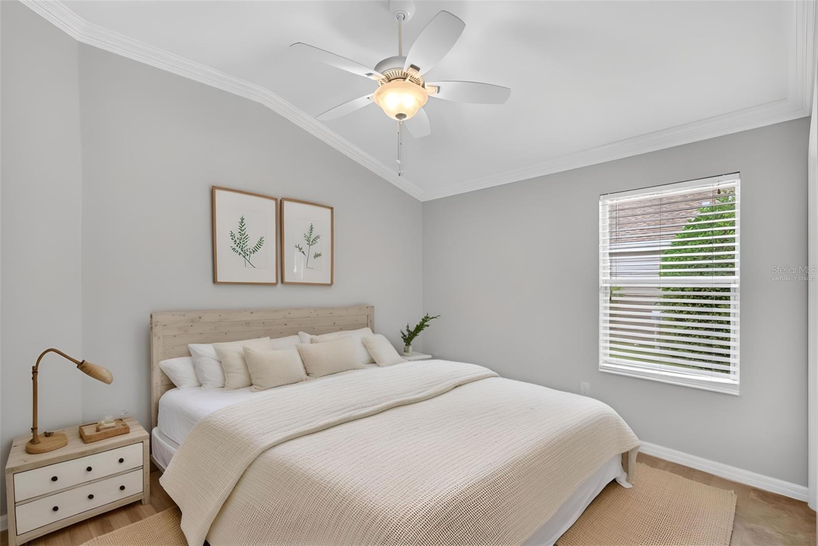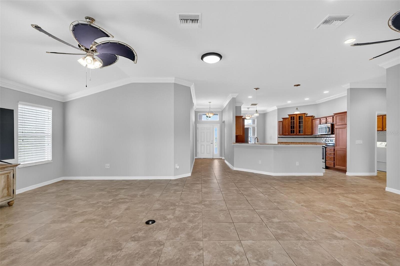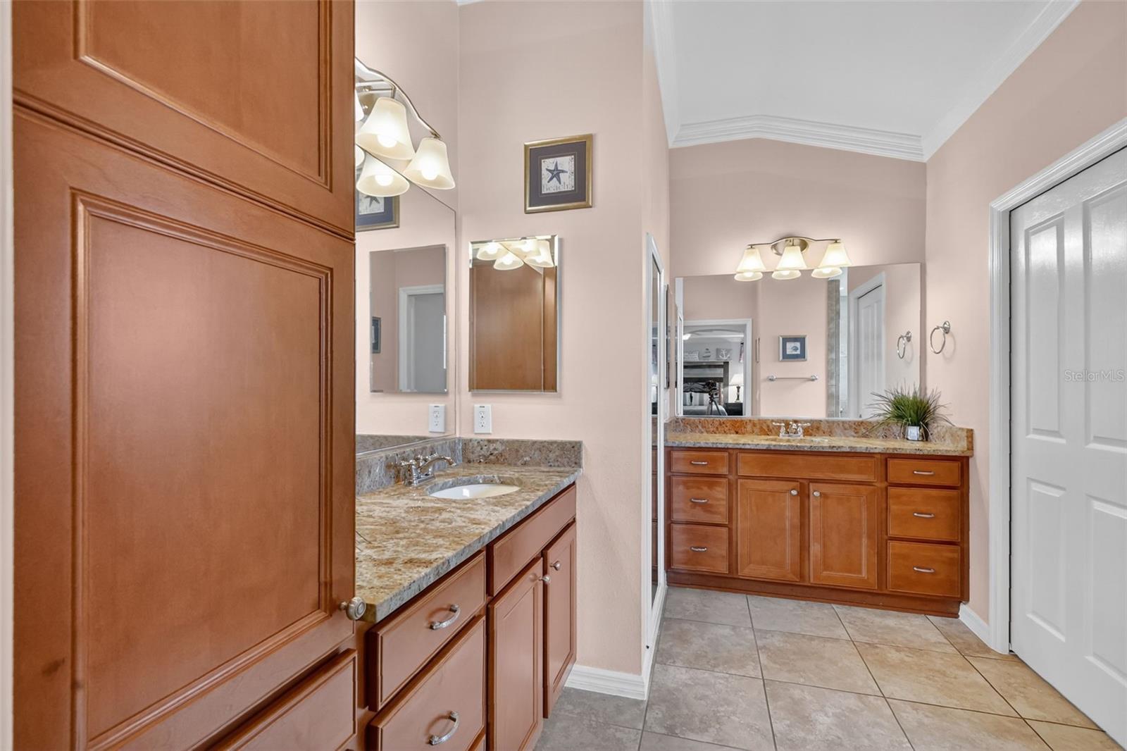 One or more photo(s) has been virtually staged. ENJOY SPECTACULAR WATERFRONT VIEWS in this 3/2 Camellia/Gardenia featuring an EXPANSIVE 364sf CLIMATE-CONTROLLED ENCLOSED LANAI, EXTENDED COVERED BIRDCAGE, REAR PAVER PATIO and PERGOLA, with ROOM FOR A POOL, and OVERSIZED 29’x24’ 2-CAR + GOLF CART GARAGE in the highly desirable Village of Hillsborough! MINUTES to Brownwood Paddock Square offering shopping, dining, and nightly entertainment! The EXQUISITE exterior of this lovely home boasts PAVER drive and walk ways, TROPICAL landscaping with WALLS and STONED beds, and a QUAINT front porch! An entry door with side lite and transom window welcome you into the GENEROUS foyer. From the moment you step inside, the OPEN-CONCEPT layout draws your eye straight through the home to the TRANQUIL WATER beyond, creating a BREATHTAKING first impression! TILE FLOORING flows seamless throughout the ENTIRE home while elegant CROWN MOLDING adds a touch of sophistication to EVERY room’s interior. HIGH VAULTED ceilings and 2 SOLAR TUBES create a bright, spacious atmosphere in the main living area. From here, step through DOUBLE sliding glass doors into the EXPANSIVE CLIMATE-CONTROLLED ENCLOSED LANAI (with an ADDITIONAL A/C and heater system) - adding an ADDITIONAL 364sf of living space to the home! This FABULOUS ROOM features a MINI-SPLIT; below ground, UNDER-AIR hurricane/tornado shelter; and FOUR SLIDING GLASS DOORS OVERLOOKING the WATER and opening to the EXTENDED 336sf BIRDCAGE with a CANVAS COVER. There’s even an ADJACENT 14’x 8’ BRICK-PAVER PATIO with a PERGOLA! Together these spaces create over 448sf of OUTDOOR LIVING SPACE with STUNNING WATERFRONT VIEWS! Back inside, the FABULOUS kitchen showcases RICH, WOOD, STAGGERED cabinetry with PULL-OUTS and GLASS-FRONT accent cabinet, GRANITE countertops, TILE backsplash, STAINLESS appliances, built-in PANTRY, and EAT-IN breakfast bar. The adjacent dinette offers double windows with large transom. Retreat to the luxurious primary bedroom, boasting VIEWS of the WATER, TRAY ceiling, and 2 SPACIOUS WALK-IN closets, one of which is CUSTOMIZED. It’s ensuite bathroom features WOOD cabinetry; DOUBLE sinks; ROMAN-STYLE, TILED, WALK-IN shower; separate water closet, and a BUILT-IN LINEN closet. A SPLIT FLOOR PLAN, places 2 additional bedrooms and second bathroom near the front of the home behind a POCKET DOOR, creating a PRIVATE GUEST WING. Bedroom two offers a TRAY ceiling, BAY window, and CUSTOM built-in closet. The second bathroom features WOOD vanity with GRANITE top, TILED tub and shower combination, and hallway LINEN closet. The third bedroom has a VAULTED ceiling and built-in closet. An INTERIOR LAUNDRY ROOM offers WOOD cabinets, shelving, and UTILITY SINK. Completing the package is an OVERSIZED 603sf 2-CAR + GOLF CART GARAGE with painted floors, BUILT-IN workbench, water filtration system, attic exhaust fan, and stairs accessing a HUGE ATTIC STORAGE AREA with plywood floors! DON’T MISS YOUR OPPORTUNITY TO OWN this MAGNIFICENT WATERFRONT HOME! The Village of Hillsborough is IDEALLY LOCATED - JUST MINUTES to Brownwood Paddock Square! Close to Hillsborough Neighborhood, Bradenton and Manatee Village, and Eisenhower Regional Recreation Centers; Palmetto, Sweetgum and Mangrove Executive Golf Courses; Evans Prairie Country Club; CR 466A with Colony Shopping Plaza and a plethora of shopping, dining, medical, and more! PLEASE WATCH OUR WALKTHROUGH VIDEO of this EXCEPTIONAL WATERFRONT HOME in a FANTASTIC LOCATION. CALL TODAY for your private showing or virtual tour!