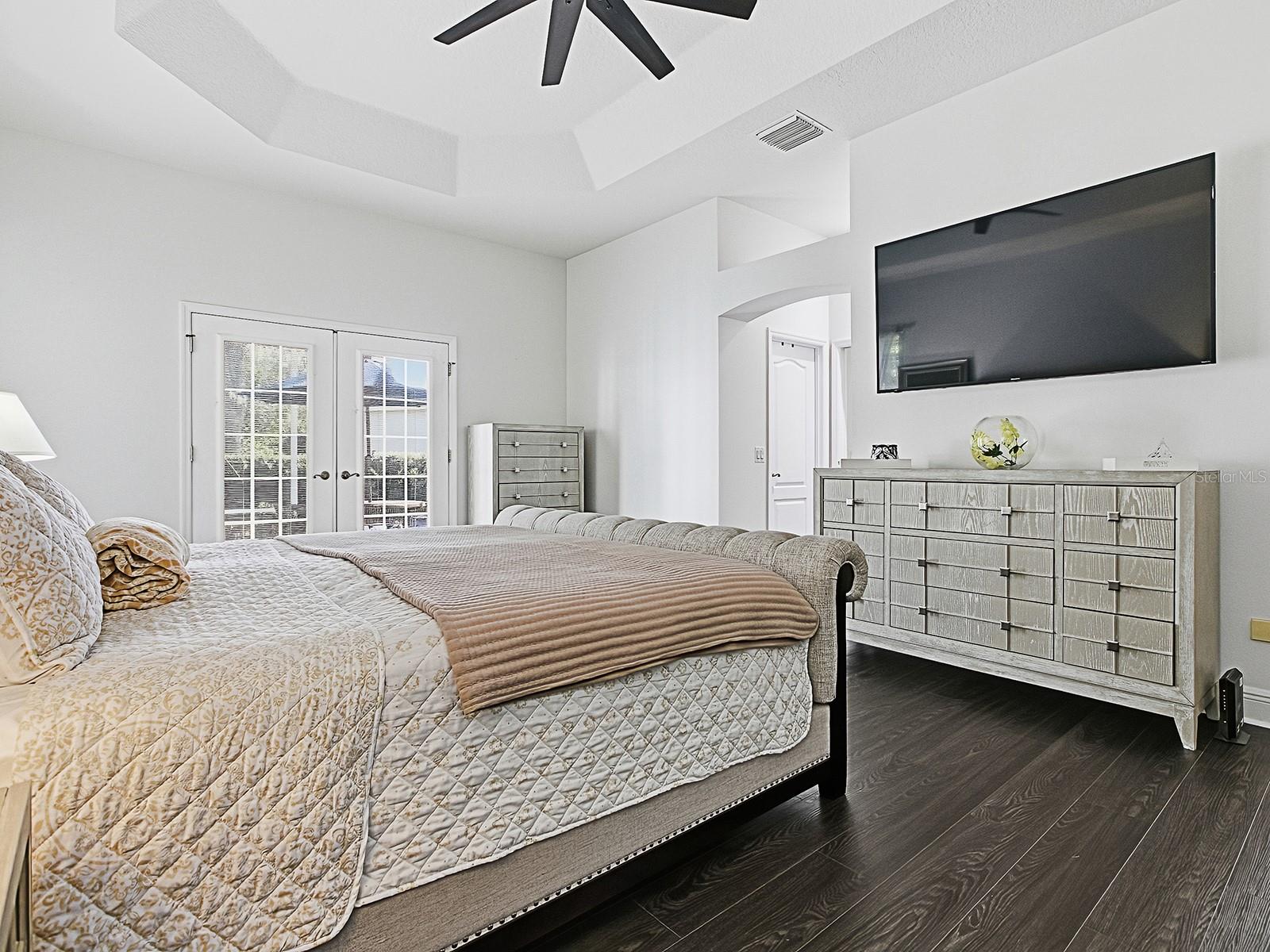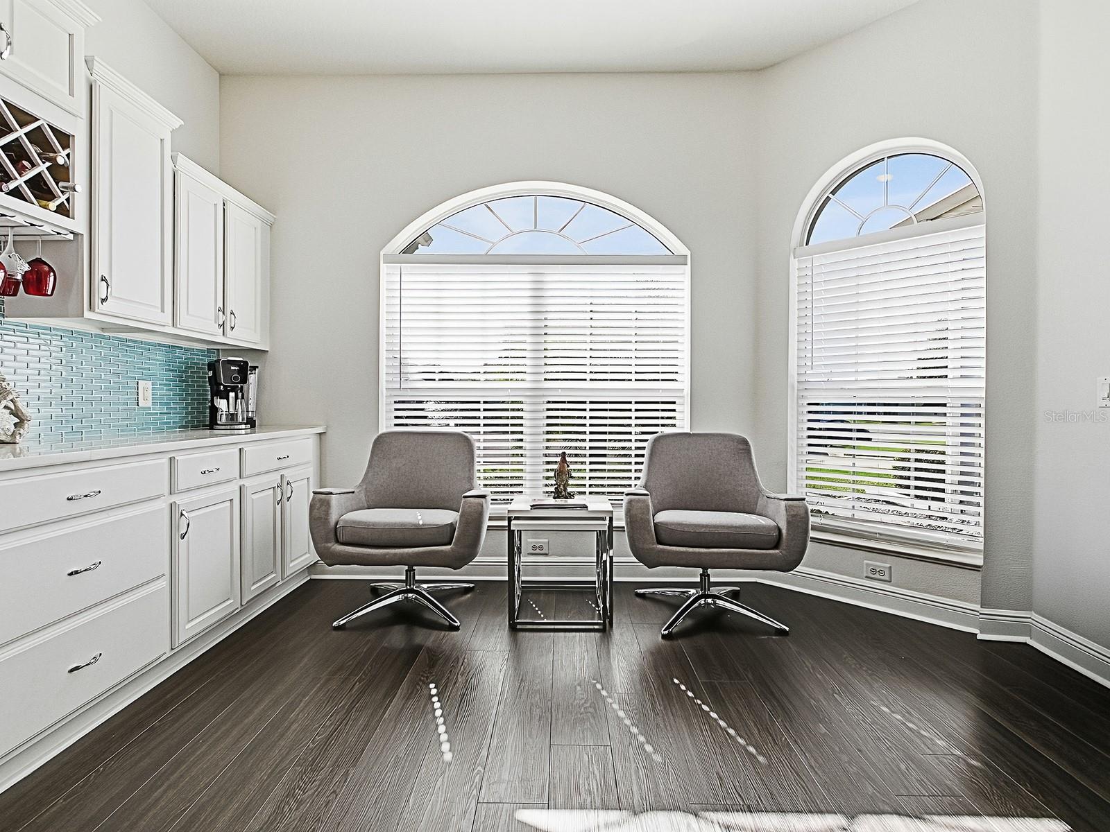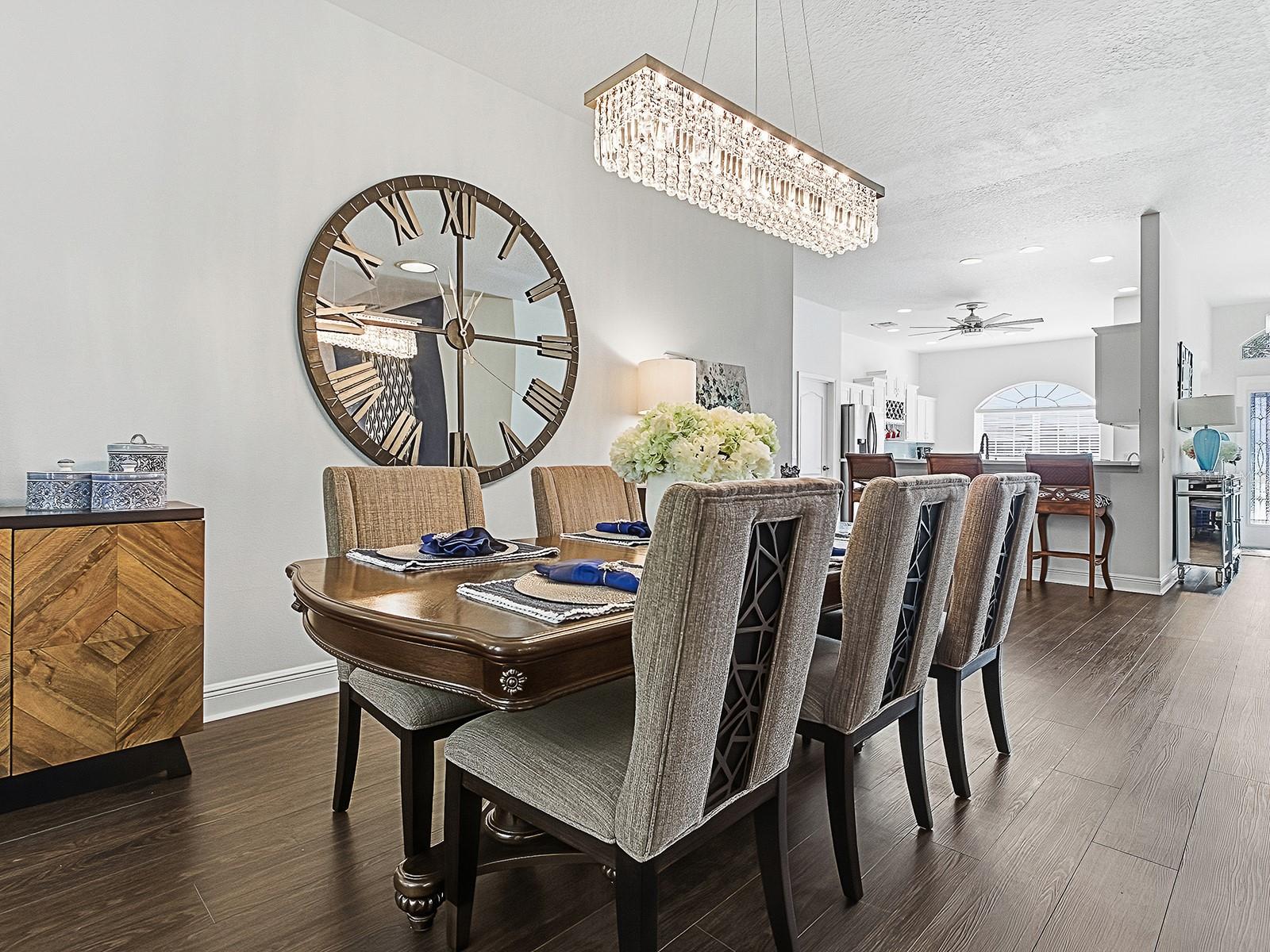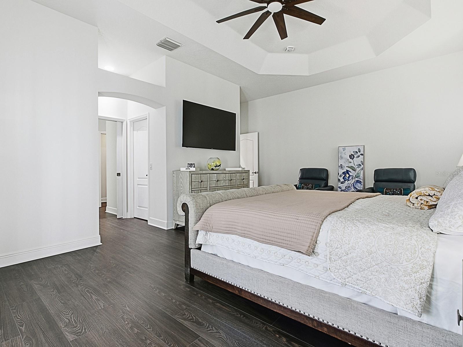 Bond Paid! This beautifully maintained Rancho Mirage Premier home is perfectly positioned on a quiet cul-de-sac in the desirable Village of Palo Alto. Step inside to discover neutral tones, HIGH CEILINGS throughout, and elegant tray ceilings in both the living room and primary suite. Thoughtful updates include NEW fans and lighting, luxury vinyl plank flooring (NO CARPET), and a built-in electric fireplace for cozy ambiance. The newly updated kitchen impresses with QUARTZ countertops, white stair-step cabinetry, a tile backsplash, newer appliances, and an open layout that flows seamlessly into the living and dining areas. A solar tube between the dining and living rooms fills the space with beautiful natural light. Just off the spacious living room, enjoy the ENCLOSED LANAI with heat and air and wood-look tile flooring, perfect for relaxing year-round. The spacious primary suite features dual closets, a private BIRDCAGED PATIO, and a luxurious ensuite bath with GRANITE countertops, a tiled shower with seamless glass door, and a river rock floor. The stretched garage provides ample room for two cars and a golf cart, featuring painted floors, a screen door, pull-down attic stairs, and an extra storage closet with a utility sink. The second bedroom is located at the front of the home (currently without a closet but with space to add one) and is presently being used as a den. The third guest bedroom is spacious and has a double-door closet. The guest bathroom has been updated with GRANITE countertop and tub/shower combo with glass door. The laundry room is equipped with storage cabinets and a front-load washer and dryer on pedestals. Other updates include: Roof (2020), HVAC (2015). This home has a VA assumable loan at a low interest rate. (Preapproval required) Conveniently located between Spanish Springs Town Square and Lake Sumter Landing Market Square, close to Tierra Del Sol Country Club and Championship Golf Course, Hacienda Regional Recreation Center, The Villages Regional Hospital, 441/27 Shopping Corridor, and 466. Come fall in love with this lovely home!