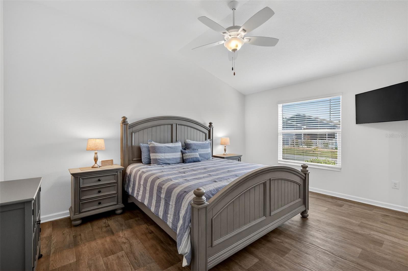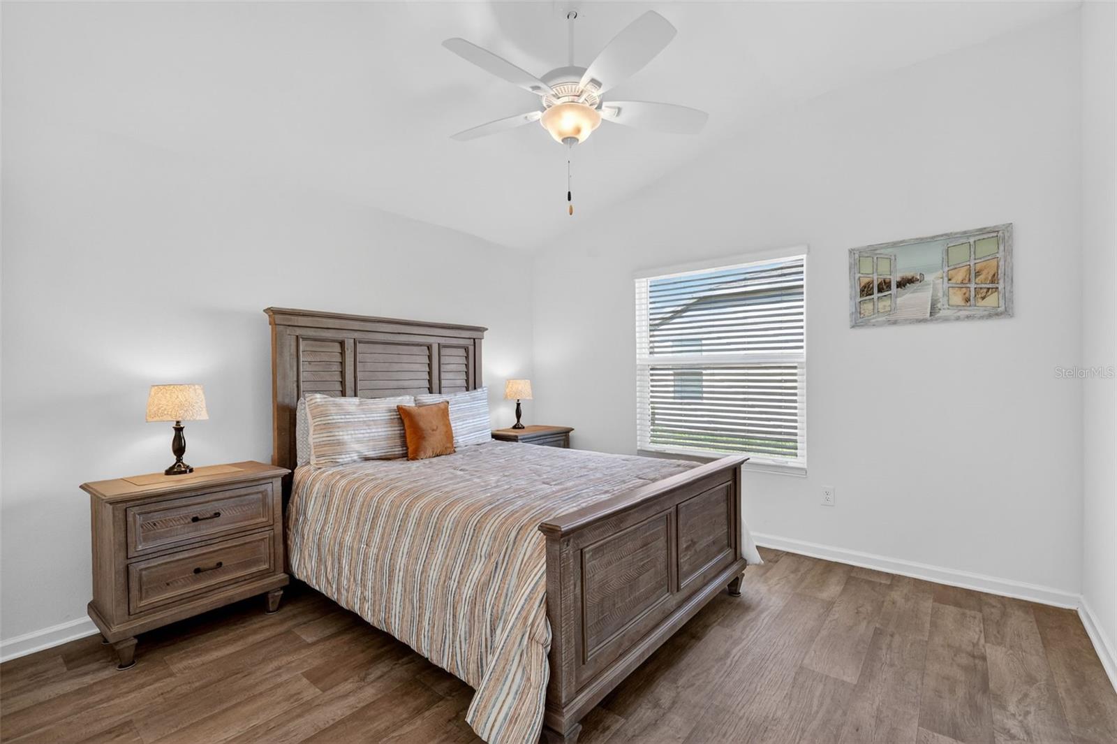 FANTASTIC 2/2 Opal Patio Villa featuring an INTERIOR LAUNDRY nestled on a SPACIOUS CORNER LOT in the Boaz East Villas of the highly sought after Village of St Johns - JUST MINUTES to the popular Sawgrass Grove! Built in 2022, this nearly new home offers LOW-MAINTENANCE peace of mind with MODERN design! The striking exterior features a CHARMING white picket fence and a SIDE PATIO — Ideal for RELAXING in the Florida sunshine or ENJOYING fun-filled OUTDOOR ENTERTAINING with friends and family! Enter in to the wonderful SCREENED LANAI, the PERFECT spot to RELAX with your morning coffee, evening cocktail, or a good book! From the lanai, step inside to discover a bright, OPEN-CONCEPT layout filled with NATURAL LIGHT and stylish finishes. Rich warm-toned Rolled Vinyl flooring flows seamlessly throughout the entire home for easy maintenance living. HIGH VAULTED ceilings adorn the living, dining, and kitchen creating a SPACIOUS and voluminous main living area. While a set of sliding glass doors from the dining room open to the side patio for added convenience. The AMAZING kitchen showcases WHITE SHAKER cabinetry with PULL-OUTS, built-in PANTRY, STAINLESS steel appliances, a LARGE CENTER ISLAND with an EAT-IN breakfast bar, and an CONVENIENT DESK with additional cabinetry - perfect for a home office! The primary bedroom boasts a VAULTED ceiling and a GENEROUS WALK-IN closet. It’s en-suite bathroom is well-appointed with WHITE SHAKER cabinetry, DOUBLE sinks, a WALK-IN shower, and a LINEN closet. Bedroom two features a VAULTED ceiling and a built-in closet. The second bathroom offers a WHITE SHAKER vanity, a tub and shower combination, and a hallway LINEN closet. For added CONVENIENCE, an INTERIOR LAUNDRY closet is located near the kitchen. Completing the package is an 18’x20’ one and a half car garage with a UTILITY SINK and PLENTY of space for a car and golf cart! DON’T MISS YOUR OPPORTUNITY TO MAKE THIS WONDERFUL HOME YOUR OWN! The Village of St. Johns is IDEALLY SITUATED close to Sawgrass Grove, Brownwood Paddock Square, and the new upcoming Eastport Square; nine neighborhood pools and recreation centers (St. Johns; St. Catherine, Bradford, Hawkins, Richmond, Clarendon, Water Lily, Okahumpka, Aviary); three large regional recreation complexes (Ezell, Everglades, and Rohan); Southern Oaks and Woodlands Championship Golf Courses; Lowlands, Loblolly, Longleaf, and Laurel Oaks Executive Golf Courses; Richmond, Marshview, and Live Oaks Pitch and Putt courses; the Clifton Cove Putting Course; shopping, dining, banking, medical, and more at SR 44 and Magnolia Plaza; and Richmond dog park for your furry friends! PLEASE WATCH OURWALKTHROUGH VIDEO OF THIS FABULOUS HOME and call today to schedule your Private Showing or Virtual Tour!