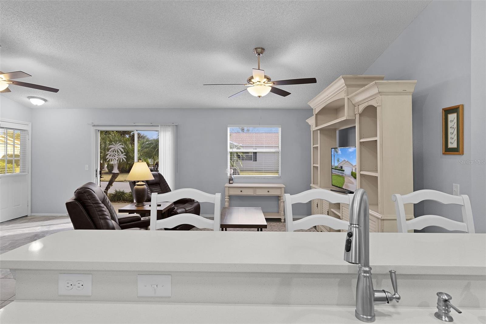 ~PRICE REDUCTION~ ~CORNER LOT~ ~UNOBSTRUCTED LANAI VIEW~ ~2021 ROOF~ ~2017 HOT WATER HEATER~ ~CERAMIC TILE FLOORING THROUGHOUT~ ~FURNITURE PACKAGE SOLD SEPARATELY~ Wow! Super clean, nicely upgraded, well maintained COLONY model patio villa in OAK BEND VILLAS, Village of TALL TREES. Perfectly positioned on a CORNER LOT with mature landscaping that adds both privacy and curb appeal. Step inside to discover VAULTED CEILINGS and CERAMIC TILE FLOORING, creating a bright, open feel. The living room features a ceiling fan and blinds, flowing seamlessly into the dining area, which has its own ceiling fan and sliding doors leading to the patio—ideal for indoor/outdoor living. The kitchen sparkles with QUARTZ countertops, stainless steel appliances, functional peninsula with chair rail, and CLOSET PANTRY, making it as stylish as it is practical. The primary suite offers vaulted ceilings, WALK-IN CLOSET, and private ensuite bath featuring UPGRADED TILE SHOWER with bench and QUARTZ countertops. The guest bedroom boasts vaulted ceilings and a built-in closet. Guest bath includes a tub/shower surround, QUARTZ counters, UPGRADED LIGHTING, and convenient linen closet in the hall. Enjoy year-round relaxation in the ENCLOSED LANAI with acrylic sliding windows, concrete floors plus the north-facing orientation with no direct sun, keeping the space cool and comfortable. The garage includes EPOXY FLOORING, laundry hook-up with sink and shelving. This is a killer location so close to EVERYTHING: 6 executive golf courses, Arnold Palmer Legends Championship Golf Course; Laurel Manor & Tall Trees Rec Centers; restaurants (coffee, ice cream, ethnic, sports/casual, upscale dining); various grocery & health food stores, golf shop, banking and any other type of retail you desire along 466 in Southern Trace.