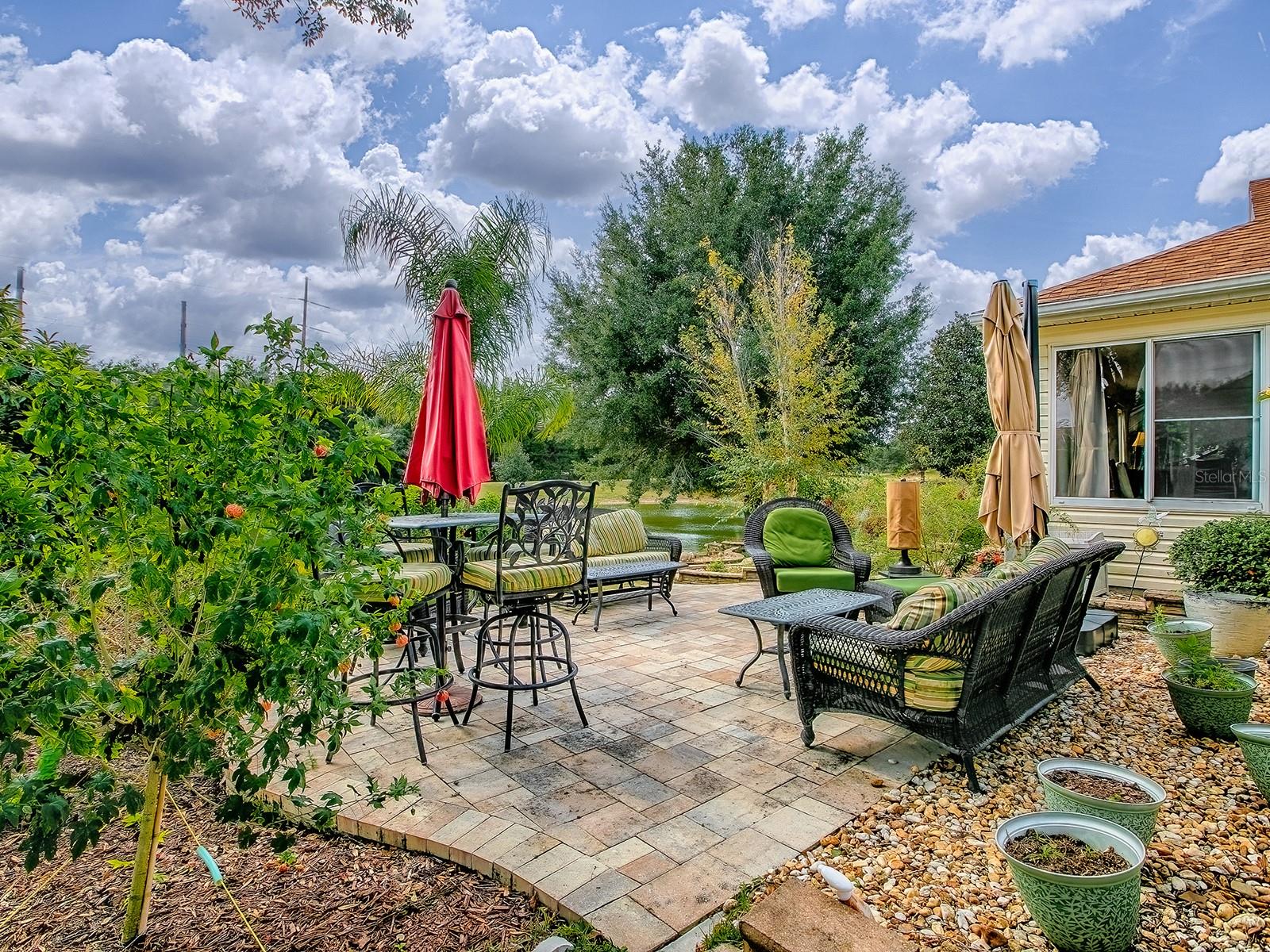 STUNNING & PRIVATE 'PARK-LIKE' SETTING WITH WATER VIEWS LOCATED IN THE VILLAGE OF WOODBURY! TRULY A RARE FIND! BOND PAID! ROOF 2019! HVAC 2024! This 3/2 Designer Home includes a HUGE 28x21 FLORIDA ROOM WITH VIEWS AND A GOLF CART GARAGE! OPEN & SPLIT FLOOR PLAN, VOLUME CEILINGS, CROWN MOLDING, NEW LUXURY VINYL PLANK FLOORING with TILE in the FLORIDA ROOM. The Spacious Kitchen has White Cabinets w/Crown, SS APPLIANCES, GRANITE COUNTERS and an Inviting Breakfast Bar & Cozy Breakfast Nook! The Dining area is accented by Architectural Columns and the Living Area opens to a LIGHT & BRIGHT FLORIDA ROOM creating additional living space, PERFECT for ENTERTAINING! The Primary EnSuite w/ walk-in closet(s), His & Her Sinks & Tiled Walk-in Shower. The Two Guest Rooms are located on the opposite side of the home offering privacy (one does not have a closet). The Guest Bath has a Tub/Shower combo. The Laundry Room is conveniently located in the hall leading to the garage. There is plenty of parking and storage in the TWO CAR plus GOLF CART GARAGE. The Village of Woodbury rests among some tall oaks and the wide-open spaces created by golf courses and a wildlife preserve. The Mulberry Grove Village Recreation Center is close by, and features a fitness club, arts and crafts room and plenty of meeting rooms for clubs and activities. Outside, residents can enjoy the sports pool, bocce, shuffleboard, pickleball, horseshoes or basketball. Woodbury residents can easily access the Nancy Lopez Legacy Country Club, a beautiful location where golfers can enjoy 27 holes of championship golf! You can also choose between two fine executive courses: Walnut Grove or Briarwood. And, the restaurant is fabulous - a great place to gather with friends or family.