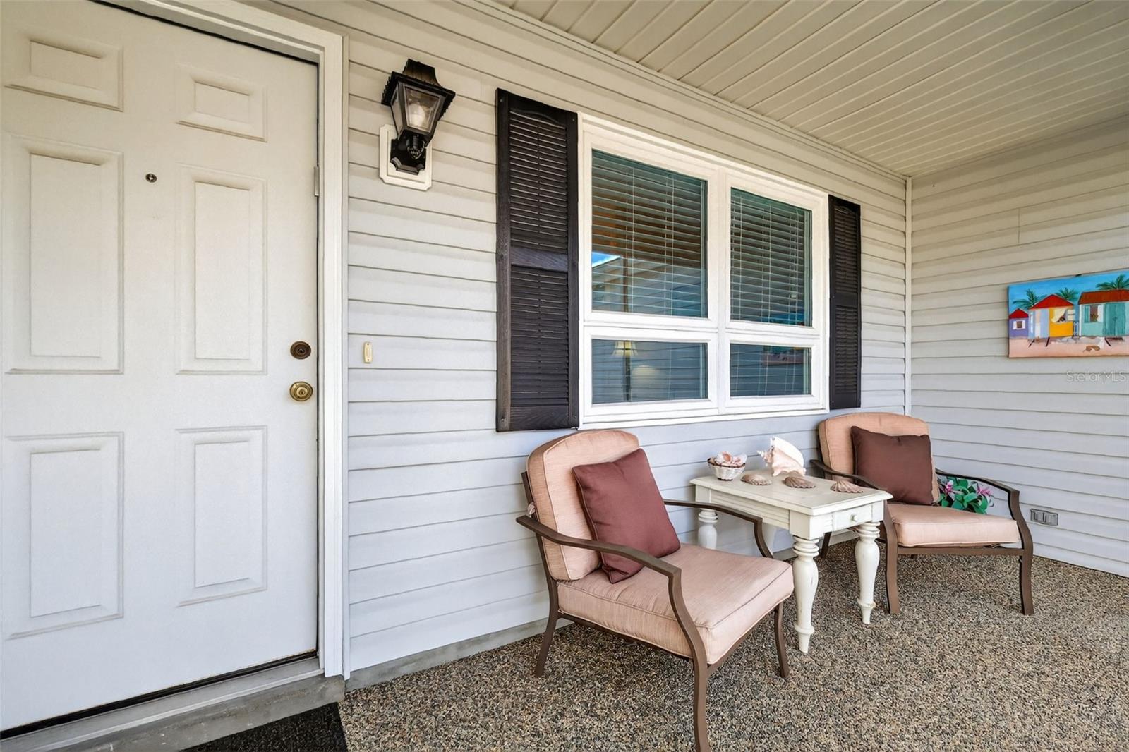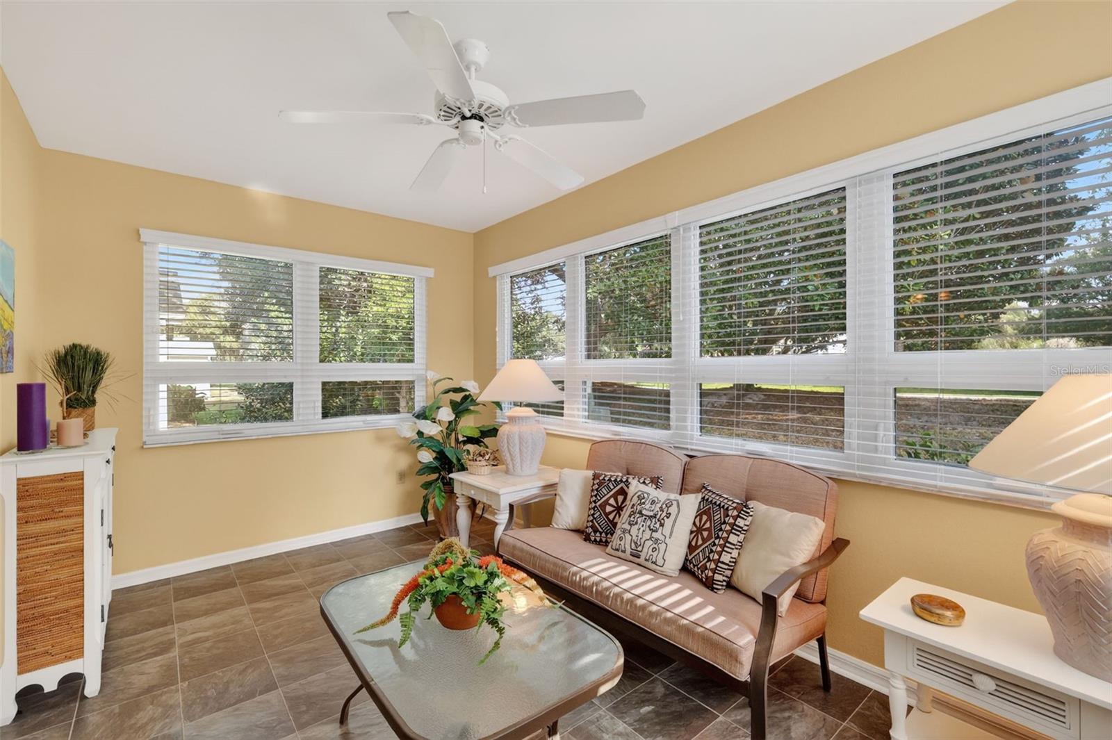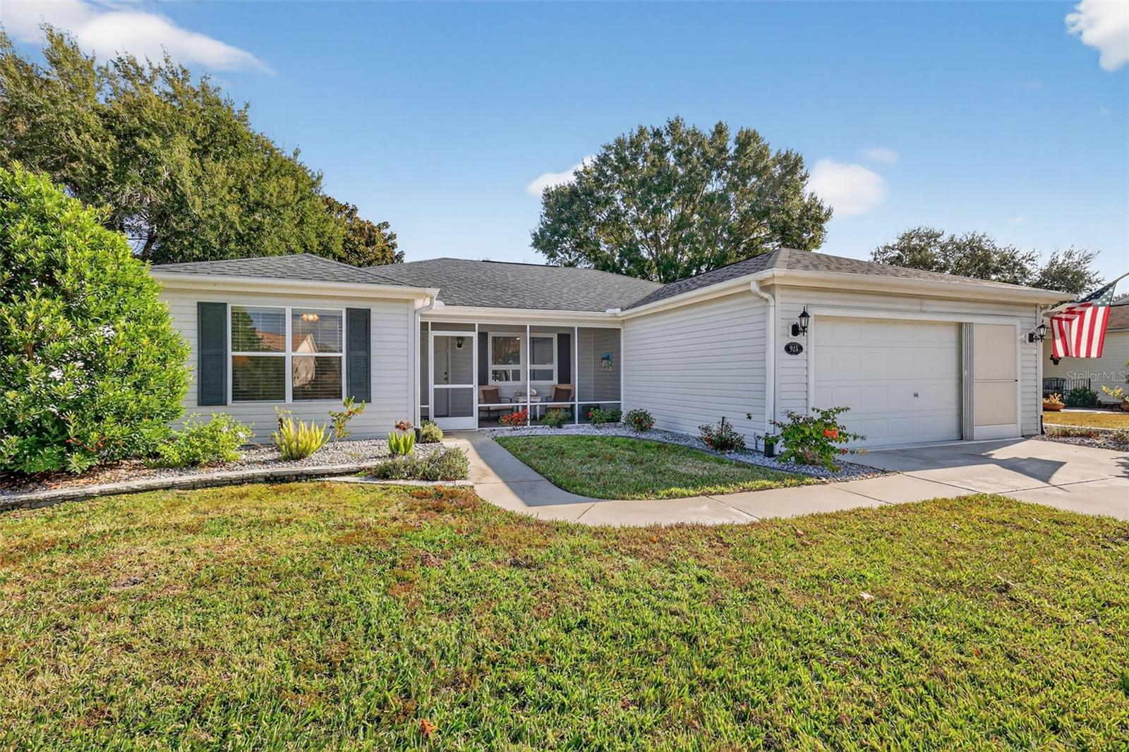 FABULOUS 3/2 Bougainvillea Designer featuring a SPACIOUS FLORIDA ROOM and REAR CHATTAHOOCHEE PAVER PATIO with professional and MATURE PRIVACY LANDSCAPING - CONVENIENTLY LOCATED near BOTH Spanish Springs Town Square and Lake Sumter Landing in the highly sought after Village of Rio Ranchero! BOND PAID! ROOF (2017), HVAC (2025) A quaint SCREENED FRONT PORCH with Chattahoochee flooring welcomes you in to this wonderful home! Step inside to discover VAULTED ceilings and the SPACIOUS, OPEN CONCEPT FLOOR PLAN of the living, dining and kitchen areas. The GORGEOUS, UPDATED kitchen showcases WHITE SHAKER cabinetry, MODERN CARRARA look counter tops, a generously sized CENTER ISLAND with DOUBLE sided cabinetry and a BUILT-IN PANTRY for ABUNDANT STORAGE. Directly behind the dining room, you will discover an AMAZING under-air Florida room with a plethora of windows that allows for an ABUNDANCE of NATURAL LIGHT. This VERSATILE, MULTI-PURPOSE ROOM offers the ideal space for a den, media room, or home office. There’s also an exterior door to the adjacent patio featuring Chattahoochee flooring for grilling or simply enjoying the beautiful Florida weather! Back inside, the primary bedroom boasts a GENEROUS WALK-IN closet and large window. It’s NEWLY REMODELED, EN-SUITE bathroom boasts LIGHT WOOD PLANK TILE flooring, WHITE SHAKER cabinetry with QUARTZ countertop and DUAL sinks, SPACIOUS, CARRARA TILED WALK-IN shower, and a LINEN closet. Designed for privacy, the SPLIT FLOOR PLAN creates a SEPARATE GUEST WING with two additional bedrooms and a second bathroom across the home. Bedroom two features DOUBLE windows and a BUILT-IN closet. The NEWLY REMODELED second bathroom is thoughtfully appointed with a WHITE SHAKER vanity, LIGHT WOOD PLANK TILE flooring, MARBLE countertop, and a tub and shower combination with CARRARA TILE. The third bedroom features a built-in closet and a large window. Additionally, a BONUS linen-closet in the hallway. A centrally located INTERIOR LAUNDRY ROOM with a UTILITY SINK and light WOOD cabinetry leads you to the two-car garage offering a SLIDING SCREEN PANEL and plenty of room for parking and storage! Another bonus - UPGRADED rain gutters that FLOW UNDERGROUND! DON’T MISS YOUR OPPORTUNITY to make this INCREDIBLE HOME YOUR OWN! The Village of Rio Ranchero is IDEALLY LOCATED near three large Regional Recreation Centers: Laurel Manor, Savannah Center, and La Hacienda; several Country Clubs and Championship Golf Courses: Tierra Del Sol, Hacienda Hills, Orange Blossom Hills; and multiple pools, golf, and pickle ball! ONLY MINUTES to County Road 466 with with an abundance of shopping, restaurants, banks, medical and more! PLEASE WATCH OUR WALKTHROUGH VIDEO of this FANTASTIC HOME in an AMAZING LOCATION and CALL TODAY to schedule your Private Showing or Virtual Tour! **Some furniture, decor, and Other Items Available Separately**