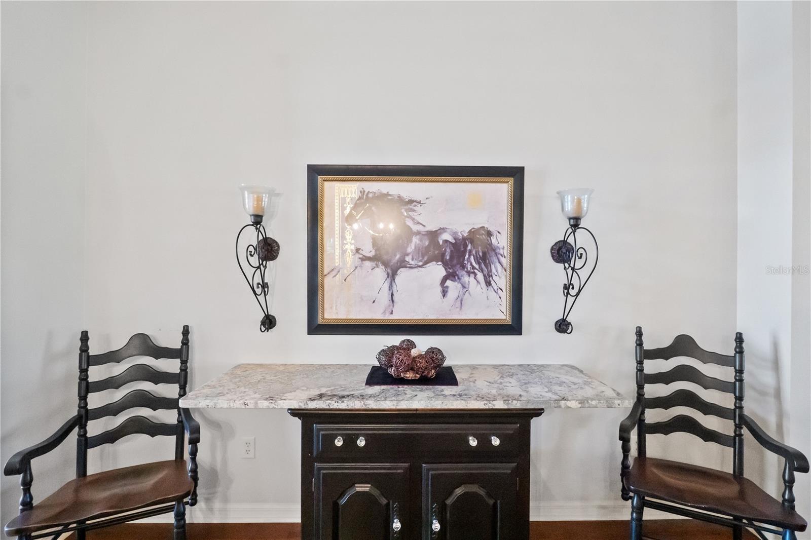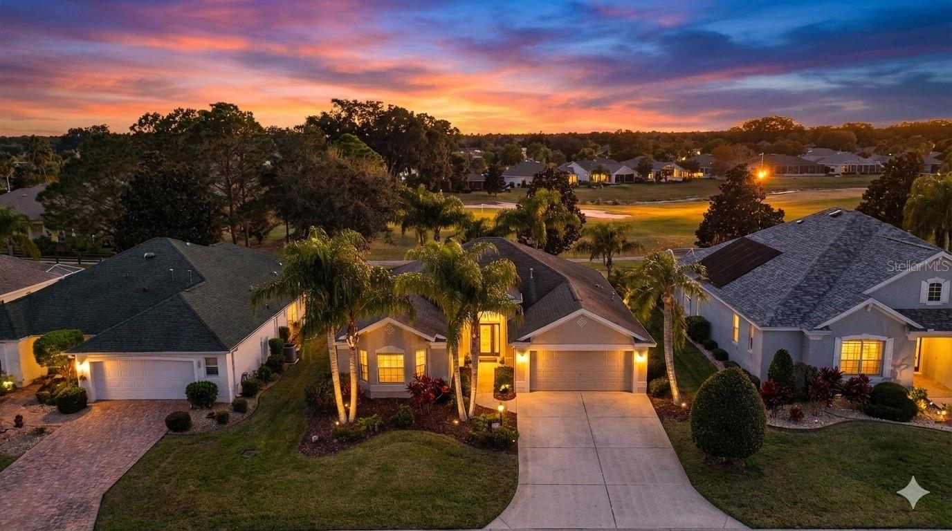 LOCATION, LOCATION, LOCATION! This stunning block and stucco Designer Home is located in the highly desirable Village of Virginia Trace and is just a short WALK to Lake Sumter Landing Market Square — enjoy nightly entertainment, dining, shopping, and the scenic waterfront without ever needing a car or golf cart! Perfectly situated on the GOLF COURSE, this residence showcases an expansive panoramic fairway view, offering beautiful vistas from sunrise to sunset. Step inside to find engineered hardwood flooring flowing through the main living room, dining room, and kitchen. The kitchen is a showstopper with White Bay cabinetry, granite countertops, and stainless steel appliances, including a French-door refrigerator and a gas double-oven range — ideal for cooking enthusiasts. Elegant touches continue throughout with high baseboards, crown molding, and a chair rail in the dining room. The oversized garage provides additional storage and flexibility for vehicles, golf carts, or hobby space. For peace of mind, the SELLER WILL BE INSTALLING A BRAND-NEW ROOF AND HOT WATER HEATER prior to closing. This home also comes with $17,000 in transferable seasonal rent for February through April. Buyers may choose to accept the rental income OR schedule a delayed closing in May. Furniture and the golf cart are available separately through the owners, making this an easy option for those seeking a turnkey lifestyle close to the heart of The Villages. With an unbeatable golf-front view, premium interior finishes, and one of the BEST walkable locations in all of The Villages — just steps from Lake Sumter Landing — this home is a rare opportunity you won’t want to miss!