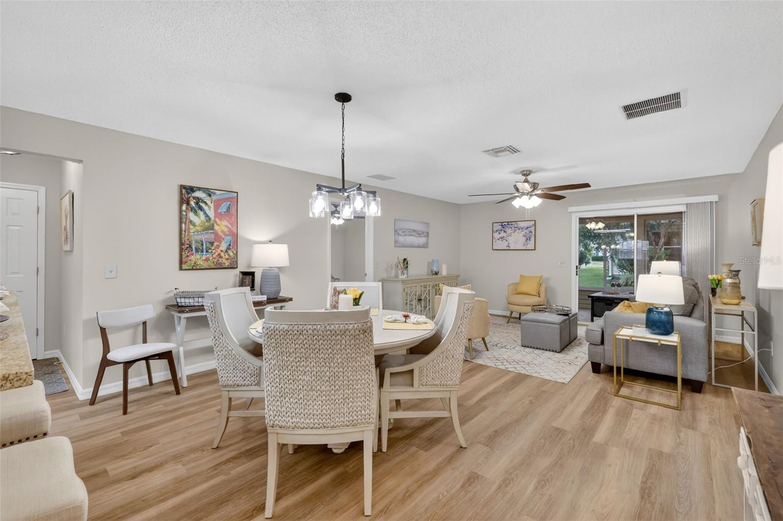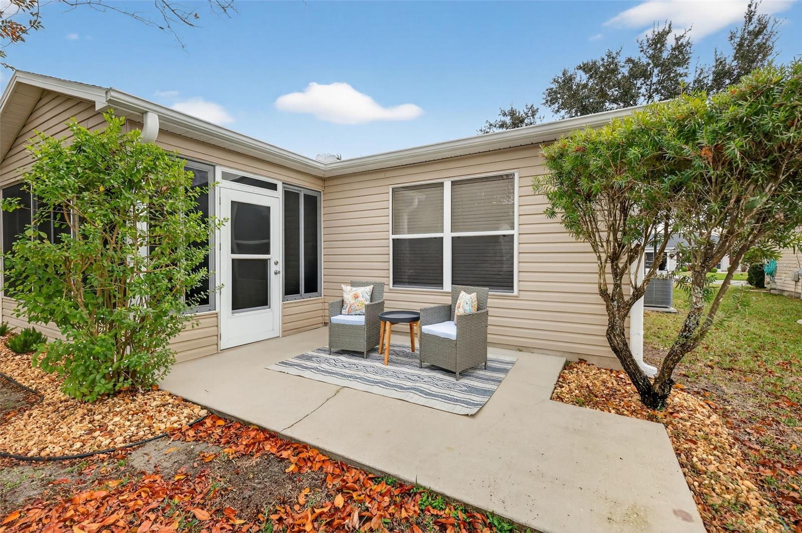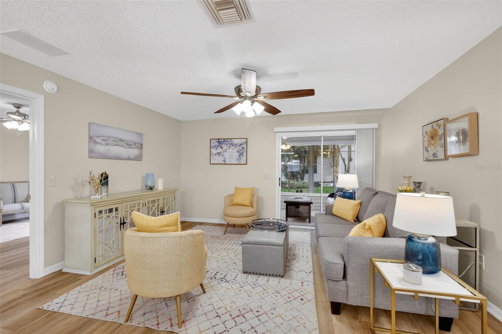 Charming Completely remodeled home in The Village of Summerhill. Welcome to your new home. This fabulous 3 bedroom, 2 bath model might just be what you have been looking for. You will be impressed from the moment you arrive, from the inviting exterior to the wonderful finish out of the interior. Home features luxury vinyl plank flooring throughout, NO CARPET, Window blinds, neutral paint, crown molding, upscale lighting and ceiling fans. Updated kitchen with all new Stainless-Steel Appliances, granite countertops, with plenty of space for entertaining. Primary Bedroom will fit a king size bed, featuring a walk-in closet and private bath, with walk-in shower and linen closet. The spacious guest bedrooms share a bath with a linen closet. The third bedroom does not have a closet, could be the perfect craft room, den or office. Both bathrooms have been updated including lighting and granite countertops. Open split floor plan, with access to the enclosed lanai through the living area, perfect for enjoying the Florida weather. Roof replaced 2025, Water Heater 2025, HVAC 2018. Home is in a Great Location, with Glenview Champions Golf & Country Club nearby offering fine dining and 27 holes of challenging Golf, the Saddlebrook and Hawkes Bay executive courses are just a short golf cart ride away as well as the Saddlebrook Recreation center offering countless ways to spend your warm sunny days. Come and enjoy all that The Villages has to offer, schedule a private showing today.
