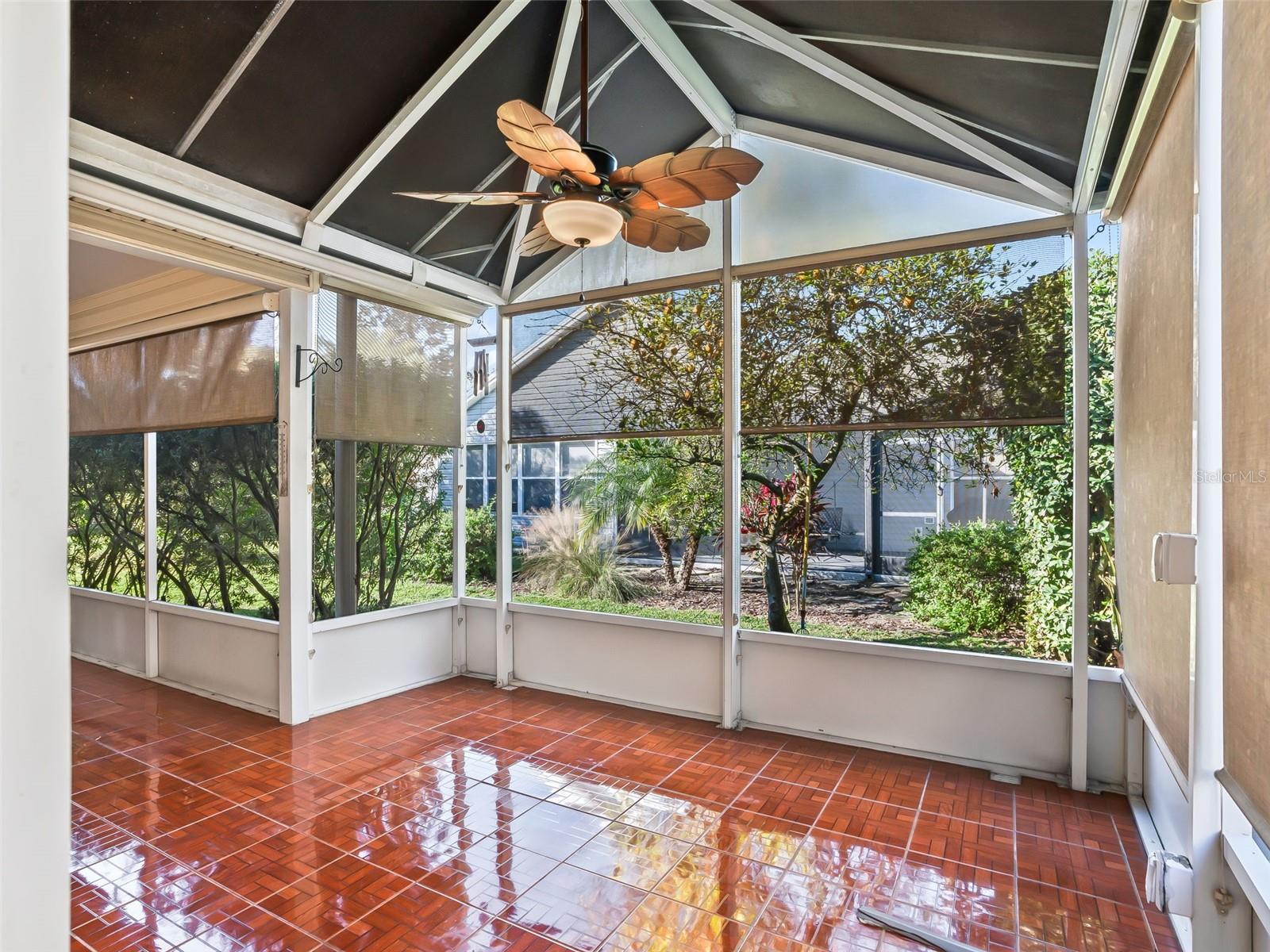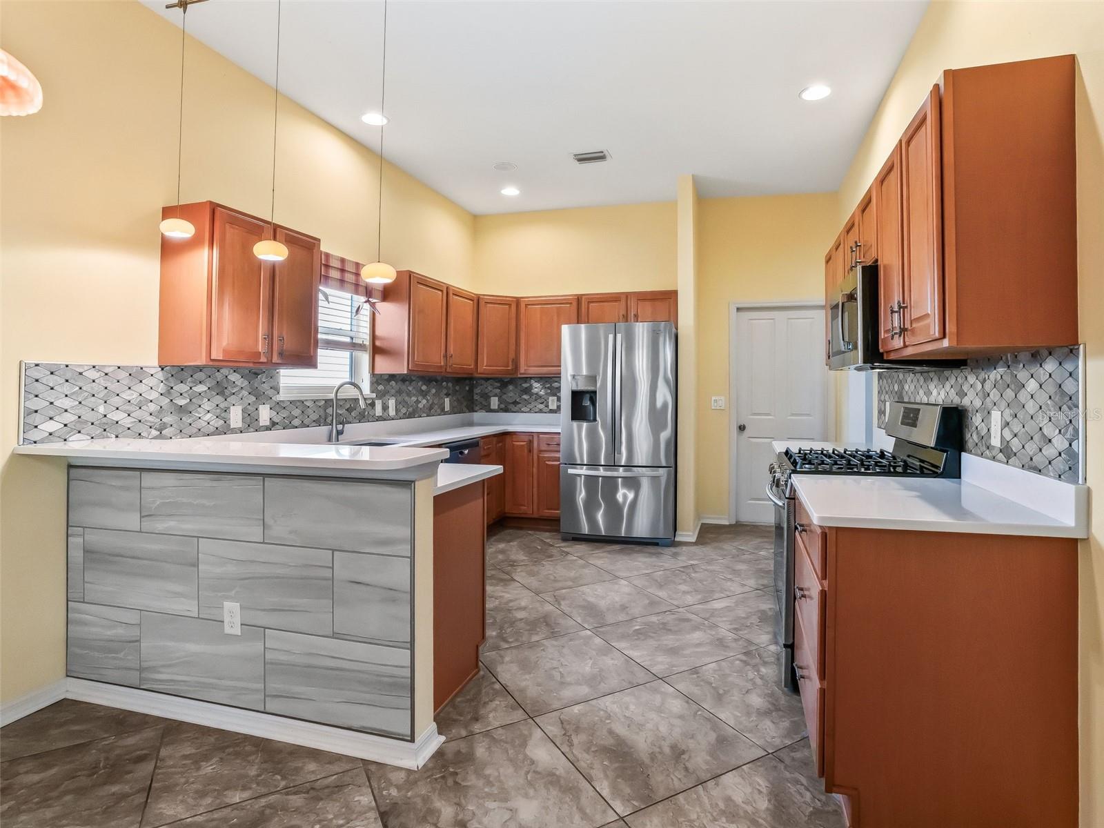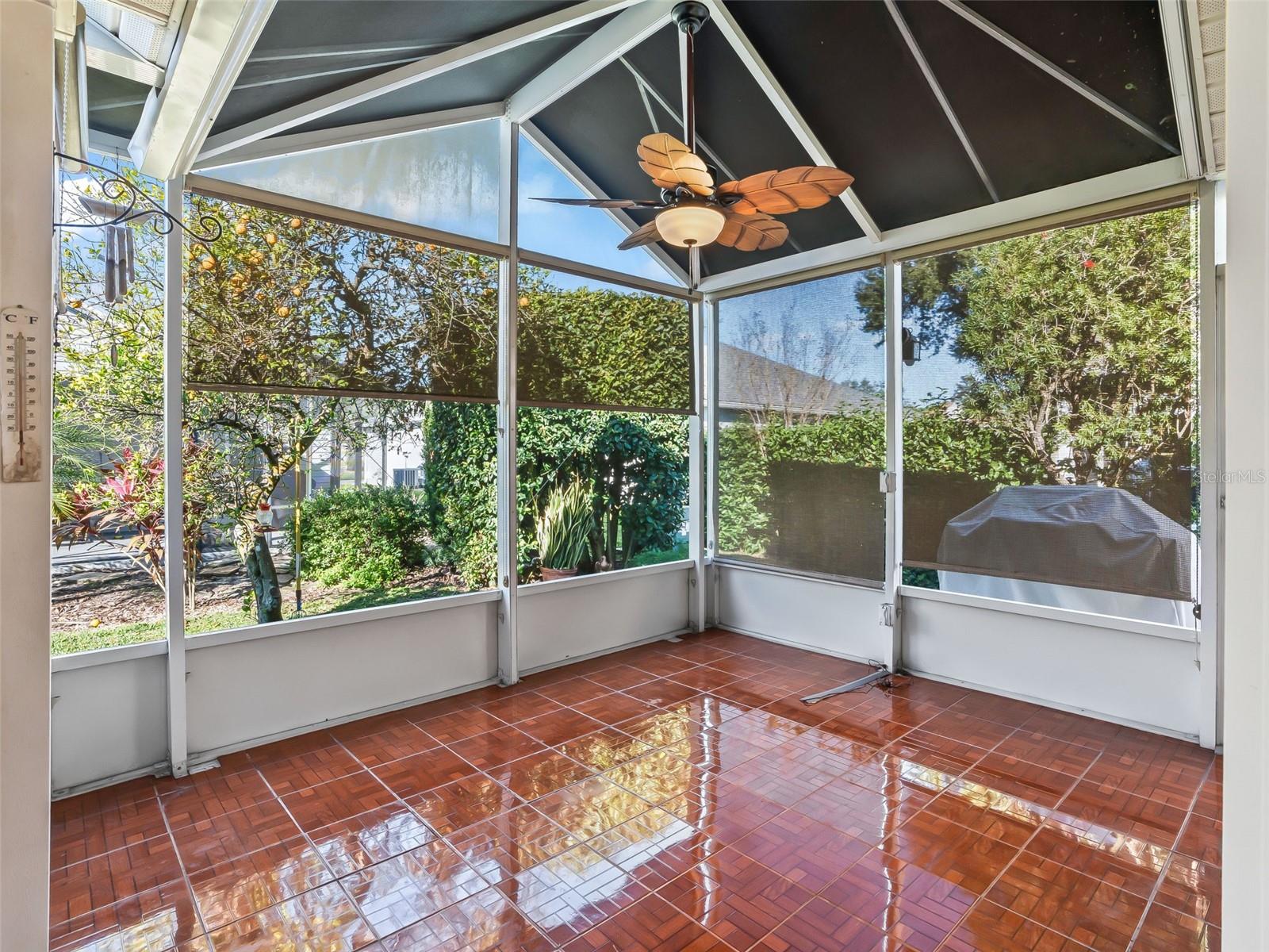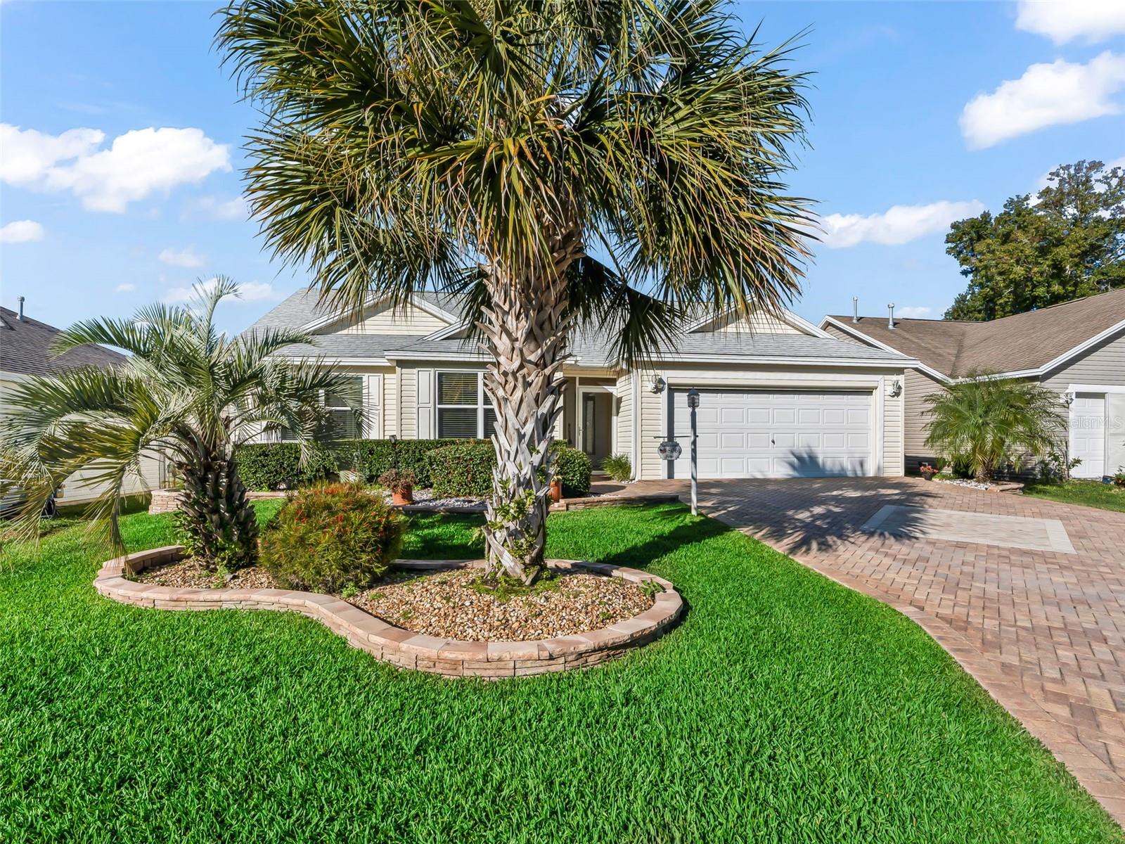 NO BOND! Beautifully Maintained Whispering Pine Designer ALL GAS Home in the Village of Calumet Grove! This home offers outstanding curb appeal with a stone paver driveway and walkway, AUTO screen on garage, screened front entry, and elevated tropical landscaping accented with decorative rock beds. Inside, you’ll find a tasteful blend of wood laminate and tile flooring throughout. The spacious great room with dining area features sliding glass doors that open to a covered, screened, and extended lanai, plus an outdoor patio with barbecue grill connected to natural gas. This home is perfect for indoor and outdoor living. The kitchen is a showstopper with QUARTZ countertops, GLASS backsplash, newer stainless-steel appliance package with GAS range, eat-in breakfast nook with bay window, elevated breakfast bar, and stylish pendant lighting. The window above the sink allows for extra light! The spacious primary en-suite includes a walk-in closet, elongated vanity with dual his and her sinks, bidet, and a beautifully tiled and glass door walk-in shower. A comfortable guest bedroom is located near the second bath featuring a JACUZZI tub. The third room (no closet) with double-door entry, offers flexible use as a bedroom, den, or home office. The enclosed laundry room includes an automatic temperature-controlled fan, space-saving stacked washer and dryer, and additional cabinetry for extra storage. Enjoy privacy on the covered and screened sun porch, surrounded by mature landscaping and a lemon tree that provides an abundance of fresh lemons. The garage is equipped with decorative flooring, built-in closets and extensive shelving, offering exceptional storage. Additional features include a KINETICO filtration and water softener system, ECOBEE Wi-Fi thermostat, WHOLE HOUSE lightning surge protection, ultraviolet HVAC air SANITIZING system, natural GAS hookup with patio grill, rain SENSOR for the sprinkler system, and RING doorbell. Major components provide piece of mind - Roof 2023, HVAC 2020, Hot Water Heater 2019. Conveniently located near shopping, banking, restaurants and amenities! Schedule your private viewing now! This home has been meticulously cared for and is truly move-in ready.