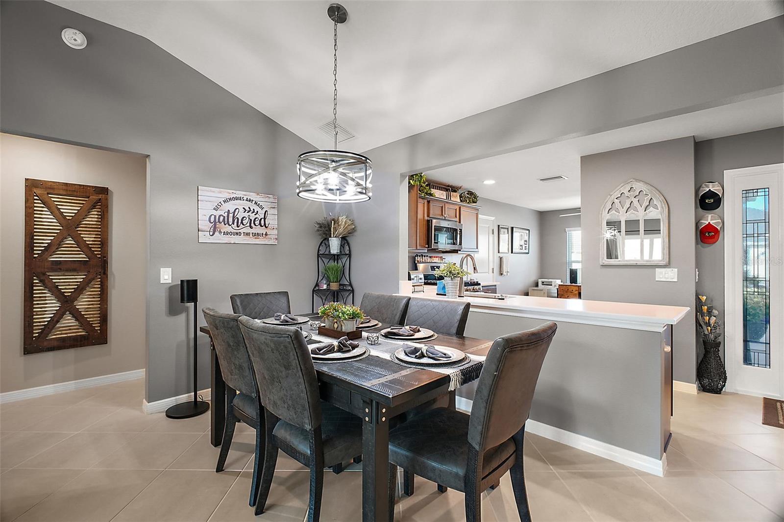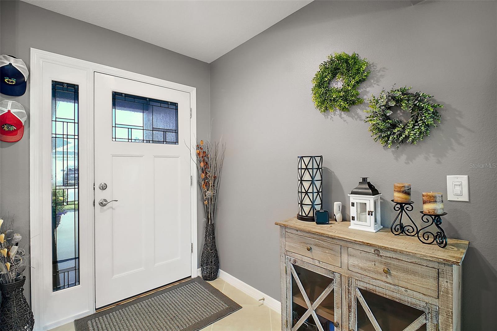 ROOM FOR POOL • NO CARPET • QUARTZ COUNTERTOPS • NEAR SAWGRASS & BROWNWOOD• Welcome to this pristine 2022 Jasmine Designer home in the Village of Hawkins. Constructed of durable block and stucco, this 3-bedroom, 2-bathroom residence offers an open, airy layout with soaring vaulted ceilings and a freshly painted interior. Enjoy low-maintenance tile flooring throughout the main living areas and brand-new laminate flooring in all bedrooms. The kitchen is a true highlight, showcasing brand-new quartz countertops, an undermount sink, stainless steel appliances, and a cozy breakfast nook. Retreat to the primary suite featuring a walk-in closet with a 2024 custom organizer, ceiling fan, and an ensuite bath with quartz dual sinks, and a Roman-style shower. The two guest bedrooms each include ceiling fans, built-in closets, and the same high-quality new laminate flooring. The guest bath offers a tiled tub/shower combo and a quartz vanity. Step out to the screened lanai with weatherproof wood flooring, or relax on the open-air patio where there’s ample space to add your dream pool. Additional conveniences include an indoor laundry room with a utility sink, shelving, and a storage closet, and a two-car garage with an insulated door. Upgrades abound: double-pane energy-efficient windows, whole-house gutters, a surge protector, and gas cooking. Ideally situated just minutes from the Aviary, Ezell, and Everglades rec centers, this home is also close to the Hawkins neighborhood pool and postal station. Magnolia Plaza, Sawgrass Grove, Eastport, and Middleton are just a short drive away, placing you in the heart of it all.