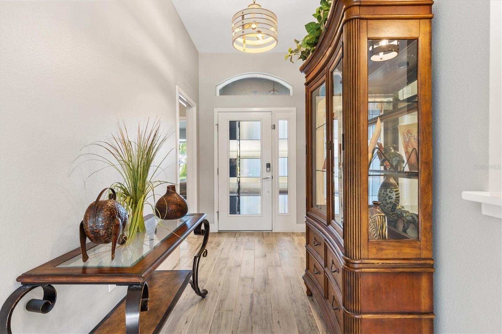Hi, I’m the 2000+ sq ft BEGONIA BLOCK & STUCCO beauty on an OVERSIZED CORNER LOT, and ROOM FOR A POOL, which I’m not shy about. I am filled with UPGRADES. I greet you with custom curb appeal, a PAINTED DRIVEWAY, fresh exterior paint, and GORGEOUS LANDSCAPING with lighting too. Then a lead glass front door with sidelights and a transom that says, “Yep, this is the one.” My favorite brag is FUN OUTDOOR SPACE, plus a fully equipped OUTDOOR Blaze kitchen that’s basically party-ready. There’s ROOM FOR A POOL, and I already have a propane tank on site, ready for a future pool heater and those long, grill, chill evenings. Inside, I bring the wow with a CUSTOM STONE FIREPLACE with TV mount, Stackable tinted sliders that open to the outdoor living area. My kitchen is built to work hard and look good doing it: STAINLESS STEEL appliances, QUARTZ countertops, subway TILE backsplash, sleek gray soft-close cabinetry with under-cabinet and in-cabinet lighting, a farmhouse sink, and pull-out PANTRY shelves so everything glides like it has manners. A breakfast nook and counter seating keep everyone connected while you cook and entertain. Oh, look at my floors, wood-look tile in main areas, SURROUND SOUND, upgraded electrical, extra wiring, recirculating hot water, whole home filtration with reverse osmosis, and a Whole home surge protector The owner’s suite is your calm retreat, featuring a tray ceiling, abundant natural light, two custom walk-in closets, dual sinks, and a tiled Roman-style WALK-IN shower. It’s a split bedroom plan, so guests have privacy on the other side, with two bedrooms and a guest bath featuring a tiled tub and shower. Even my garage is upgraded: STRETCHED to 2-car plus Cart space, EPOXY floor, INSULATED GARAGE DOORS. LED lighting, heavy-duty shelving, and a 24,000 BTU, 20 SEER mini-split. I’ve also got an insulated attic with stairs, flooring, and built-in shelving, 6-inch gutters, and landscape lighting. Location: I’m in Chitty Chatty, close to trails, and a quick golf cart ride to Lake Deaton, Brownwood, and Sawgrass Grove and great pizza at Piesano’s. Video tour on listing agent YouTube channel.