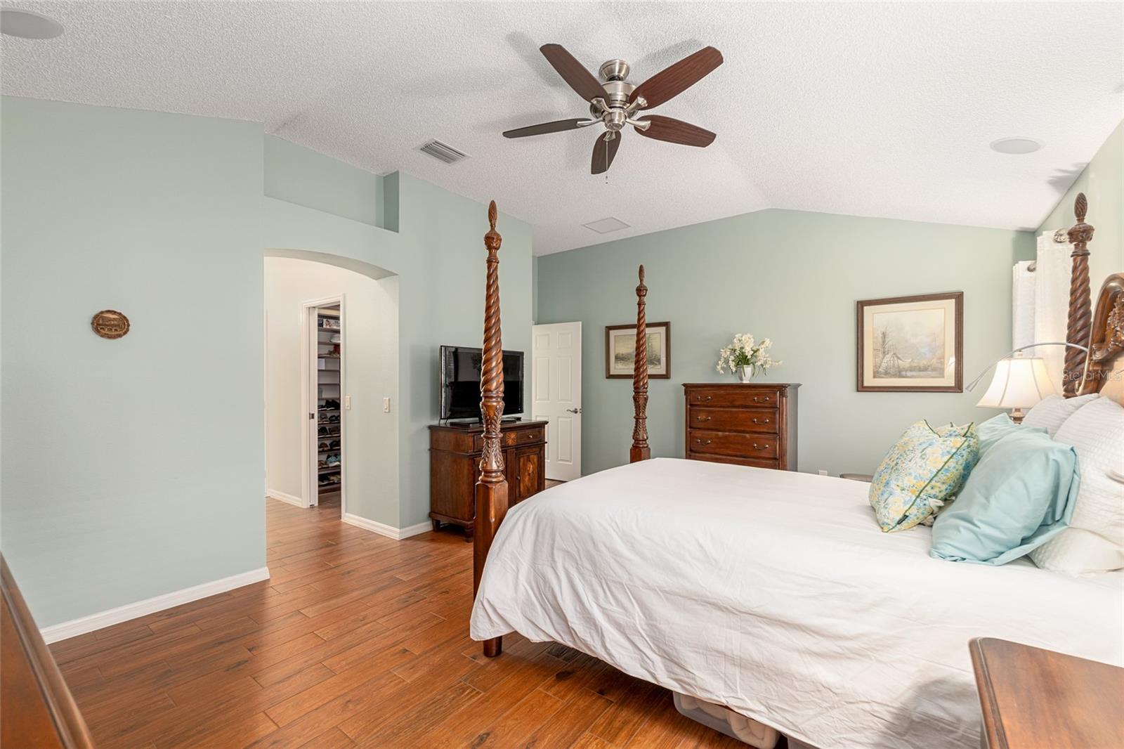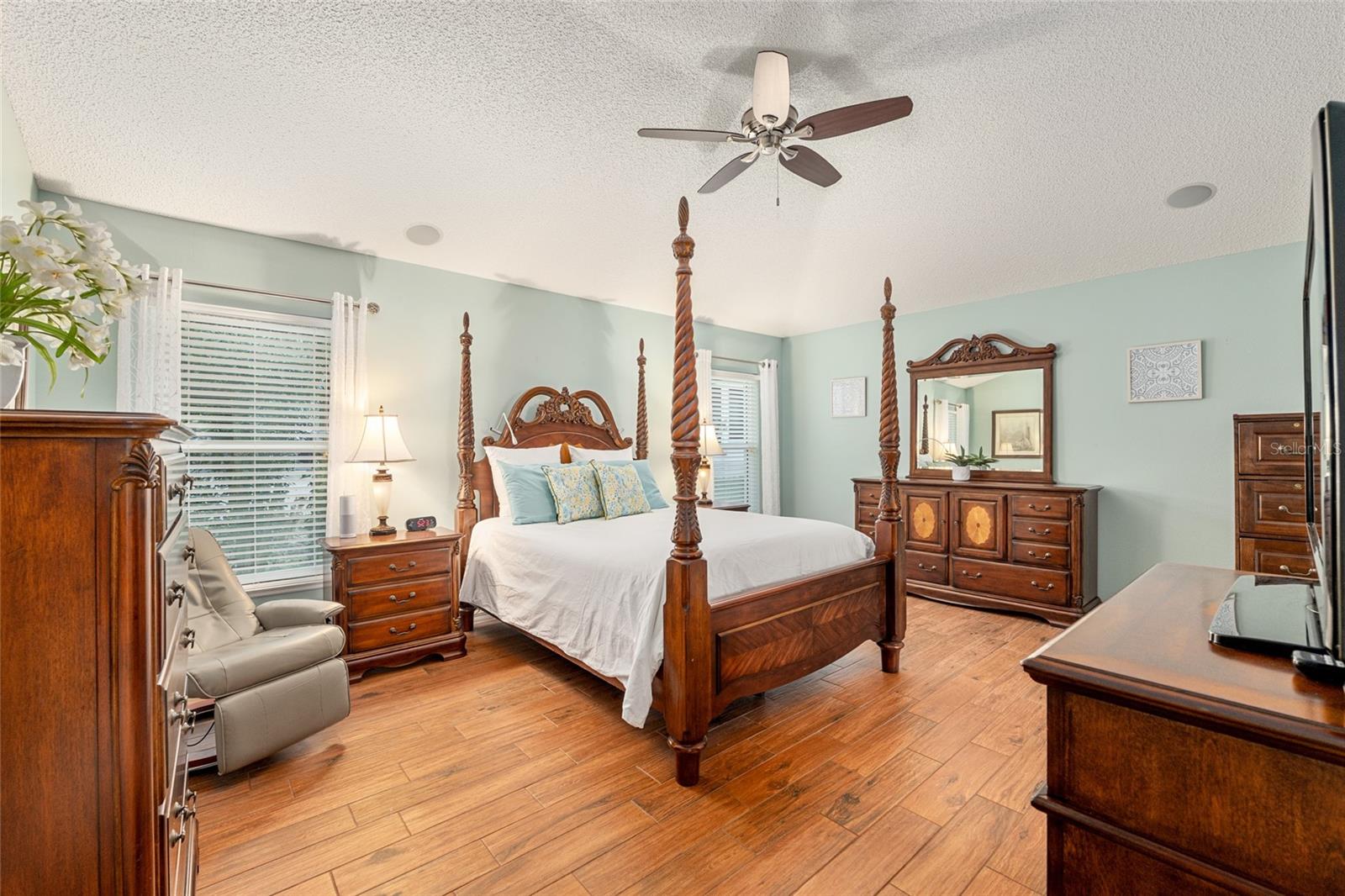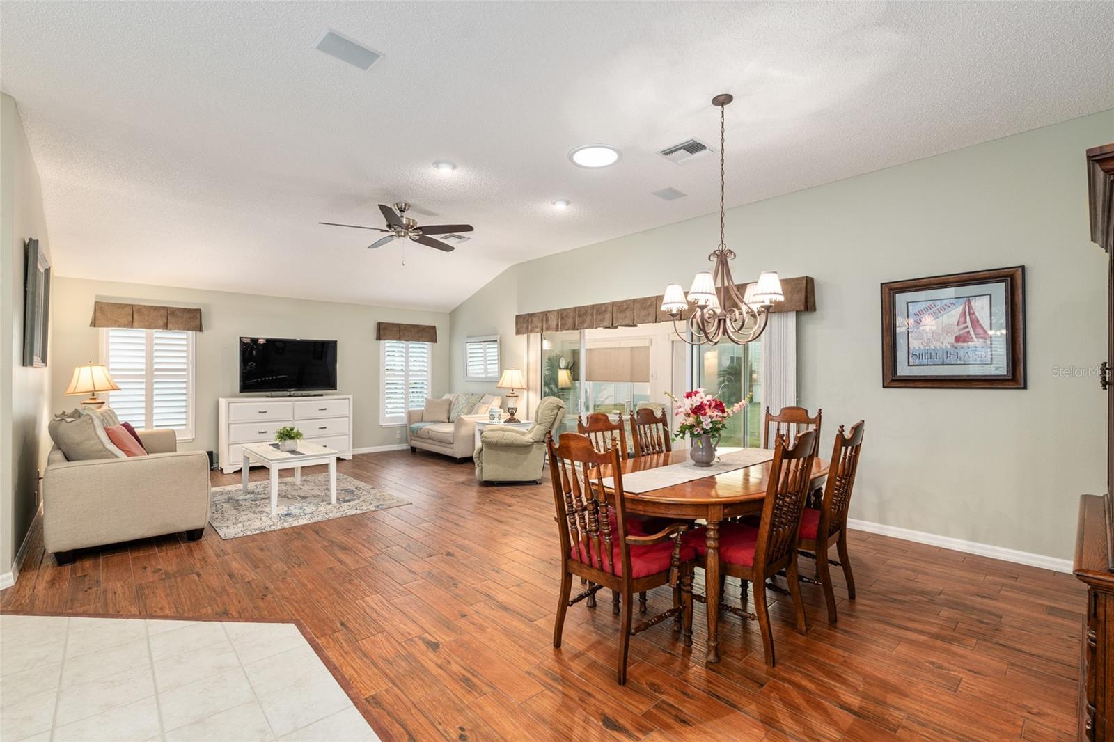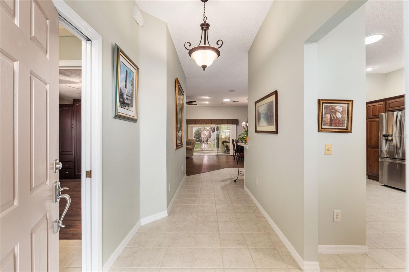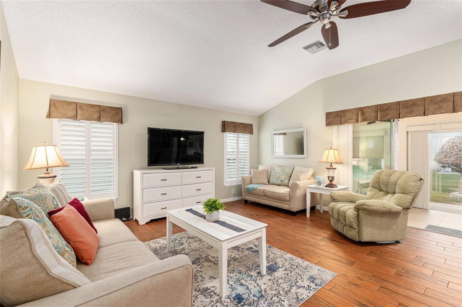 NO BOND! Gorgeous STUCCO Gardenia with amazing CURB APPEAL located in the Village of CALUMET GROVE, featuring a PAVED driveway and a 2-CAR GARAGE with an ELECTRIC SCREEN DOOR and PULL-DOWN ATTIC STAIRS! NO CARPET! WOOD-LOOK TILE in the Living/Dining Room and ALL 3 Bedrooms, VAULTED CEILINGS, PLANTATION SHUTTERS, and a column-free living and dining space create a bright and spacious feel. BUILT-IN Speaker System throughout the home. The amazing Kitchen offers CROWNED Raised-Panel CHERRY Cabinets with PULL-OUT Shelving, STAINLESS STEEL Appliances, SOLID-SURFACE CORIAN Countertops, DIAGONAL TILE Backsplash, a SOLAR TUBE, TILE flooring, and RECESSED Lighting. Includes a STAINLESS-TOP MOVABLE ISLAND, and the front of the breakfast bar is tiled to match the backsplash. The spacious Primary Bedroom features VAULTED Ceilings and stunning DUAL CUSTOM CLOSETS! The En-Suite Primary Bathroom includes DUAL SINKS with UPGRADED FAUCETS and LIGHTING, CORIAN countertops, upgraded mirrors, a BEAUTIFULLY TILED WALK-IN Shower with FRAMELESS GLASS DOORS, and a CUSTOM Linen Closet. The front Guest Bedroom includes PLANTATION SHUTTERS and a CLOSET. The second Guest Bedroom does not have a closet but features a BUILT-IN MURPHY BED with STORAGE and a CORNER DESK, making it PERFECT as a HOME OFFICE and GUEST ROOM. The Guest Bathroom includes a JETTED TUB. Includes an INDOOR LAUNDRY with plenty of cabinetry STORAGE. The GLASS-ENCLOSED Lanai is UNDER HEAT & AIR and flows into the living area. The lanai features DOUBLE-PANE TINTED Glass, TILE Flooring, CUSTOM Blinds, and PRIVATE Landscaping. Roof 2022, Tankless HWH 2013, HVAC 2012. PRIME LOCATION! Just around the corner from the FIRST RESPONDER'S RECREATION CENTER, featuring a WALK-IN POOL, PITCH-N-PUTT GOLF COURSE, PICKLEBALL, and more. Conveniently close to NANCY LOPEZ COUNTRY CLUB, Multiple ADULT AND FAMILY POOLS, and MULBERRY GROVE RECREATION CENTER. Shopping, banking, restaurants, and the VA MEDICAL CENTER are all nearby. Furniture available separately!