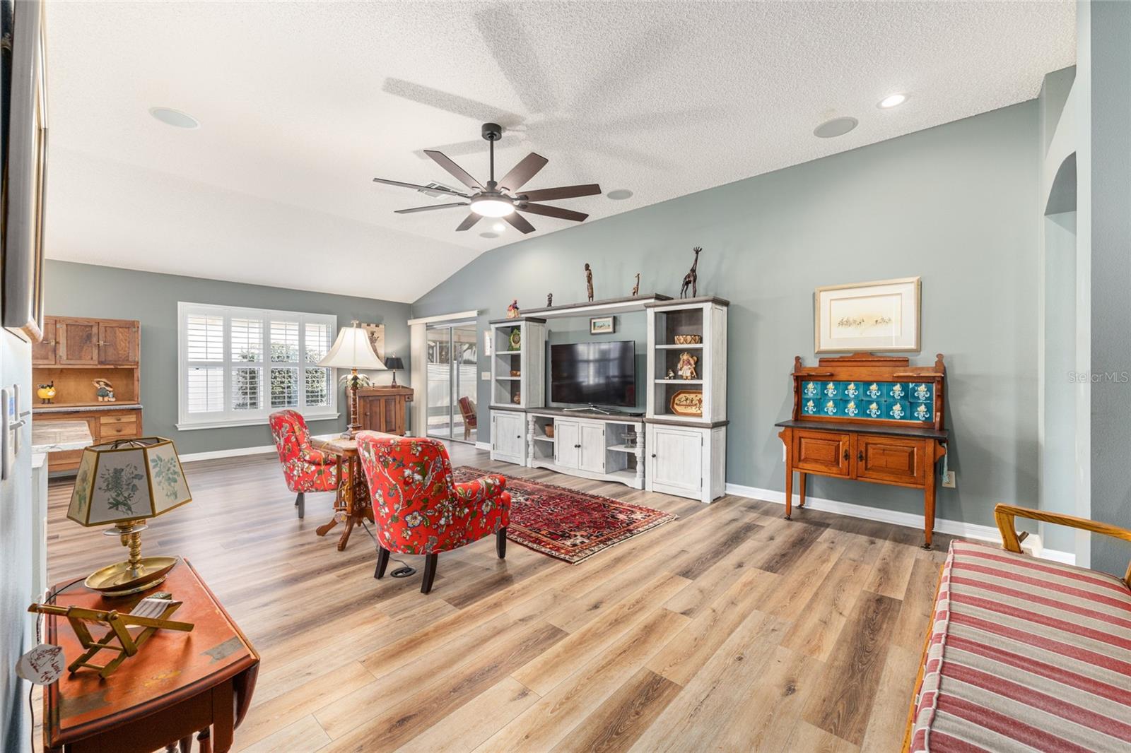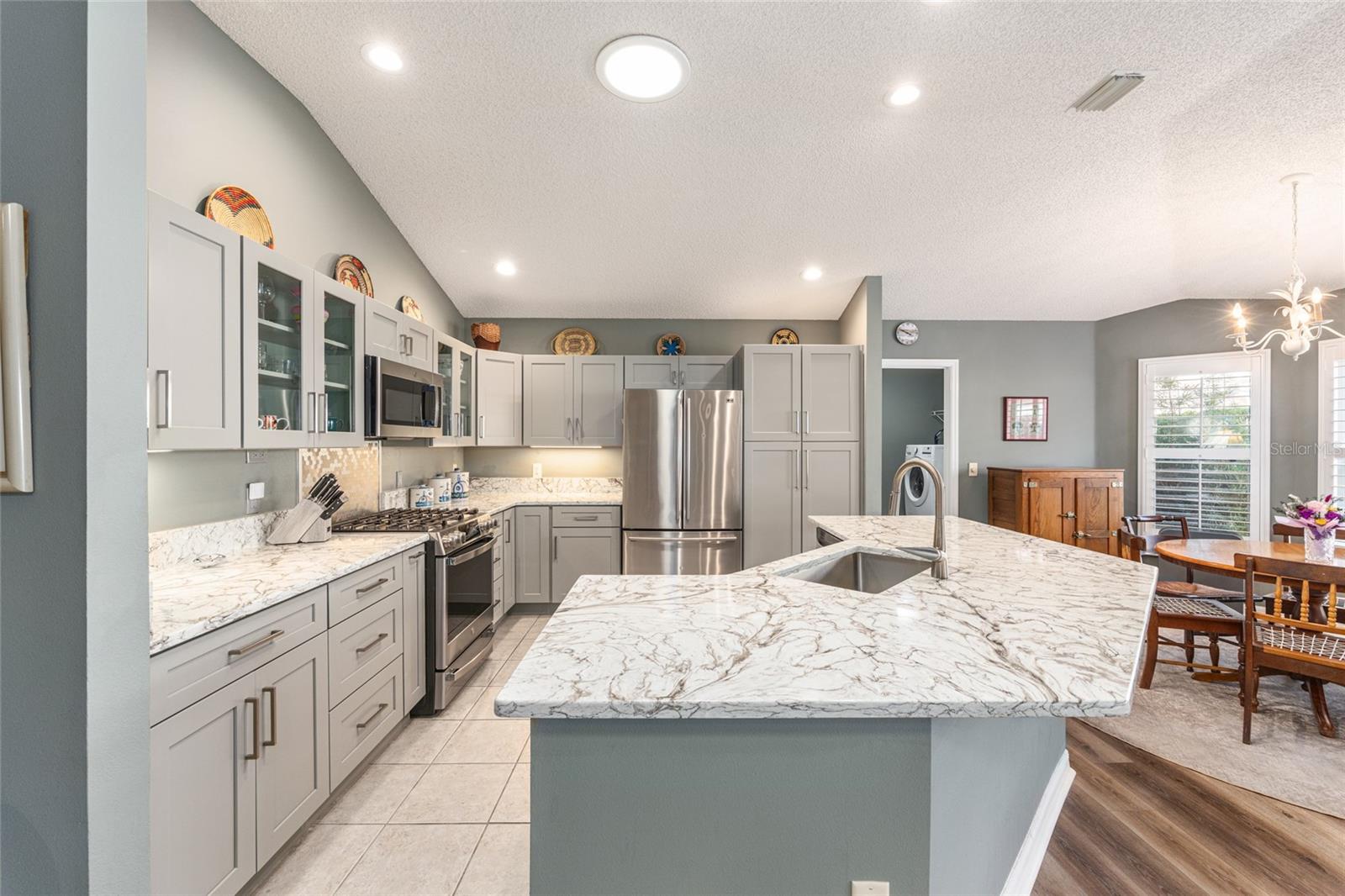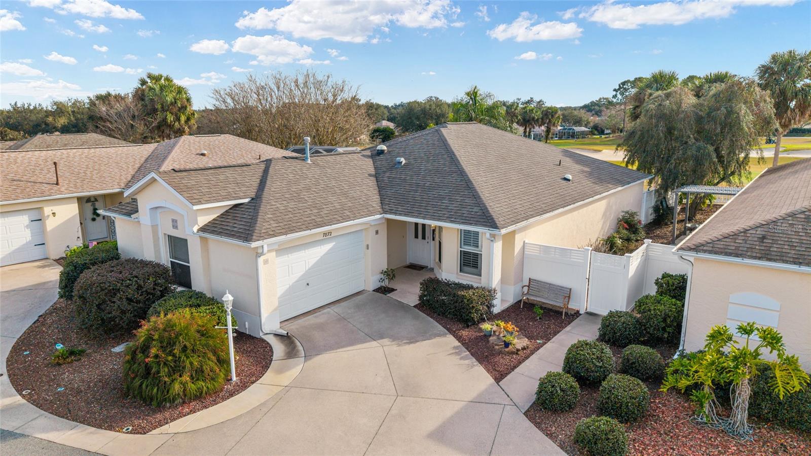 MUST SEE!! ~ GOLF COURSE HOMESITE ~ BOND PAID ~ HVAC 2023 ~ HWT 2022 ~ ROOF 2020 ~ $100,000+ IN UPGRADES WITHIN THE PAST 3 YEARS! THIS CAMERON VILLAS BEAUTY SITS ON THE 6TH FAIRWAY of OAKLEIGH IN THE SOUGHT AFTER VILLAGE OF CALUMET GROVE! THE DESIRED, 1,652 sq ft, BLOCK & STUCCO, GRANTHAM MODEL HAS BEEN EXTENTSIVELY RENOVATED TO INCLUDE ALL NEW CABINETRY AND HARDWARE (KITHEN & BATHS), QUARTZ COUNTERS, TILED, WALK-IN SHOWER IN PRIMARY BATH, LVP FLOORING, GAS RANGE WITH DUAL FUEL OVEN, DISHWASHER, WASHER WITH PEDESTAL, & PLANTATION SHUTTERS! THE HOME ALSO FEATURES '5' SOLAR TUBES TO BRING NATURAL LIGHT INTO THE LAUNDRY ROOM, KITCHEN, BOTH BATHROOMS and THE PRIMARY CLOSET! The FRONT (3RD) BEDROOM CLOSET WAS REMOVED DURING THE ORIGINAL CONSTRUCTION OF THE HOME IN ORDER TO ACCOMODATE A SPACIOUS BUILT-IN OFFICE, INCULDING A MURPHY BED & ADDITIONAL STORAGE UNITS. AN ENCLOSED 8 X 19 LANAI PLUS an 8 X 25 BIRDCAGE GREATLY ENHANCE the ENJOYMENT OF THE FABULOUS GOLF COURSE IN EITHER RAIN OR SHINE CONDITIONS! AS TO THE GARAGE, A NEW WATER SOFTENER SYSTEM HAS BEEN INSTALLED, ALONG WITH CHANGE OUTS OF BOTH THE HWT & HVAC SYSTEM AND THE GARAGE DOOR OPENER MOTOR DRIVE REPLACED, INCLUDING A NEW KEY PAD OPENER! COME CHECK OUT THIS JEM FOR YOURSELF!! THE LOCATION COULDN'T BE BETTER! CLOSE PROXIMITY TO SHOPPING, MEDICAL FACILITIES AND RECREATIONAL AMENITIES! DON'T MISS THIS RARE OPPORTUNITY TO ENJOY RESORT-STYLE LIVING WITH GOLF COURSE VIEWS! CALL FOR AN APPOINTMENT TO VIEW! Please note all measurements are taken from public records - Buyers to verify.