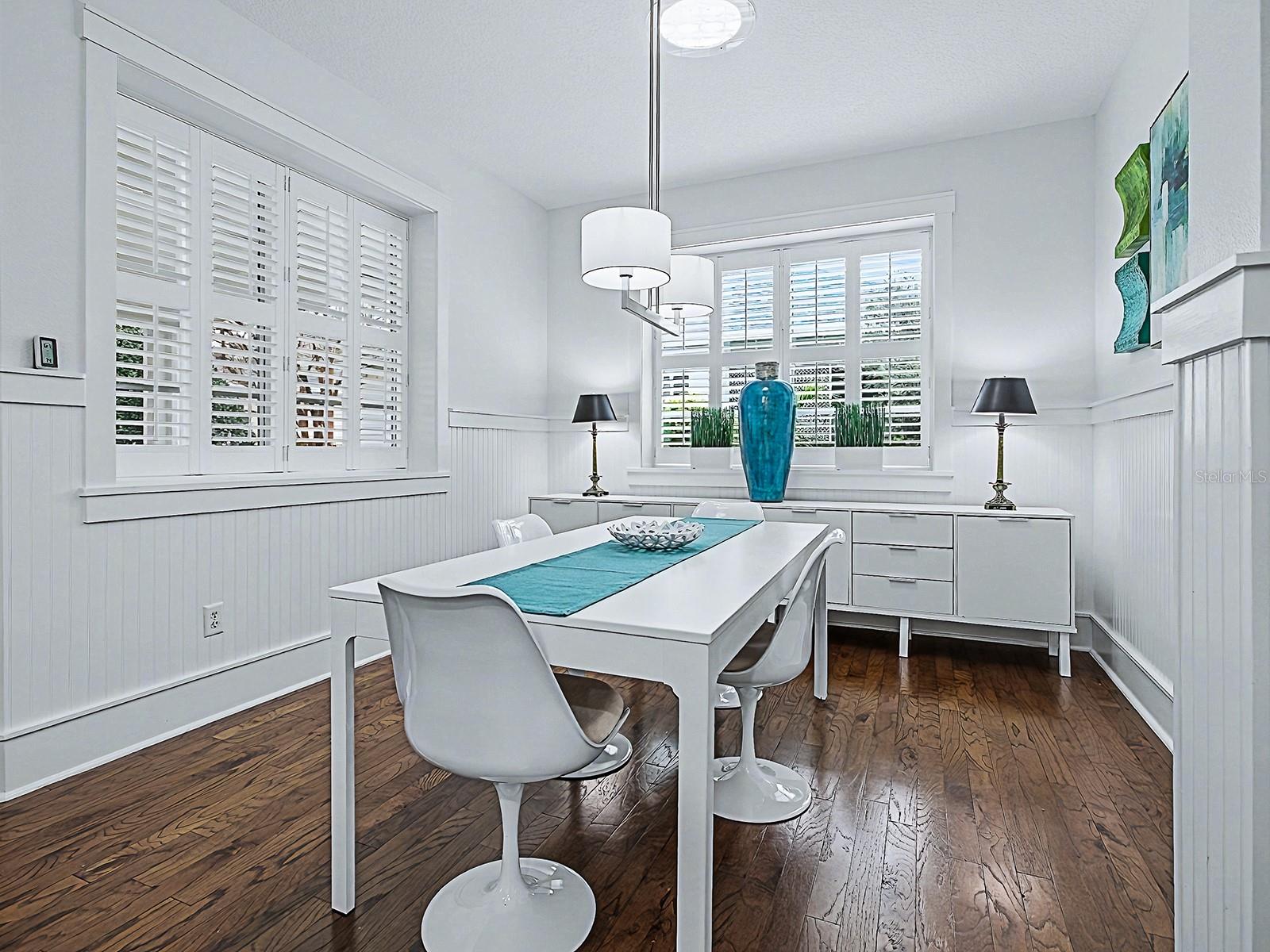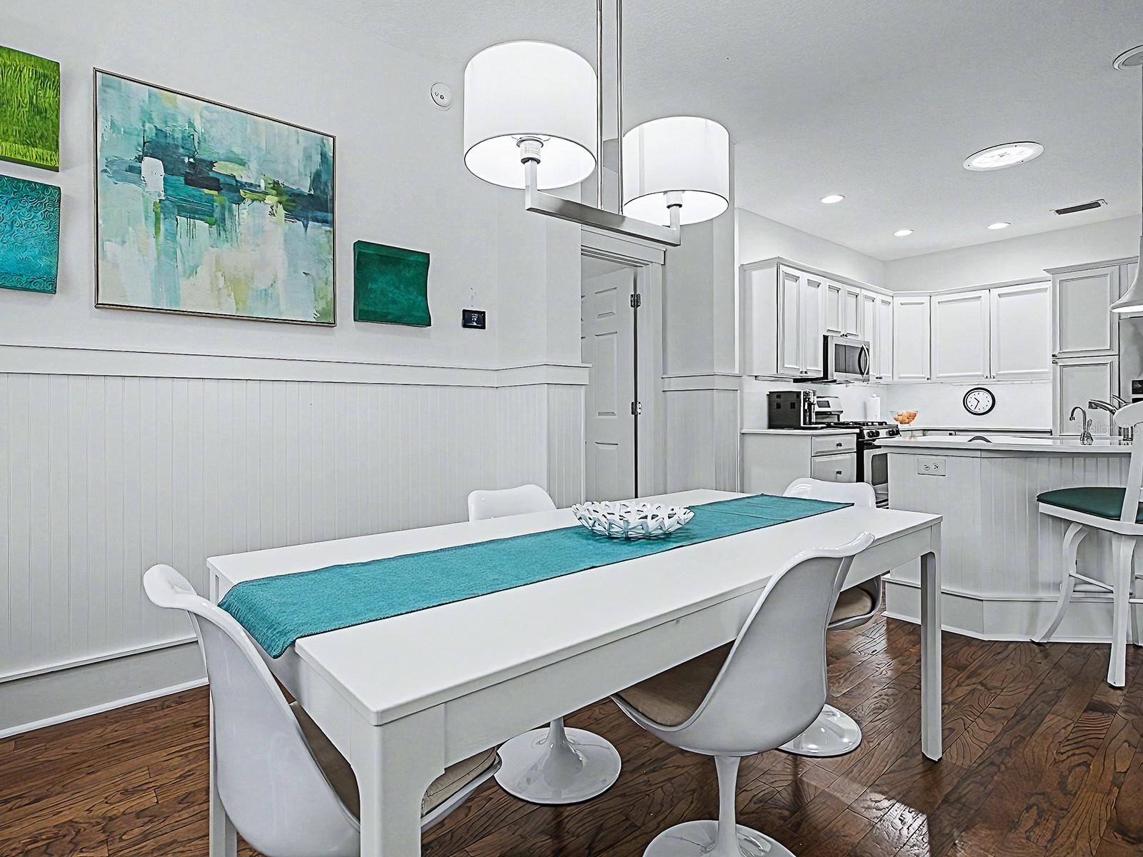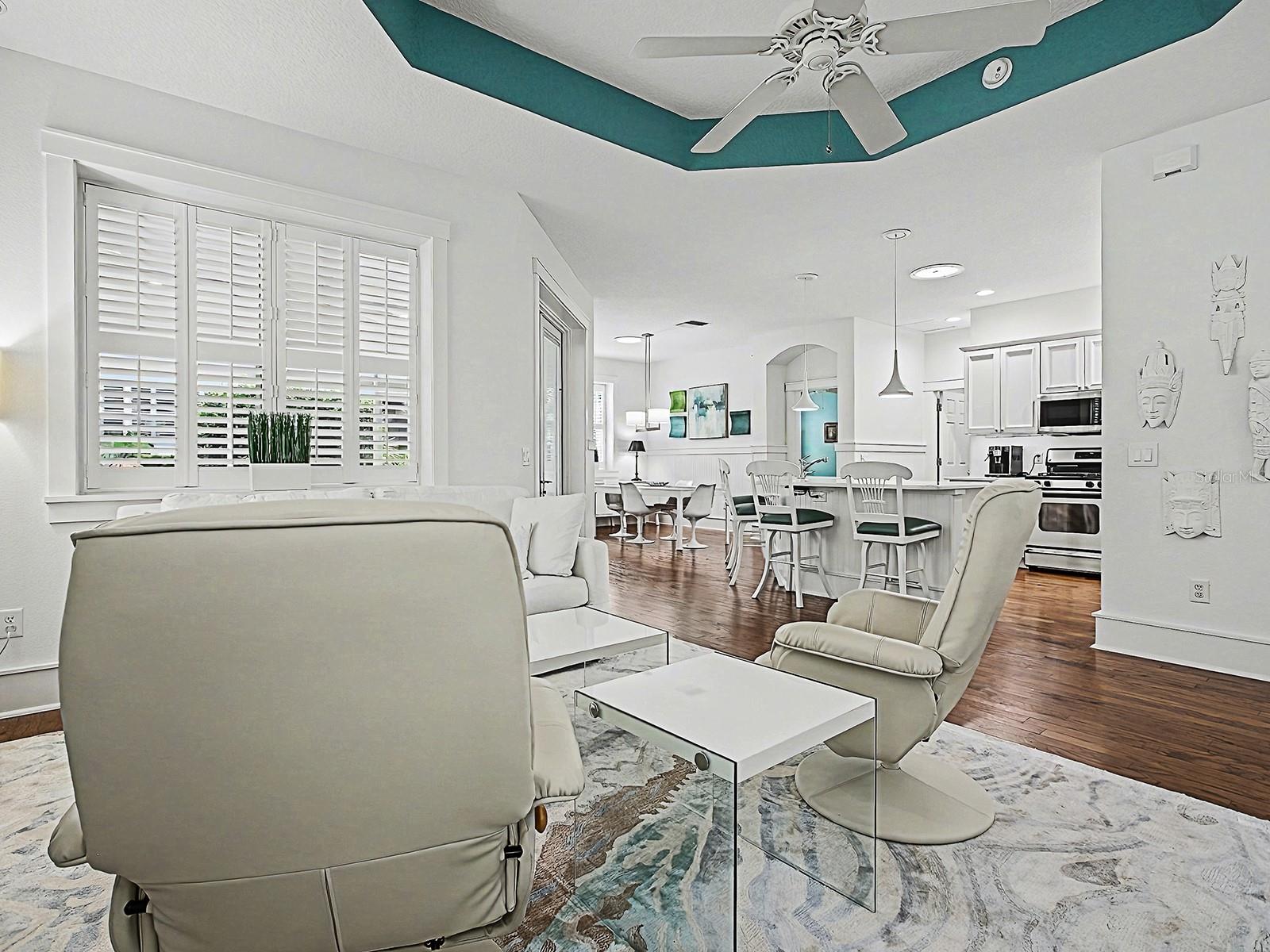 BOND PAID on this CHARMING, UPGRADED 3/2 COTTAGE with NEW 2024 ROOF and HVAC, and newer 2019 HOT WATER HEATER! Located in the LAKE SHORE COTTAGES, perfectly positioned next to the most desirable and vibrant town square, LAKE SUMTER LANDING! The beautifully landscaped grounds create an inviting setting with the freshly painted HARDIE PLANK exterior, concrete stamped front porch and new glass front door with transom. LIGHT and BRIGHT the home immediately impresses with HARDWOOD FLOORING, PLANTATION SHUTTERS throughout, beadboard accents, and chair rails that add timeless, cozy appeal. The light-filled living room features a TRAY ceiling and French doors with built-in blinds, opening to a newly screened BACK PORCH offering a PRIVATE and “park-like” setting - an ideal space for relaxing or entertaining. An open floor plan connects the living area to the bright kitchen, complete with WHITE cabinetry, pull out drawers, pot drawers, new Cambria QUARTZ countertops, STAINLESS appliances, offering a GAS stove, a newer KitchenAid refrigerator and microwave, two pantries for ample storage, a SOLAR TUBE for natural lighting, and a breakfast bar with pendant lighting. The spacious dining room has 2 large windows and a solar tube and easy access to the kitchen. The guest accommodations are flexible and thoughtfully designed, including a front guest room with a queen-size Murphy bed and the 2nd guest room, currently used as an office, but also has a large closet. The guest bath features new Cambria quartz countertops and a tub/shower combination. The PRIMARY SUITE offers a walk-in closet and a well-appointed EN-SUITE BATH with dual vanities, subway-tiled shower with new FRAMELESS glass door, private toilet room with pocket door, and UPDATED finishes. Additional highlights include a spacious TWO-CAR garage with painted flooring, whole-house FILTRATION system, SOLAR TUBES, new rain gutters with leaf guards, newer garage door motor and rollers, and pull-down attic stairs. Nestled beside the community’s most beloved town square, this charming cottage blends timeless design, thoughtful updates, and a truly special location. This unique neighborhood also has its own community pool - a great place to see your neighbors and make new friends. And so convenient for shopping, dining, recreation, and entertainment! COME EXPERIENCE THIS AMAZING HOME AND VILLAGE!
