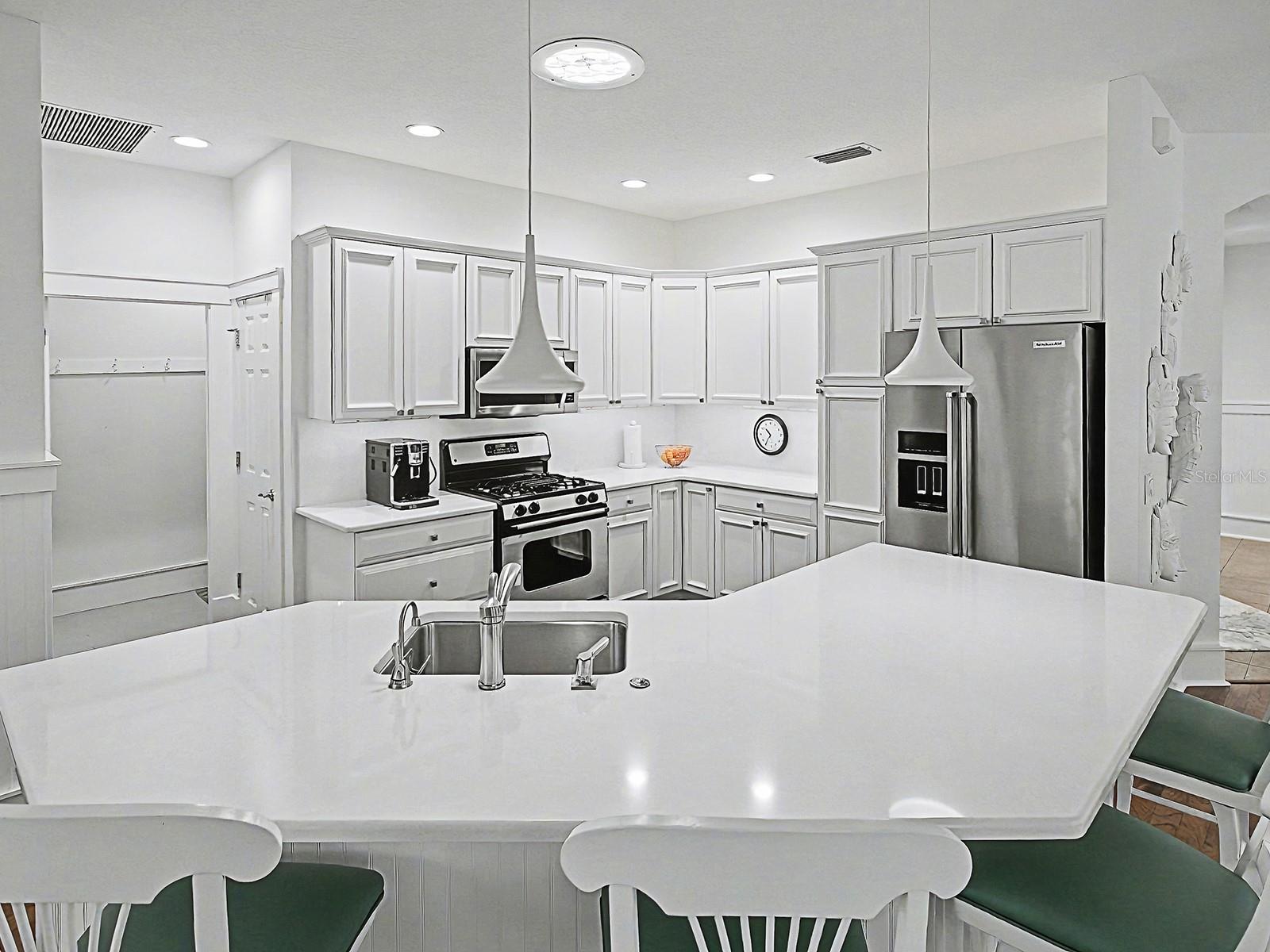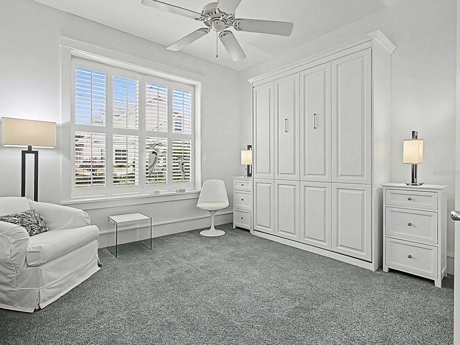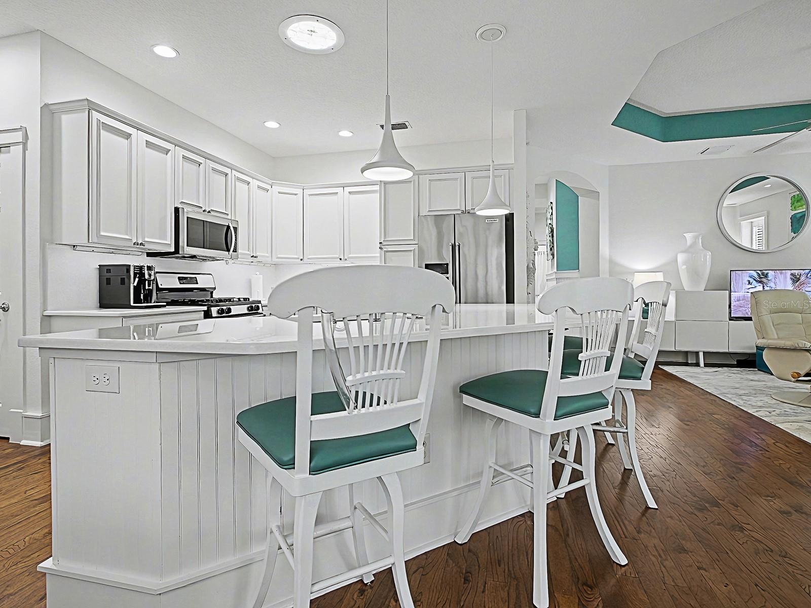 BOND PAID on this CHARMING, UPGRADED 3/2 COTTAGE with NEW 2024 ROOF and HVAC, and newer 2019 HOT WATER HEATER! Located in the LAKE SHORE COTTAGES, perfectly positioned next to the most desirable and vibrant town square, LAKE SUMTER LANDING! The beautifully landscaped grounds create an inviting setting with the freshly painted HARDIE PLANK exterior, concrete stamped front porch and new glass front door with transom. LIGHT and BRIGHT the home immediately impresses with HARDWOOD FLOORING, PLANTATION SHUTTERS throughout, beadboard accents, and chair rails that add timeless, cozy appeal. The light-filled living room features a TRAY ceiling and French doors with built-in blinds, opening to a newly screened BACK PORCH offering a PRIVATE and “park-like” setting - an ideal space for relaxing or entertaining. An open floor plan connects the living area to the bright kitchen, complete with WHITE cabinetry, pull out drawers, pot drawers, new Cambria QUARTZ countertops, STAINLESS appliances, offering a GAS stove, a newer KitchenAid refrigerator and microwave, two pantries for ample storage, a SOLAR TUBE for natural lighting, and a breakfast bar with pendant lighting. The spacious dining room has 2 large windows and a solar tube and easy access to the kitchen. The guest accommodations are flexible and thoughtfully designed, including a front guest room with a queen-size Murphy bed and the 2nd guest room, currently used as an office, but also has a large closet. The guest bath features new Cambria quartz countertops and a tub/shower combination. The PRIMARY SUITE offers a walk-in closet and a well-appointed EN-SUITE BATH with dual vanities, subway-tiled shower with new FRAMELESS glass door, private toilet room with pocket door, and UPDATED finishes. Additional highlights include a spacious TWO-CAR garage with painted flooring, whole-house FILTRATION system, SOLAR TUBES, new rain gutters with leaf guards, newer garage door motor and rollers, and pull-down attic stairs. Nestled beside the community’s most beloved town square, this charming cottage blends timeless design, thoughtful updates, and a truly special location. This unique neighborhood also has its own community pool - a great place to see your neighbors and make new friends. And so convenient for shopping, dining, recreation, and entertainment! COME EXPERIENCE THIS AMAZING HOME AND VILLAGE!