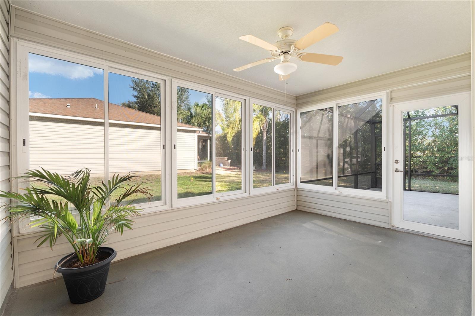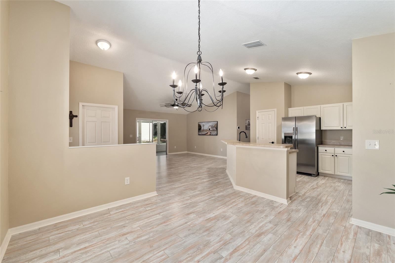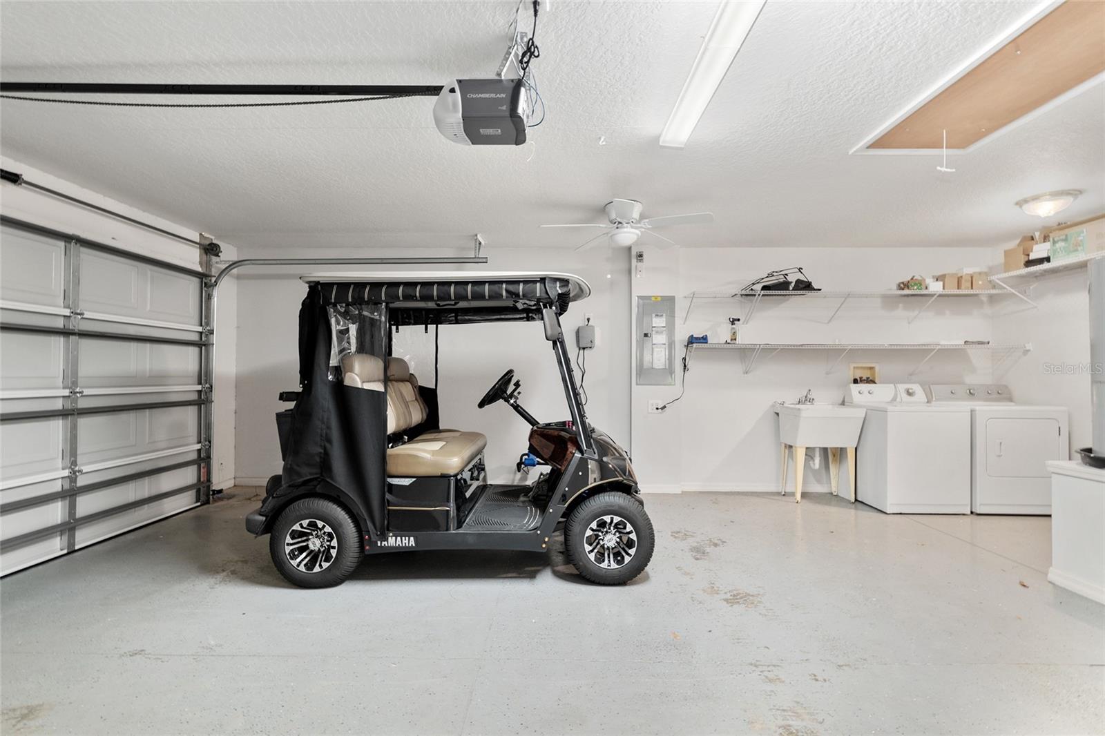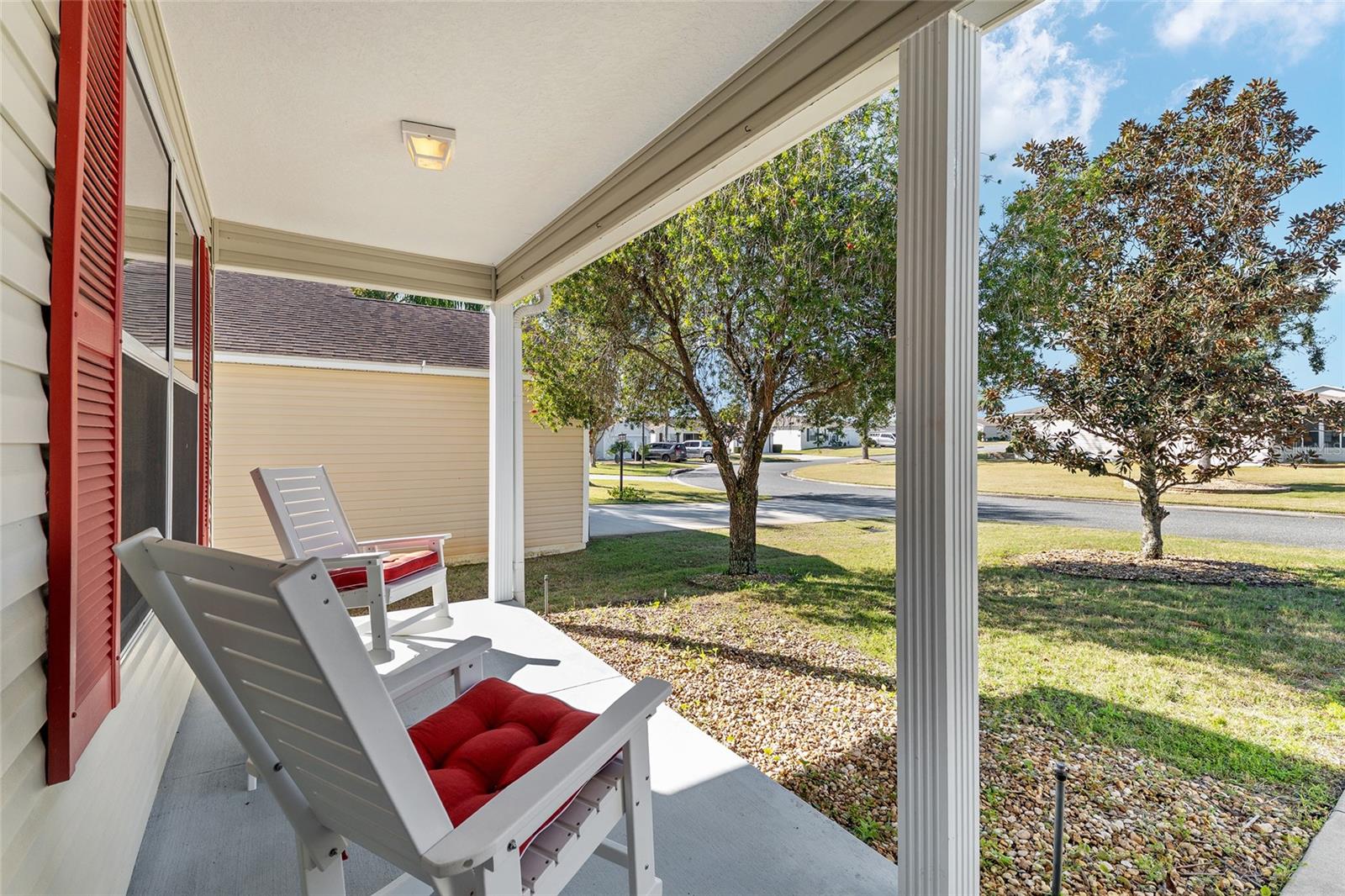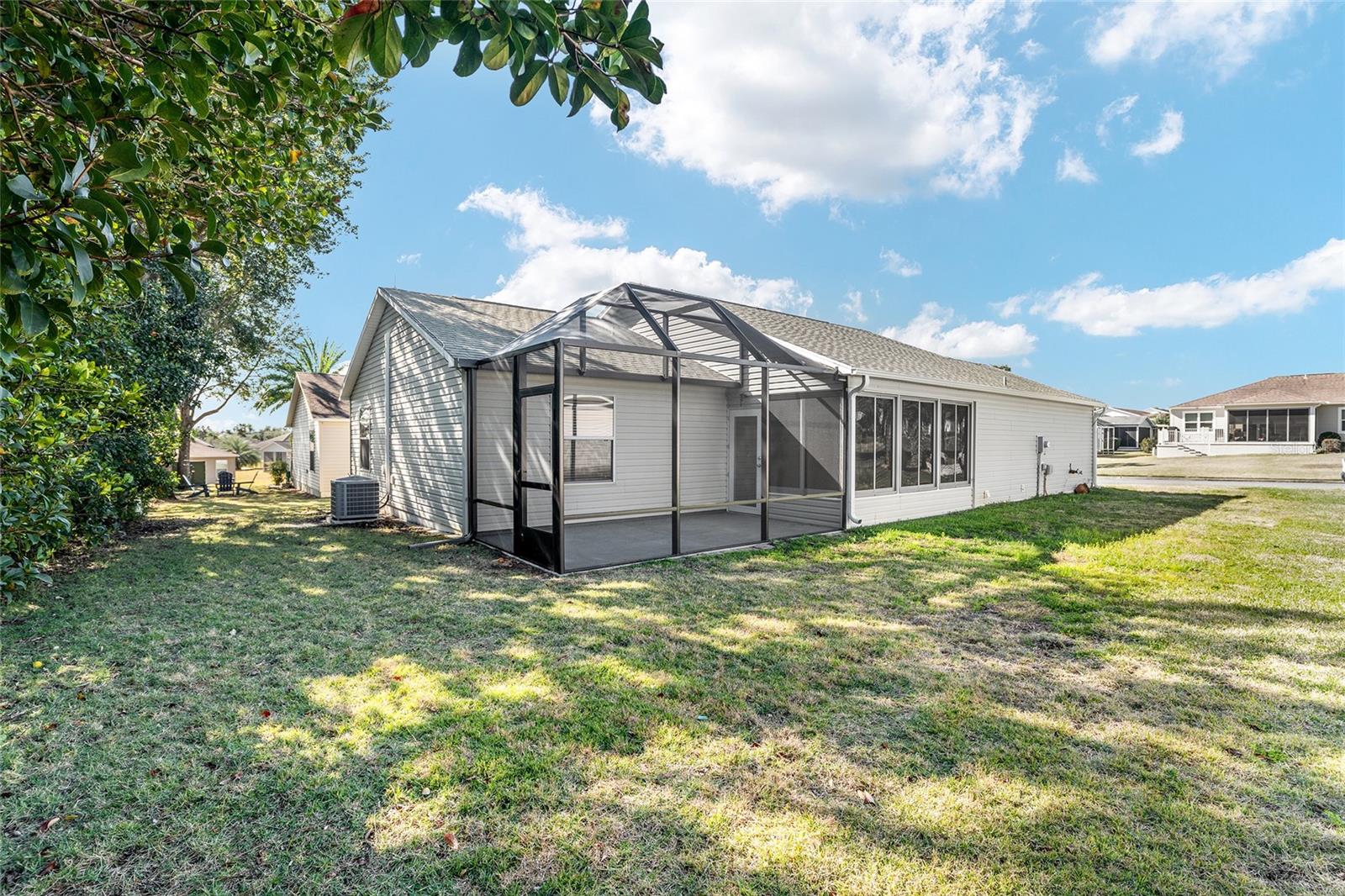BOND PAID! 2017 GAS Golf Cart INCLUDED! High Ceilings & Open Floorplan on this RARE & CHARMING 2 Bed/ 2 Bath "GETAWAY" Model in The VILLAGE OF AMELIA. Great Curb Appeal with Covered Front Porch & FULL 2 CAR GARAGE! Privacy with NO REAR NEIGHBORS! Oversized Lot with 20'+ on side with room for Garage Expansion/Pool. GLASS ENCLOSED Lanai. NEW SS Appliances/2025. NEW Birdcage/2025. NEW Garage Door/2025. NEW Gutters/2025. NEW Paint/2025. NEW Hot Water Heater/2026. NEW Kitchen Granite Sink & Faucet. Under Cabinet Lighting. Updated Lighting/Ceiling Fans/2025. NO CARPET! NEW Garage Pull Down Attic Access Stairs with Decking for Storage. Excellent Location "Between The 6's" and close to 466A Shopping/Restaurants/Golf & More! 2017 Yamaha QuietTech Gas Golf Cart INCLUDED! Golf Cart has New Tires & All New Curtains. NEW 2025 Kobalt Battery Lawn Mower Included. Decor items as shown also included. Cart was purchased 2025 for $7800 from One Stop Golf Carts in The Villages. HVAC/2024. ROOF & Lightning Rods/2016. Bond Paid.