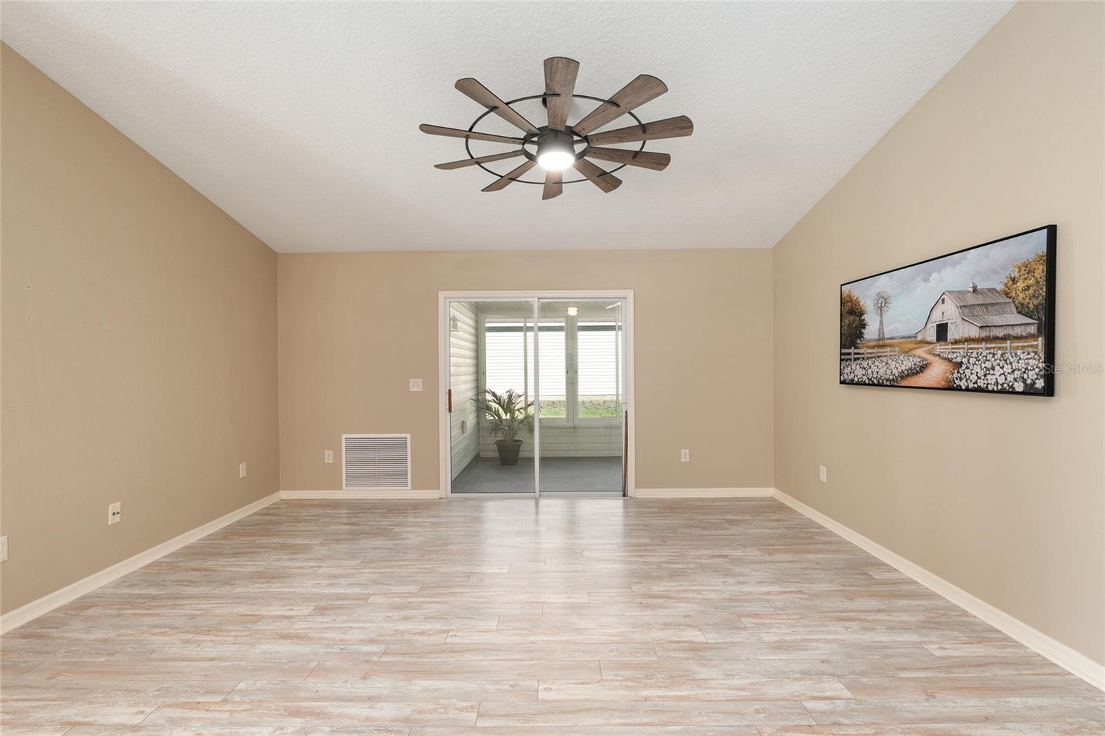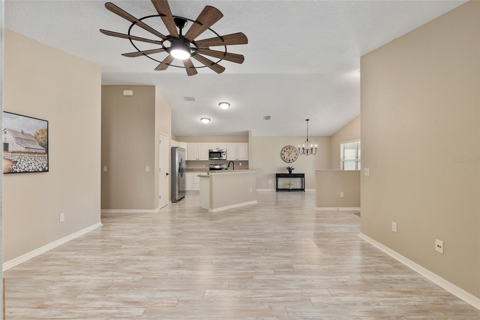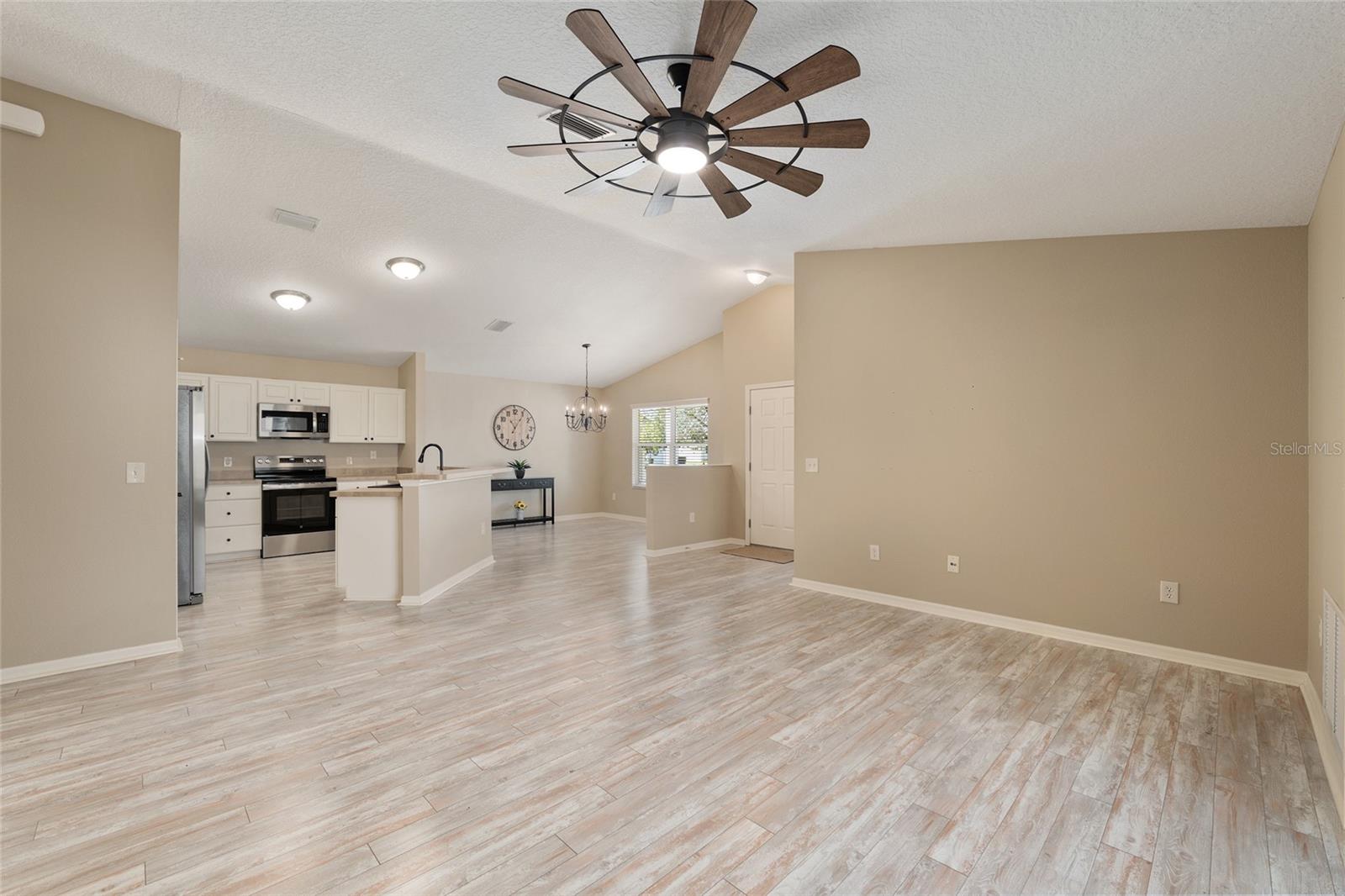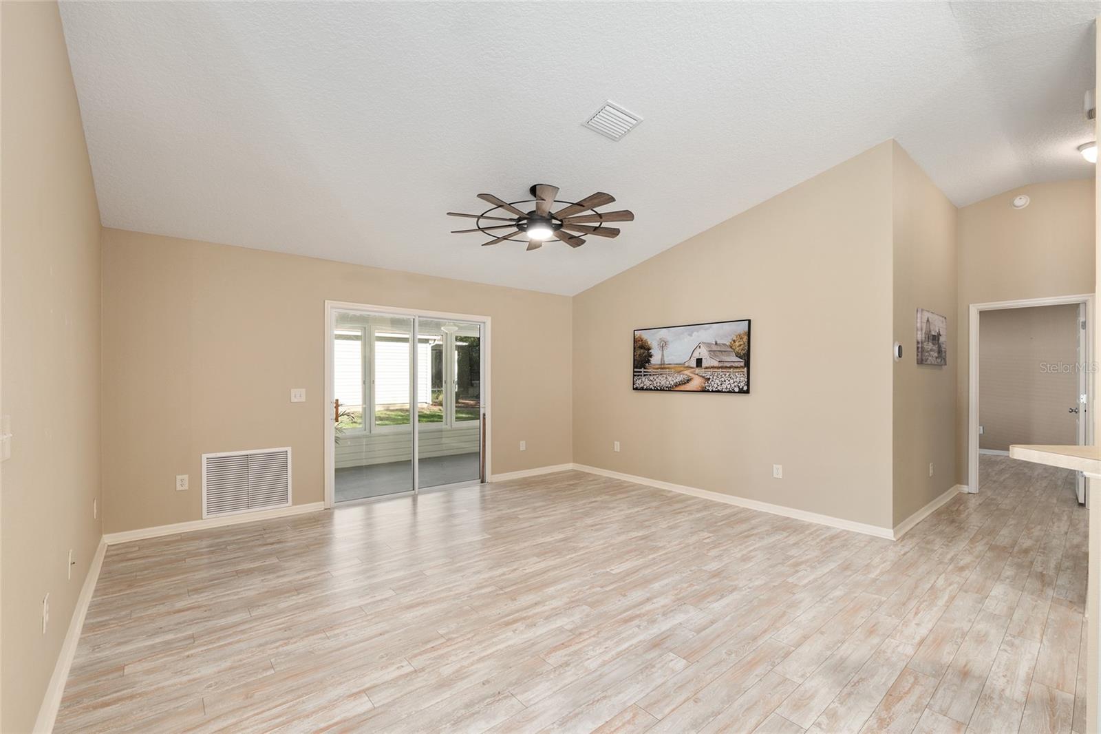 BOND PAID! 2017 GAS Golf Cart INCLUDED! High Ceilings & Open Floorplan on this RARE & CHARMING 2 Bed/ 2 Bath "GETAWAY" Model in The VILLAGE OF AMELIA. Great Curb Appeal with Covered Front Porch & FULL 2 CAR GARAGE! Privacy with NO REAR NEIGHBORS! Oversized Lot with 20'+ on side with room for Garage Expansion/Pool. GLASS ENCLOSED Lanai. NEW SS Appliances/2025. NEW Birdcage/2025. NEW Garage Door/2025. NEW Gutters/2025. NEW Paint/2025. NEW Hot Water Heater/2026. NEW Kitchen Granite Sink & Faucet. Under Cabinet Lighting. Updated Lighting/Ceiling Fans/2025. NO CARPET! NEW Garage Pull Down Attic Access Stairs with Decking for Storage. Excellent Location "Between The 6's" and close to 466A Shopping/Restaurants/Golf & More! 2017 Yamaha QuietTech Gas Golf Cart INCLUDED! Golf Cart has New Tires & All New Curtains. NEW 2025 Kobalt Battery Lawn Mower Included. Decor items as shown also included. Cart was purchased 2025 for $7800 from One Stop Golf Carts in The Villages. HVAC/2024. ROOF & Lightning Rods/2016. Bond Paid.
