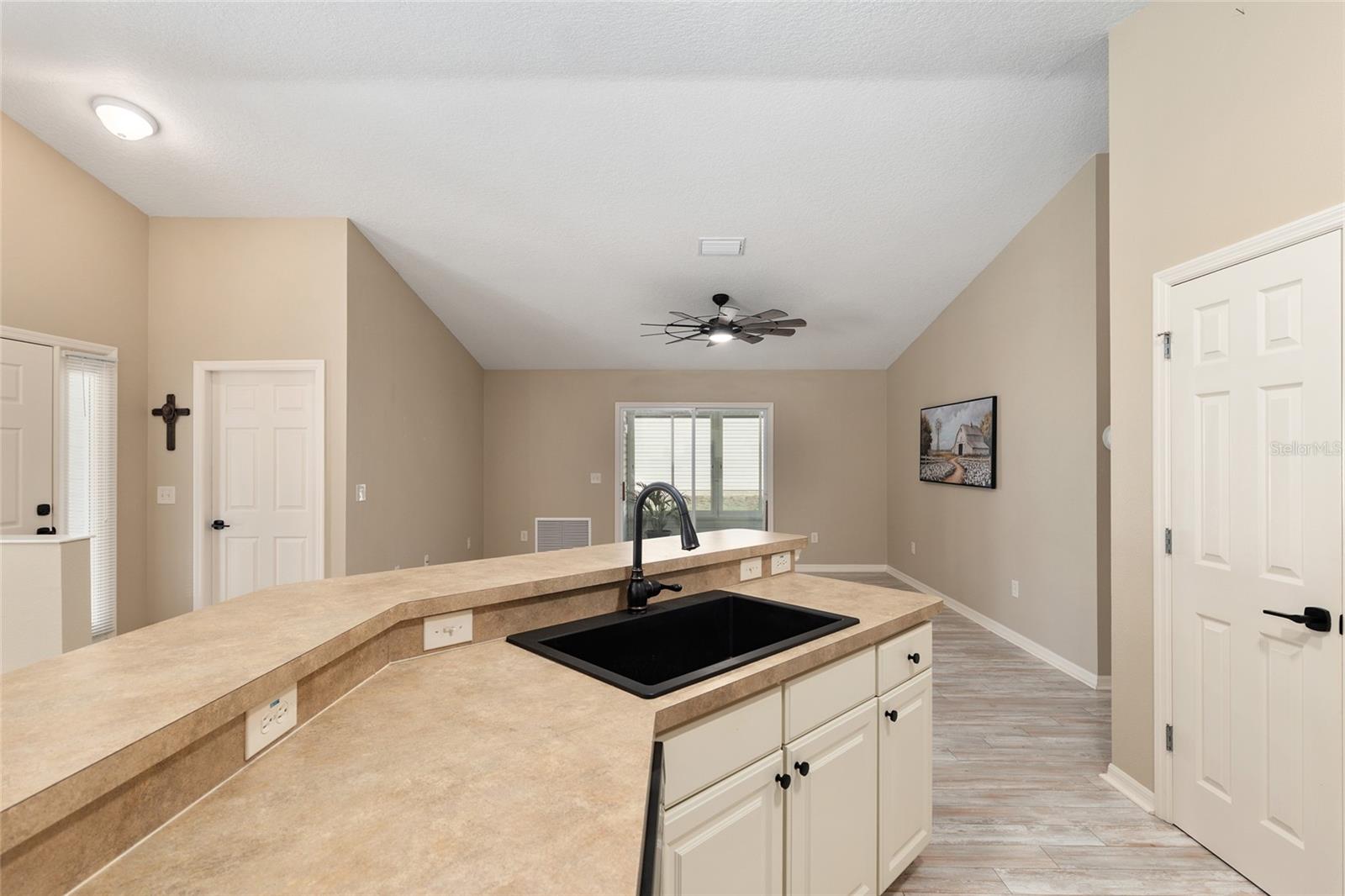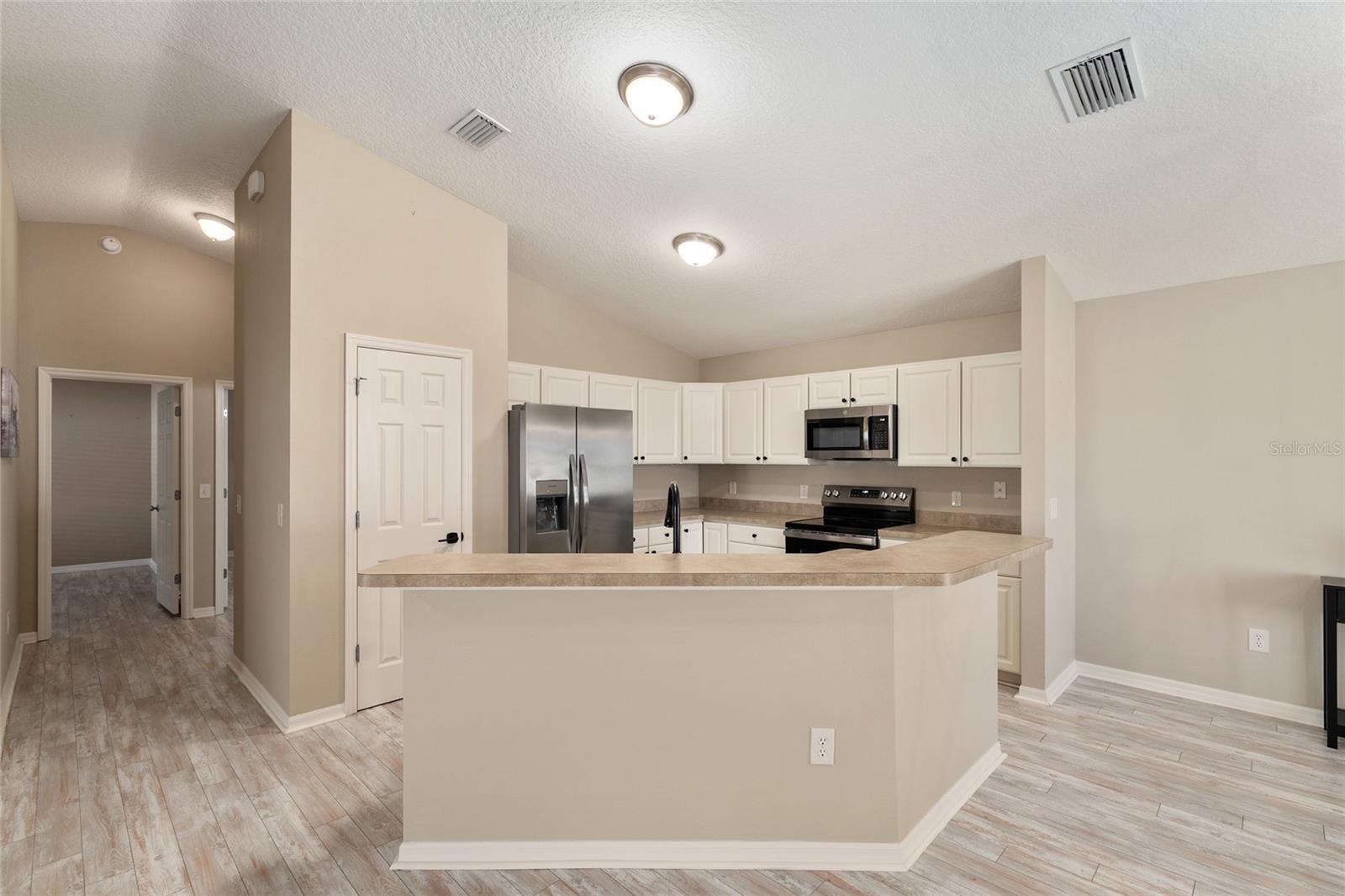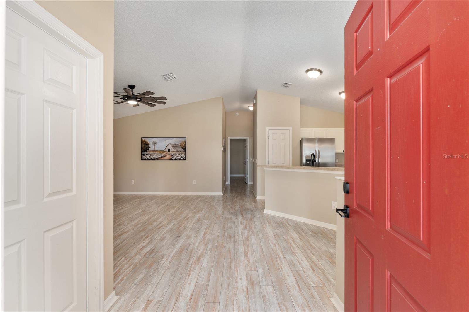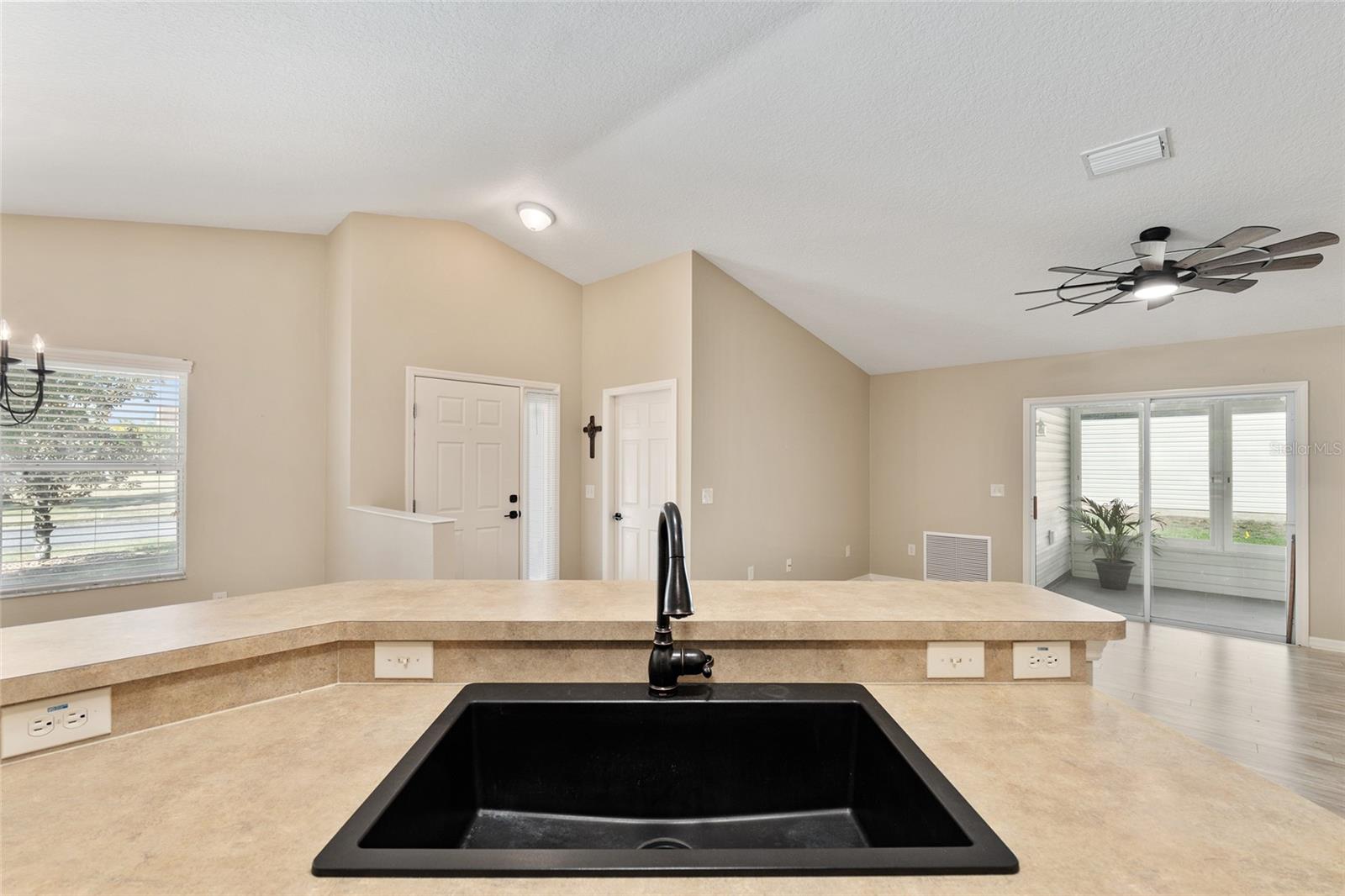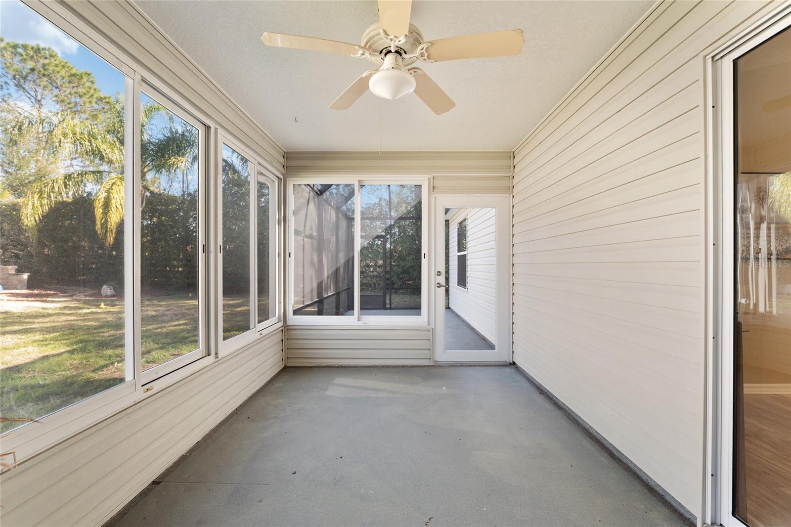 BOND PAID! 2017 GAS Golf Cart INCLUDED! High Ceilings & Open Floorplan on this RARE & CHARMING 2 Bed/ 2 Bath "GETAWAY" Model in The VILLAGE OF AMELIA. Great Curb Appeal with Covered Front Porch & FULL 2 CAR GARAGE! Privacy with NO REAR NEIGHBORS! Oversized Lot with 20'+ on side with room for Garage Expansion/Pool. GLASS ENCLOSED Lanai. NEW SS Appliances/2025. NEW Birdcage/2025. NEW Garage Door/2025. NEW Gutters/2025. NEW Paint/2025. NEW Hot Water Heater/2026. NEW Kitchen Granite Sink & Faucet. Under Cabinet Lighting. Updated Lighting/Ceiling Fans/2025. NO CARPET! NEW Garage Pull Down Attic Access Stairs with Decking for Storage. Excellent Location "Between The 6's" and close to 466A Shopping/Restaurants/Golf & More! 2017 Yamaha QuietTech Gas Golf Cart INCLUDED! Golf Cart has New Tires & All New Curtains. NEW 2025 Kobalt Battery Lawn Mower Included. Decor items as shown also included. Cart was purchased 2025 for $7800 from One Stop Golf Carts in The Villages. HVAC/2024. ROOF & Lightning Rods/2016. Bond Paid.