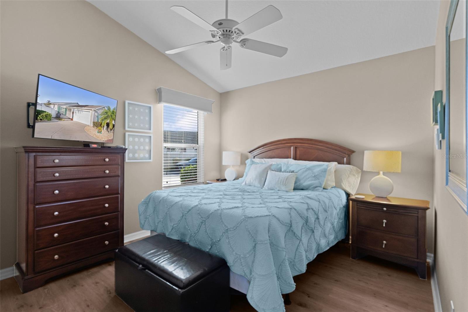 Welcome home to this pristine 2-bedroom, 2-bath “Marathon” courtyard villa located in the highly desirable Village of Pennecamp. This home is being sold fully furnished/turnkey, featuring high-quality furnishings, and has been gently lived in and meticulously maintained. This property is well suited for full-time living or investment purposes, offering low-maintenance landscaping with no grass. Enjoy a prime location just minutes from Lake Sumter Landing, known for live entertainment seven nights a week, along with abundant dining, shopping, and entertainment options. With seven golf courses nearby, you’ll be spoiled for choice, and Cane Garden Country Club is just around the corner for a quick bite or social gathering. Interior upgrades include maple kitchen cabinets, a stylish kitchen backsplash, luxury vinyl plank flooring throughout (no carpet), soaring ceilings, and upgraded light fixtures. The enclosed lanai expands your living space, while color-coated concrete on the walkways and garage floor adds durability and curb appeal. The garage includes a Murphy bed, providing convenient extra lodging for guests. The private, north-facing backyard offers complete privacy—perfect for relaxing or entertaining. Located within walking distance to the pool and close to the shopping and medical facilities along 466 and 466A, this villa truly offers both convenience and comfort. Situated in a friendly and social neighborhood, this home offers an excellent opportunity to enjoy the lifestyle and amenities The Villages is known for.