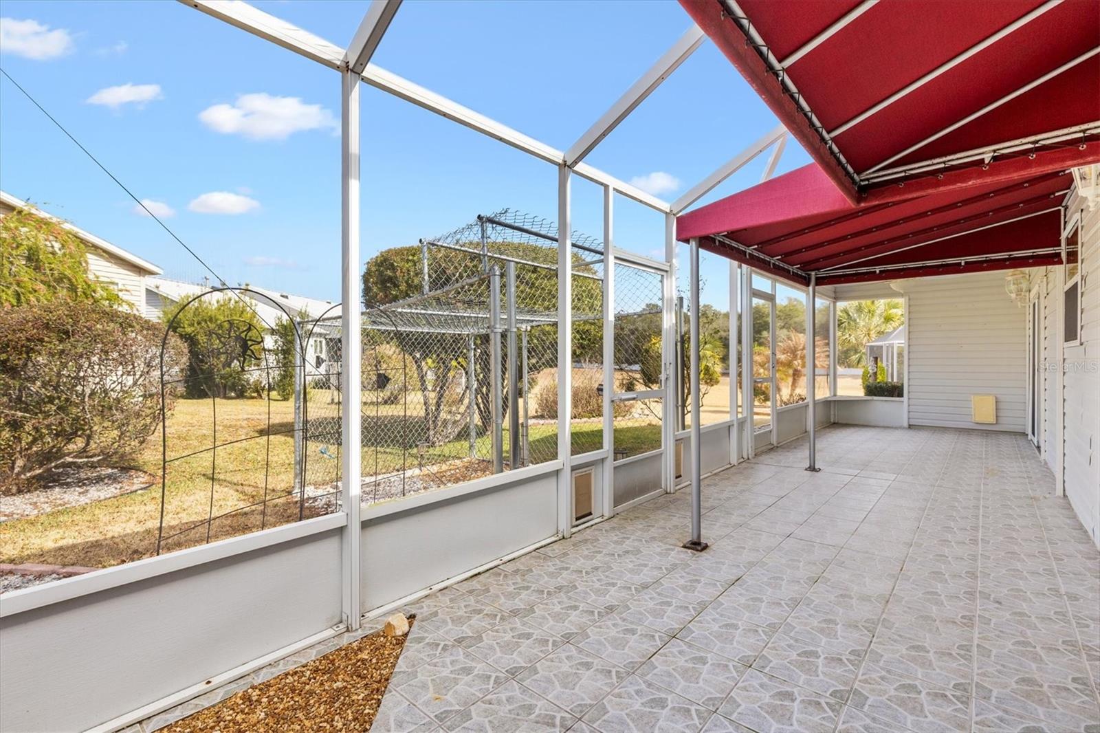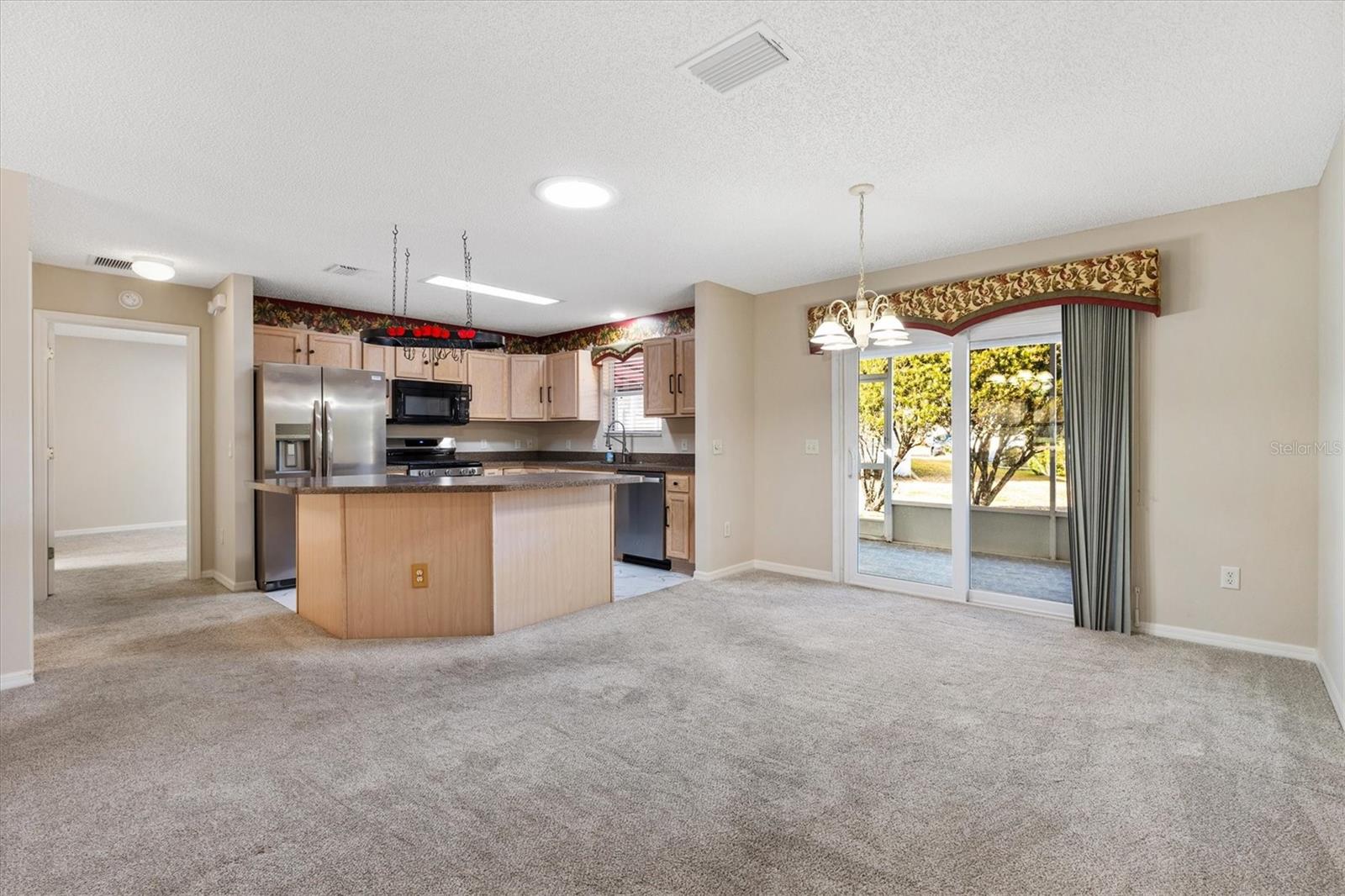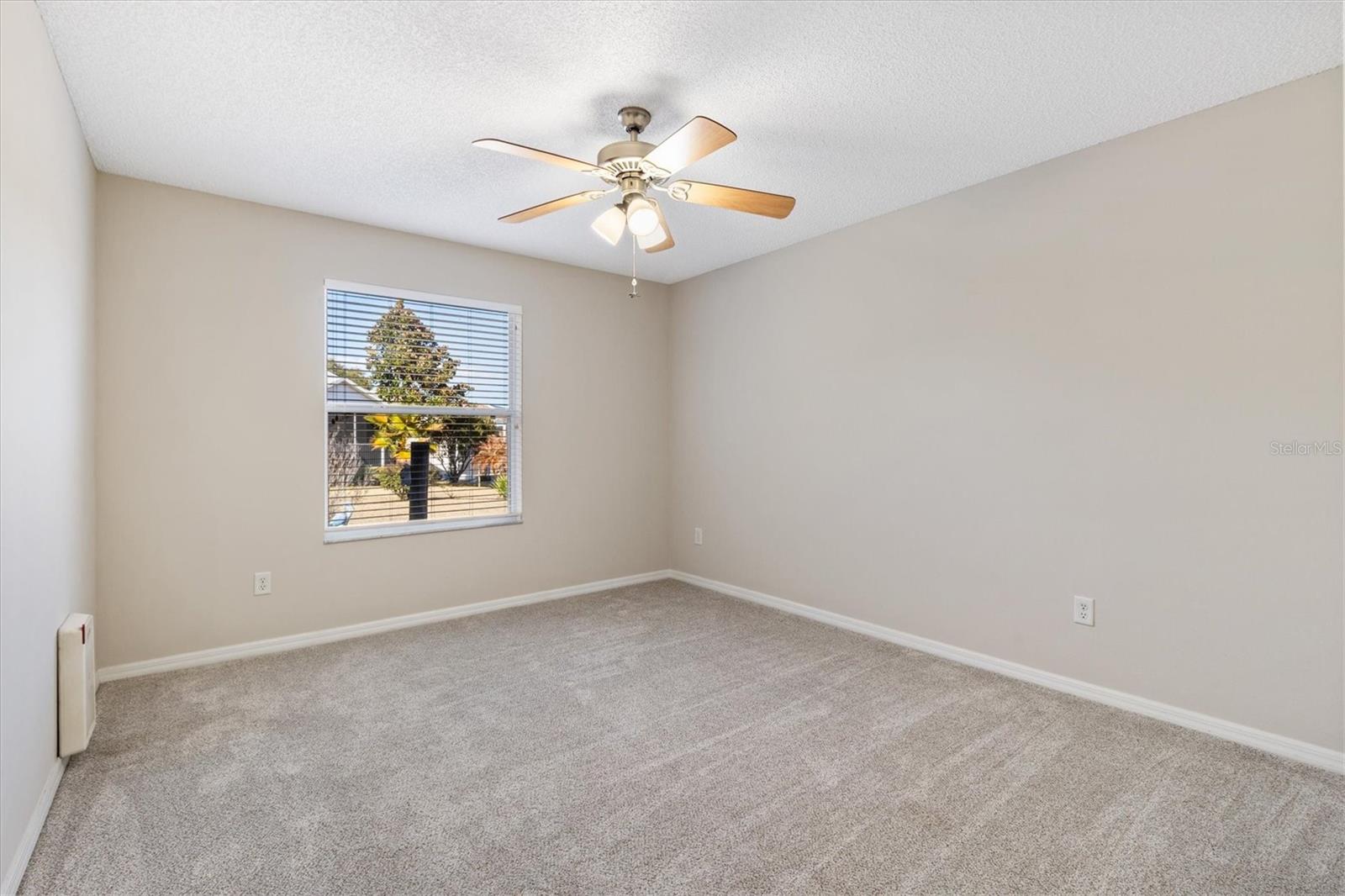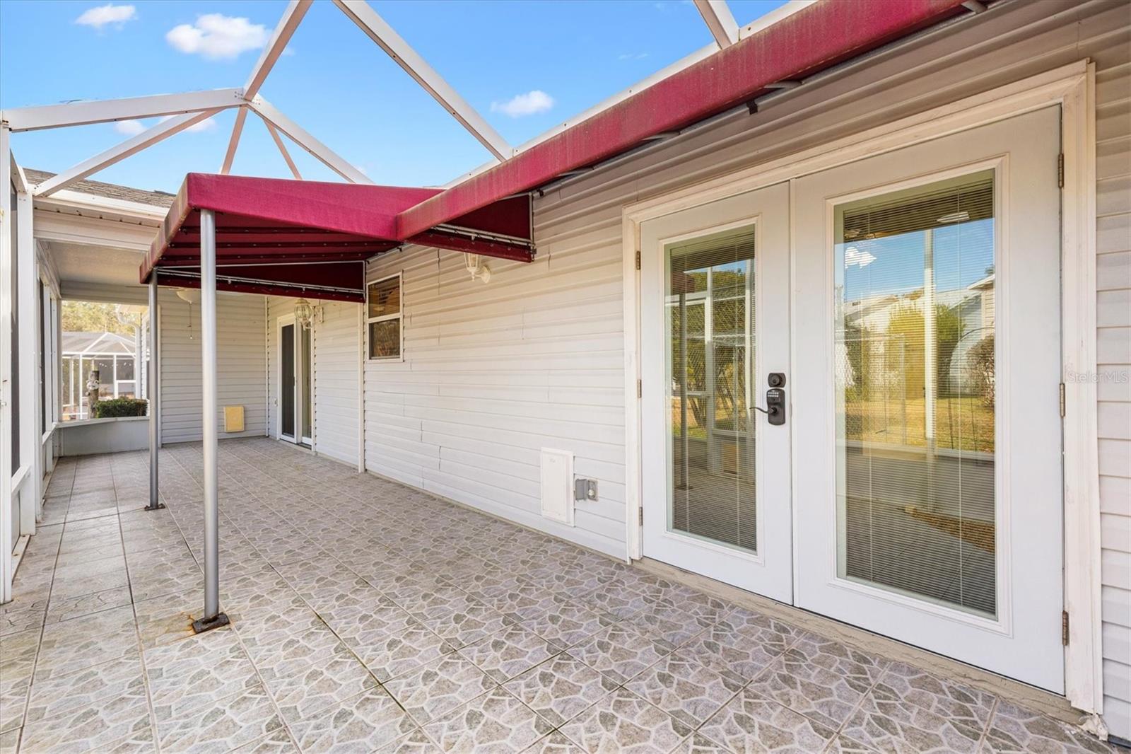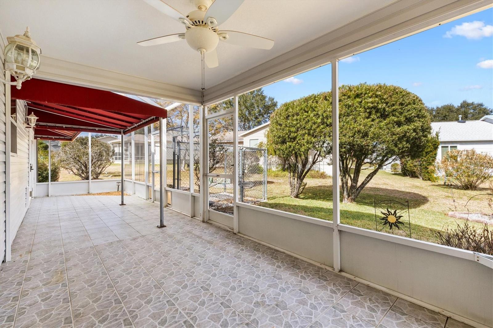 3/2 Amarillo model home in the Village of Woodbury! Located on a quiet cul-de-sac, this home is surrounded by mature landscaping and features a charming covered front porch. Enjoy significant savings on your electric bill with solar panels, reducing costs to just $20-$30 each month. Solar Panels are PAID IN FULL! Roof 2022, HWH 2022, HVAC 2018, and new carpet 2023. Freshly Painted. The open, split floor plan includes an open kitchen with island, gas stove with griddle, plenty of cabinets, a window overlooking the outdoors and easy flow to the living and dining areas. Sliding glass doors open to a covered lanai with an attached birdcage, complete with awnings and attached pet cage with chain link roof—perfect for relaxing or entertaining year-round. The primary suite is enhanced by solar tubes for added natural light, a walk-in closet with built in shelves, and an ensuite bath with walk-in shower with built in bench and make up vanity area, plus French doors with inset blinds to the birdcage. The guest bedrooms share a bath with a tub/shower combo. Additional features include a convenient inside laundry room with pantry closets, solar tubes that brighten the dining room and garage, an attic stair kit, water filtration system, Ring doorbell and front awnings that enhance curb appeal. The Springdale Fitness & Community Pool is just 3 minutes away! The Mulberry Grove Regional Rec Center is just over a mile away and has a sports pool, meeting rooms and an activity center. The Nancy Lopez Golf and Country Club for enjoying the country club for golf, dining and the country club pool is just 2 miles away. You’ll be minutes to shopping, dining and entertainment via car or a golf cart! Watch our video and make your appointment to see this house today so you can start living The Villages Dream!