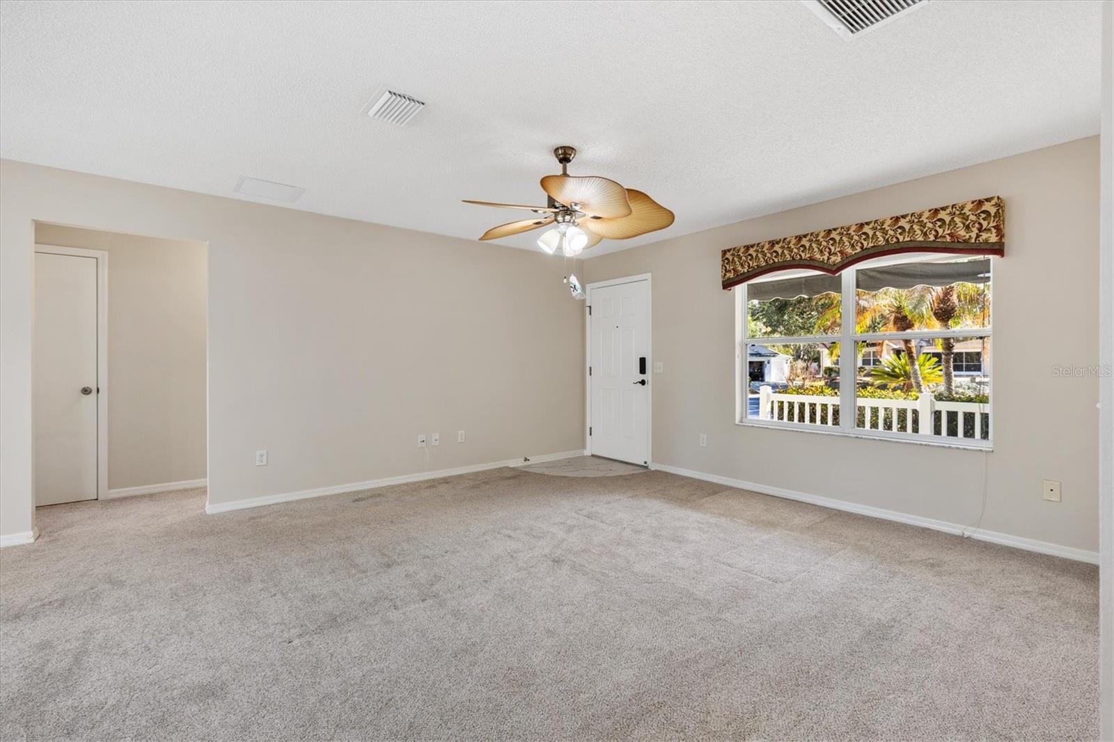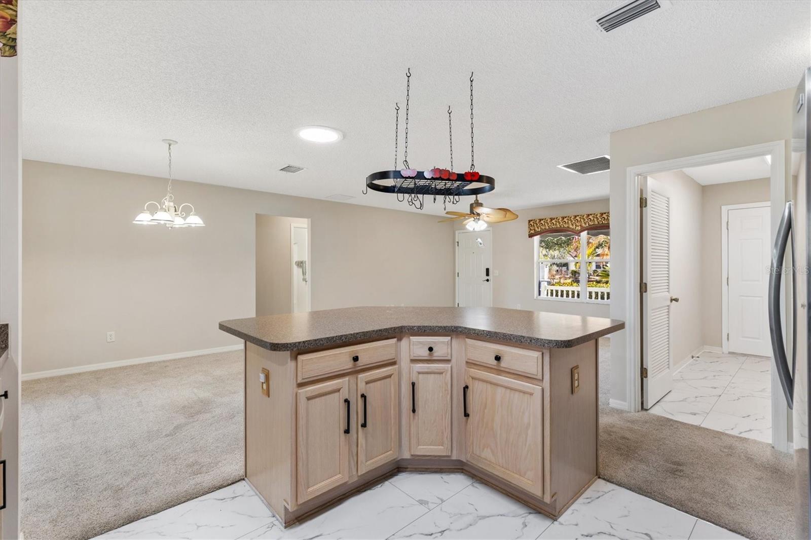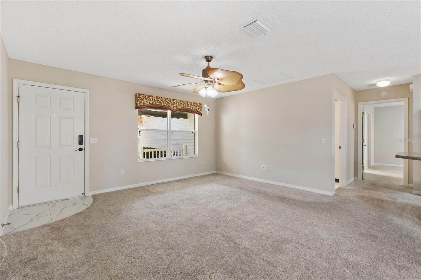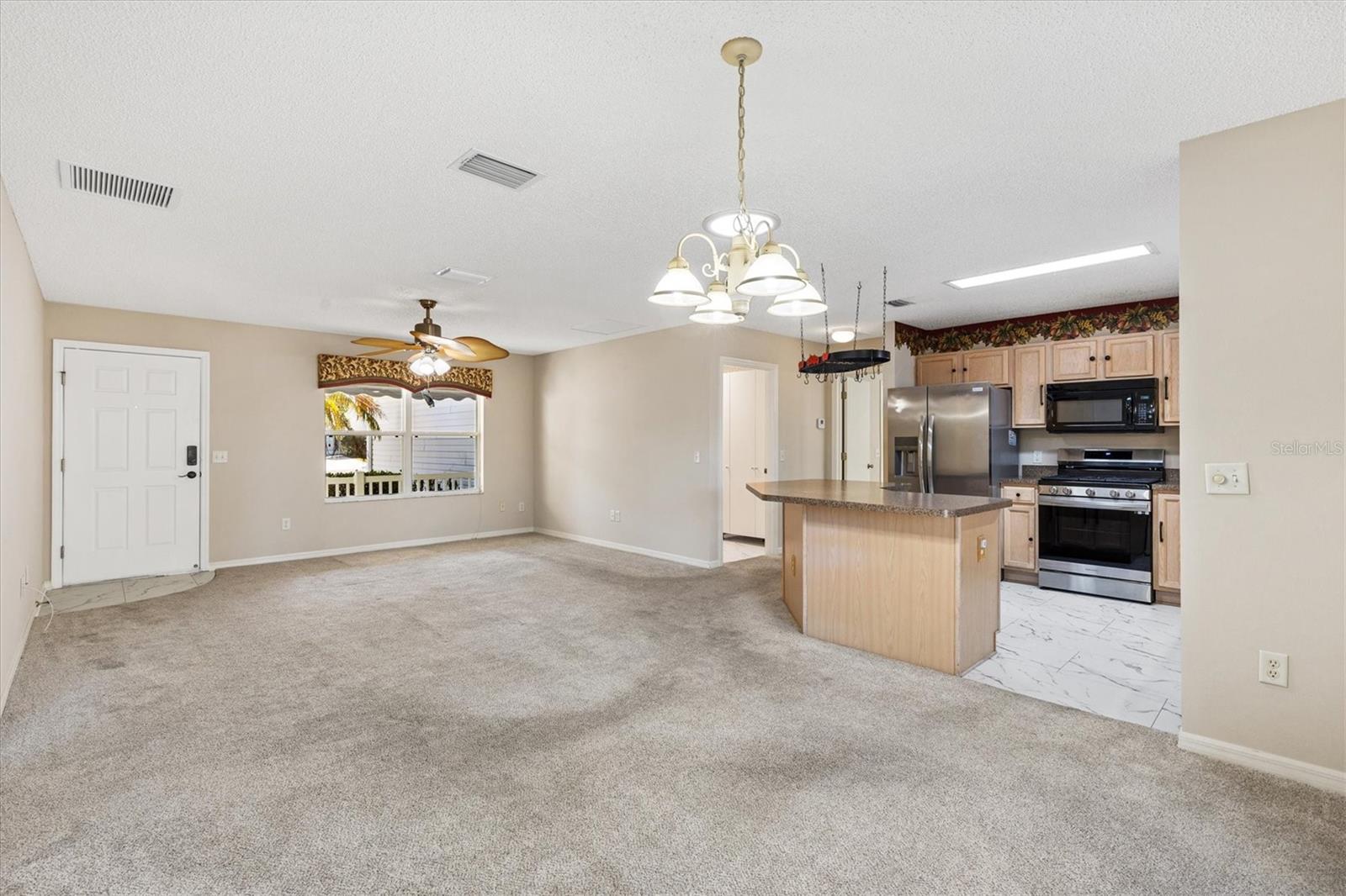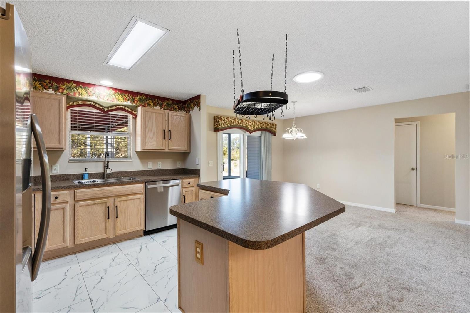 3/2 Amarillo model home in the Village of Woodbury! Located on a quiet cul-de-sac, this home is surrounded by mature landscaping and features a charming covered front porch. Enjoy significant savings on your electric bill with solar panels, reducing costs to just $20-$30 each month. Solar Panels are PAID IN FULL! Roof 2022, HWH 2022, HVAC 2018, and new carpet 2023. Freshly Painted. The open, split floor plan includes an open kitchen with island, gas stove with griddle, plenty of cabinets, a window overlooking the outdoors and easy flow to the living and dining areas. Sliding glass doors open to a covered lanai with an attached birdcage, complete with awnings and attached pet cage with chain link roof—perfect for relaxing or entertaining year-round. The primary suite is enhanced by solar tubes for added natural light, a walk-in closet with built in shelves, and an ensuite bath with walk-in shower with built in bench and make up vanity area, plus French doors with inset blinds to the birdcage. The guest bedrooms share a bath with a tub/shower combo. Additional features include a convenient inside laundry room with pantry closets, solar tubes that brighten the dining room and garage, an attic stair kit, water filtration system, Ring doorbell and front awnings that enhance curb appeal. The Springdale Fitness & Community Pool is just 3 minutes away! The Mulberry Grove Regional Rec Center is just over a mile away and has a sports pool, meeting rooms and an activity center. The Nancy Lopez Golf and Country Club for enjoying the country club for golf, dining and the country club pool is just 2 miles away. You’ll be minutes to shopping, dining and entertainment via car or a golf cart! Watch our video and make your appointment to see this house today so you can start living The Villages Dream!