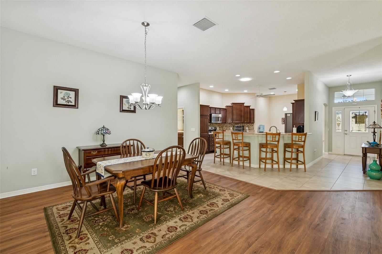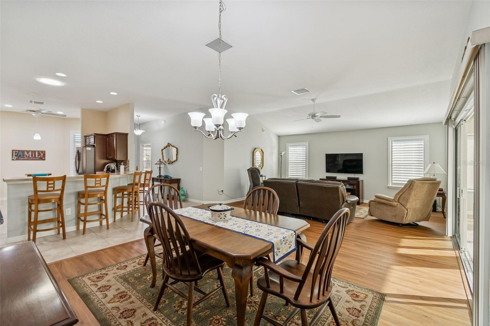 The Village of Sanibel , one of the most desirable areas in The Villages! Welcome to this STUNNING 3-bedroom, 2-bath home featuring an impressive 2-CAR PLUS GOLF CART GARAGE all set with in one of the most desirable floor plans. just minutes away from championship Golf, Lake Sumter Landing, Brownwood Square, recreation centers, pools and Bonifay Country Club (great for dinning). This Home offers an open concept layout with abundant natural light with multiple Sun Tubes that also include night lights. The open-concept kitchen is both stylish and functional, boasting STAINLESS STEEL APPLIANCES, upgraded cabinetry with pull out shelves and build in pantry— An EAT-IN BREAKFAST AREA completes this ideal kitchen for everyday living and hosting guests. The spacious primary suite serves as a private retreat with Tray Ceiling and double walk-in closets, adding to this a luxurious ensuite bathroom featuring a beautiful, oversized WALK IN TILED SHOWER. This home is loaded upgrades, including a whole-home water filtration system, PLANTATION SHUTTERS and most of all a fully finished FLORIDA ROOM with Tile floor, ceiling fans, drywall, real double pane windows and FULLY OPENING sliders that open this room to the living room and dinning room making a massive open area connecting the Living room, dinning room and Florida room all together. You will find TILE and LAMINATE flooring throughout,(guest bedroom with carpet in great condition.) Natural light is enhanced by a SOLAR tube that fills areas with natural light. The kitchen boasts HIGH-DEFINITION countertops, STAINLESS STEEL appliances, TILE backsplash, cabinet rollouts, and a Cabinet pantry. The Guest bathroom includes a ceramic tile, tile tub/shower combo, upgraded cabinetry, and tall high-definition countertops. The 1st bedroom includes both a custom built in desk and cabinets as well as a double twin bed MURPHY BED with storage perfect for guests and keeping your day to day affairs in order. The laundry room features top-of-the-line front-loading washer and dryer with ample cabinet space for even more storage. Everyone in the villages wants space for the Golf CART so The 2-car plus GOLF CART GARAGE is a very big plus +, let’s not forget the garage door retractable screens! These screens cannot be beat when working on projects in the garage, attic stairs with attic decking for storage is also a big plus and not often found. This home truly has it all, and it’s ready for you. Make this your home and begin to enjoy the lifestyle you are dreaming of! The location is ideal, being close to; CR 466A which provides access to shopping including Colony Plaza and the Walmart Neighborhood Market, dining and medical services. Also close to the Bonifay Country Club, the Captiva Pool and Charlotte Pool as well as numerous Executive Golf Courses Perfectly located just minutes from Brownwood and Lake Sumter Landing Town Squares, Medical Facilities, Shopping, Restaurants and Entertainment with many options for recreation, GOLF courses, pickle-ball, swimming pools and nature! Call today to schedule your private showing and see for yourself why life in The Villages is all about living better, not colder!