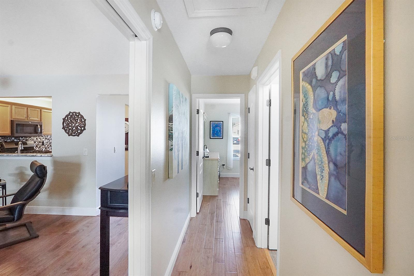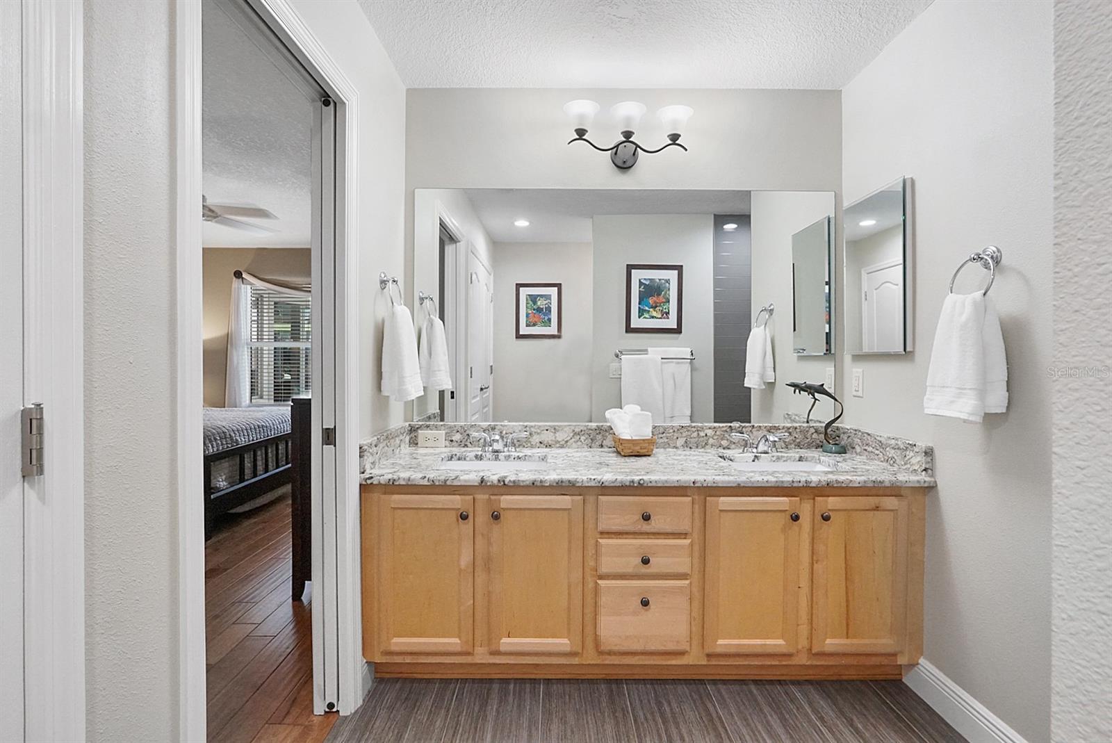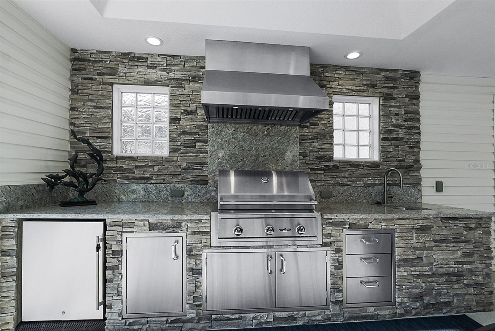 This one of a kind designer home is what many envision when dreaming about retirement! Featuring a 2 car, plus golf cart garage this residence blends intelligent upgrades with resort-style living in one of the most desirable areas near Lake Sumter Landing. The home makes a strong first impression w/ a decorative concrete driveway, enhanced landscaping, & towering palm trees that create exceptional curb appeal. Inside, the home has been professionally painted, contributing to a clean, polished look that allows the architectural details and views to take center stage. A major highlight is the all season glassed-in sunroom, designed w/ Low-E sliding glass windows, pull-down shades, tile flooring, & a dedicated mini-split HVAC system, allowing year round enjoyment of the expansive water views. This space is further enhanced with flush mount speakers, which also extend to the exterior lanai—ideal for entertaining or relaxing with music while enjoying the outdoor setting. The kitchen is both functional and refined, featuring custom pull-out drawers, granite countertops & Blanco granite sink, tile backsplash, & stainless kitchen appliances (2015), including a French door refrigerator & a gas range, a highly sought-after feature for those who enjoy cooking. In 2019, the home underwent a substantial custom addition, elevating it well beyond a typical designer property. Improvements include an expanded laundry room with folding counter, cabinetry, & hanging system, enhanced storage, & a beautifully updated primary suite. The primary bath features dual vanities & a spacious Roman shower with custom tile work, including gray subway tile, creating a spa-like retreat. The living space was extended w/ a tray ceiling and seamlessly connects to the outdoor living area, where a summer kitchen and additional half bath make entertaining effortless. Overlooking the water is the show-stopping 11,500-gallon swimming pool (2019)—solar heated w/ gas backup, auto-fill system, Pentair filtration, & Dolphin robotic cleaner—fully enclosed and positioned to maximize the incredible water views. An additional storage room and thoughtfully designed outdoor spaces reinforce that this home was built to be enjoyed. From a systems standpoint, the home has been meticulously maintained and upgraded, including a new whole-house HVAC system (2016), new roof (2019), new hot water heater (2018), replacement mini-split HVAC for the sunroom (2023), & servicing of the sunroom windows (2023). All house windows were replaced (2024), along w/ interior window blinds, improving energy efficiency. Additional updates include a new Pentair salt cell (2025), new pool enclosure screening (2025), two new garage door openers (2025), & updated smoke and CO2 alarms w/ 10-year batteries (2026). Beyond the home itself, the location offers the perfect balance of convenience & refinement—close to the square, yet positioned to enjoy tranquil water views, established surroundings, & easy golf cart access to dining, shopping, entertainment, & recreation. The home shows like a model, reflecting years of thoughtful care and strategic upgrades. Furnishings are available separately through the owners, allowing the next homeowner the opportunity to move right in or personalize the space. This is not just a home—it is a carefully engineered lifestyle property, offering panoramic water views, exceptional indoor-outdoor living, and a level of quality rarely found.