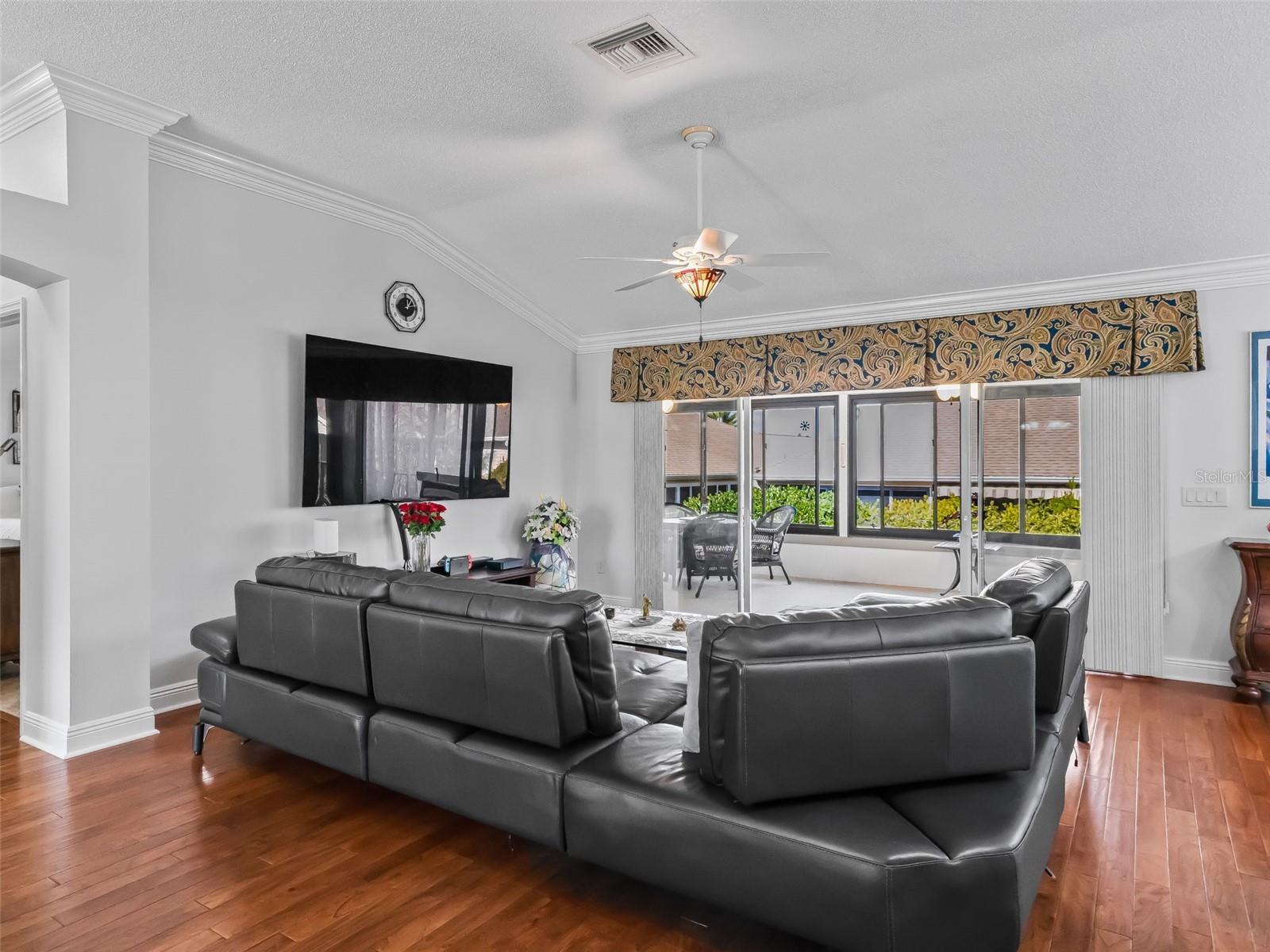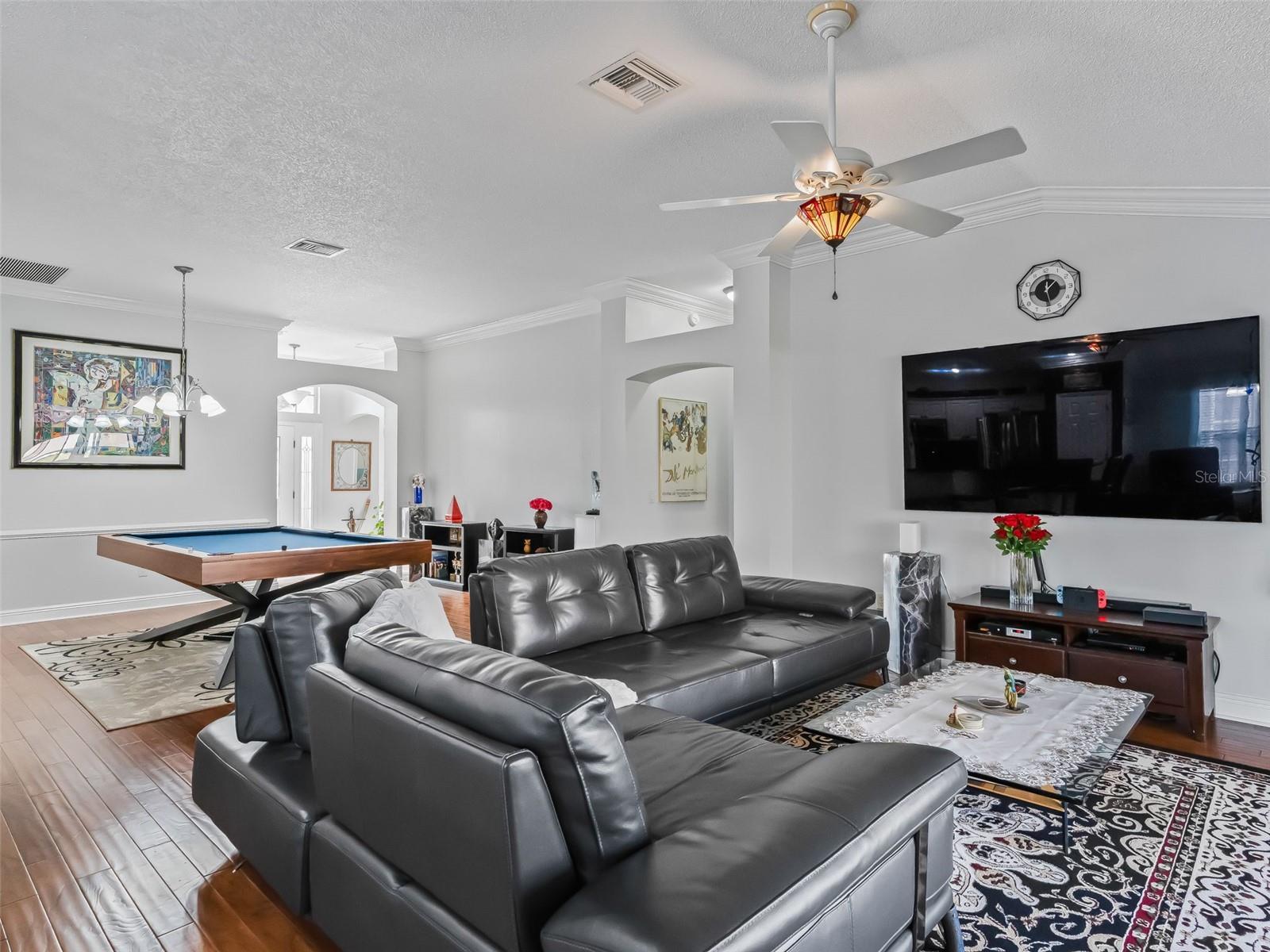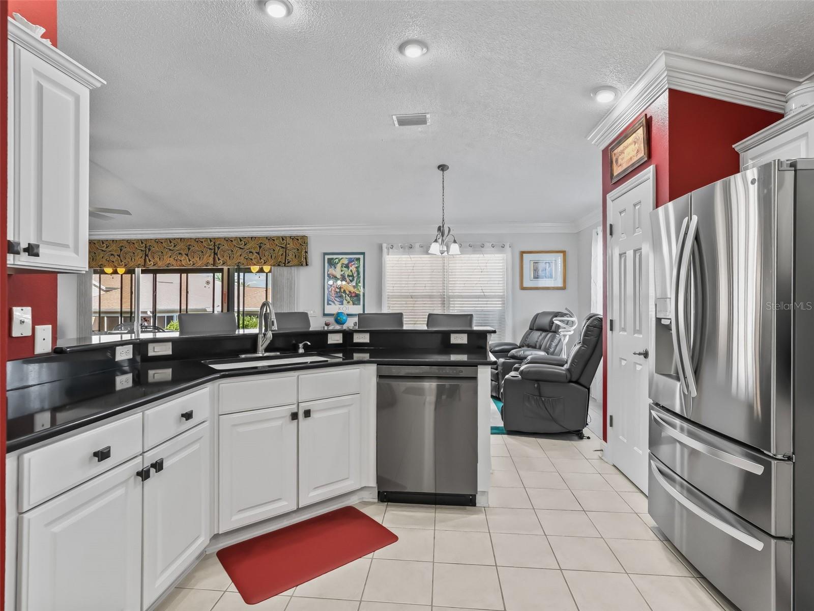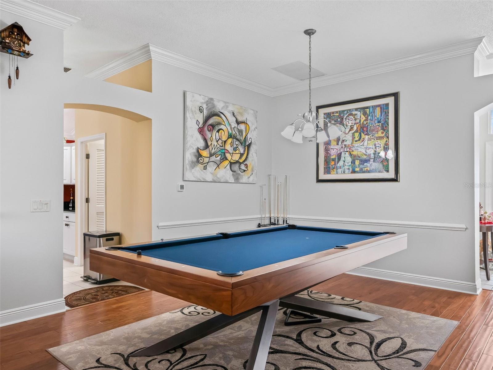 If you’ve been waiting for a home with the big-ticket updates already done—this is it. Enjoy peace of mind with the BOND PAID, NEWER ROOF (2021), HVAC (2020), and PAID-IN-FULL SOLAR PANELS (2021)! This upgraded Lantana/Juniper model is packed with value, including a Tesla EV charger in the garage, a NEW WIFI garage door opener (2024), and a 2-PERSON HOT TUB—and that’s just the beginning. This 3-bedroom, 2-bath home features volume ceilings, beautiful crown molding, wood floors in the living and dining areas, and an open layout designed for comfort and entertaining. A standout bonus: the pool table that converts into a dining table conveys with the home! The kitchen offers stone countertops and newer stainless steel appliances, including a refrigerator (2025), dishwasher, range, and microwave. It opens to the family room and breakfast area, making it ideal for gathering with friends and family. The inside utility room off the kitchen includes a washer and dryer and offers additional storage space. The private owner’s suite is located at the back of the home and includes a large walk-in closet, dual sinks, and volume ceilings. The guest area is thoughtfully placed near the front of the home and features a spacious guest bedroom with a bay window, a second guest bedroom, and a convenient guest bath. You’ll spend hours enjoying the huge enclosed lanai, offering plenty of room for dining and lounging, plus an additional open patio—perfect for grilling or soaking up the Florida sunshine. Major improvements continue with exterior paint (Jan 2023), an irrigation refresh with all heads replaced (Aug 2023), and the standout upgrade: July 2024 BUGOUT Attic & Insulation TAP® Pest Control treatment—designed to help control pests while offering added benefits such as being fire-resistant, environmentally friendly, energy-saving, sound-reducing, mold and mildew resistant, and backed by a warranty. Located on a quiet cul-de-sac street, this home is just 2.5 miles from Lake Sumter Landing and close to 466A, restaurants, shopping, and entertainment. Schedule your private showing today—this one has the updates buyers want most.