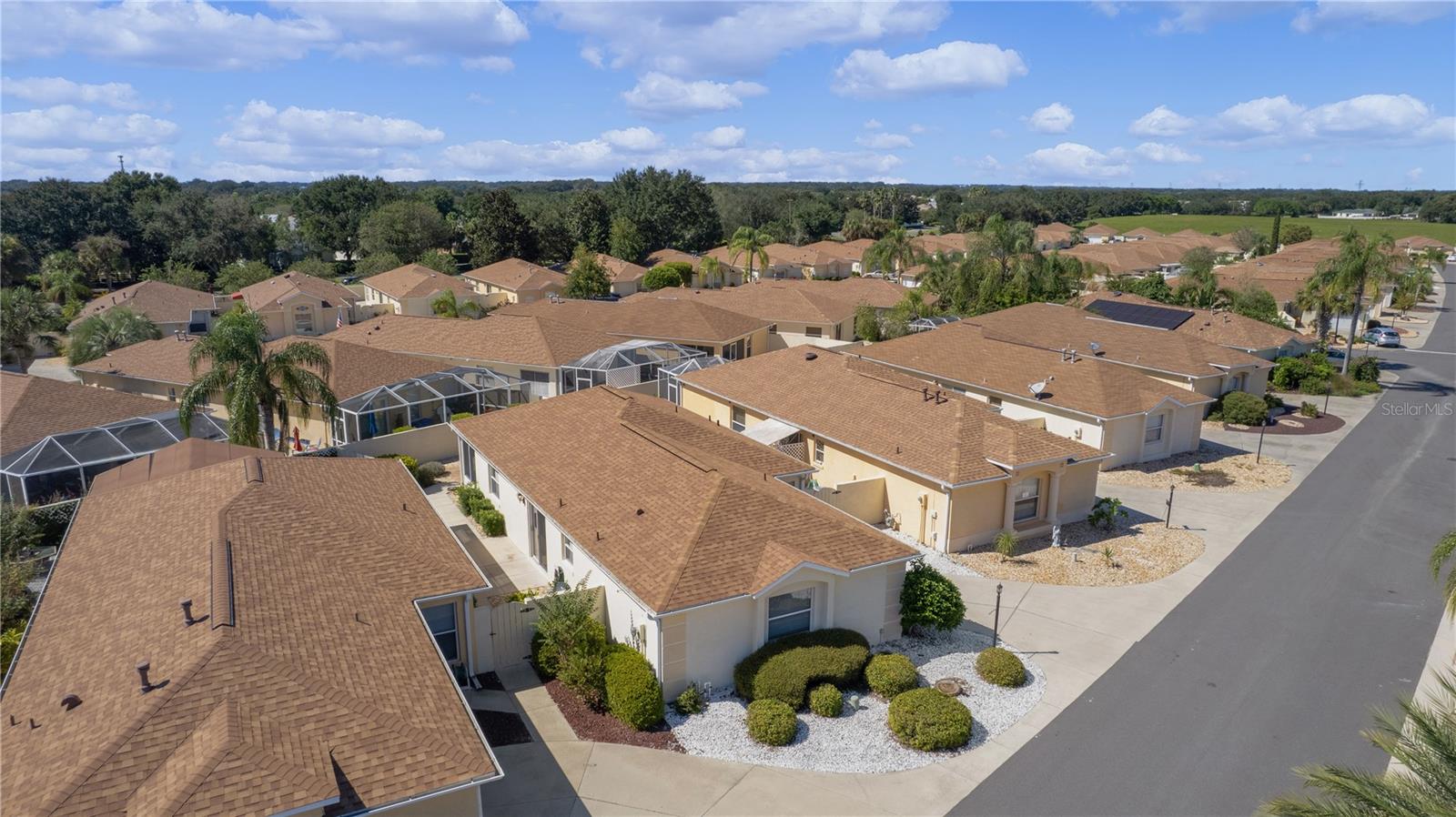~NO BOND~ ~ROOF/HVAC 2018~ ~NO CARPET~ ~GRANITE COUNTERTOPS~ This 2/2 BAJA COURTYARD VILLA home is situated in the convenient Village of SANTIAGO, specifically in VILLA SAN LEANDRO. As you approach, the home welcomes you with beautiful rocks and shrubs, setting the tone for its appealing exterior. Step inside through the TILE foyer, and you'll find a spacious living/dining room combo, perfect for entertaining guests. LAMINATE flooring and UPGRADED LIGHTING enhance the beauty of the main living area. The galley kitchen features a TILE floor, GRANITE countertops, STAINLESS-STEEL appliances, and a CLOSET PANTRY creating a stylish and functional space. The primary bedroom features an ensuite bath UPDATED LIGHTING, MIRRORS and HARDWARE plus a convenient WALK-IN CLOSET. Your guests will enjoy privacy in the 2nd bedroom located right next to the guest bath which also features UPDATED LIGHTING, MIRRORS and HARDWARE. Both bedrooms have been updated with LAMINATE flooring. The home is designed for indoor-outdoor living, with a SCREENED-IN LANAI featuring a painted floor and a beautiful PAVER patio, surrounded by rocks and shrubs for a serene atmosphere. Additional features include a 1-1/2 car garage with a painted floor and ATTIC STAIRS for easy storage. The laundry is in the garage. The property is equipped with a WATER SOFTENER, and the Hot Water Heater is 2006. The location is ideal, close to SPANISH SPRINGS, GLENVIEW COUNTRY CLUB, the SAVANNAH CENTER, and SOUTHERN TRACE offering a variety of choices in restaurants, entertainment, and medical facilities.