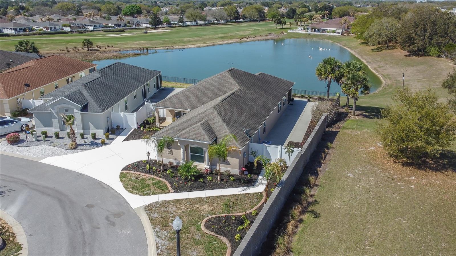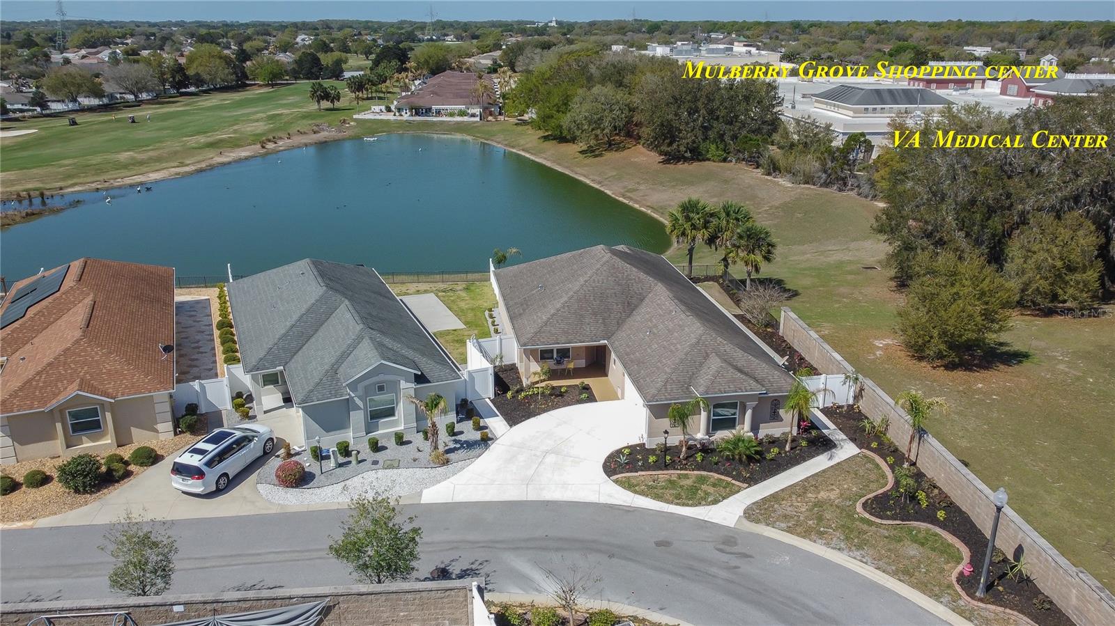 Winslow Courtyard Villa model with a beautiful pond view. Quiet Corner lot with no neighbors to the right side, only the community retention pond and only pond located behind the home. 3 bedroom, 2 full bath home with 1,808 sq ft under air/heat. Large front porch greets you as you pull up to this home with a full 2 car garage. As you enter the home into an open floor plan you will see beautiful granite countertops that compliment the darker Maple cabinets with an additional center island for prep work. Tons of cabinet and drawer space along with a separate panty hallway. Large porcelain tile flooring throughout main living area. Kitchen counter island has plenty of seating for 4-6 guests. Large living and dining area with high ceilings look out into the lanai with great views of the pond. Lanai sliders open up to create a nice indoor outdoor feel. Primary bedroom has views of the pond along with a tray ceiling and an attached bath with walk in tile shower, walk in closet and a 2 sink vanity. Guest bedroom is at the front of the home to create some privacy while the second guest room makes a nice office or craft room. Indoor laundry room with washer and dryer located conveniently off the Primary bedroom hallway. This home is 8 years young and located in Phillips Villas with easy walking access to The Mulberry shopping plaza and a future Walmart Neighborhood Market grocery store. Past pond are views of a Nancy Lopez Champion Course. Homes exterior freshly painted early March 2026 and landscaping will be completed early in March (delayed due to cold weather conditions). Bond remaining is $9,936.47