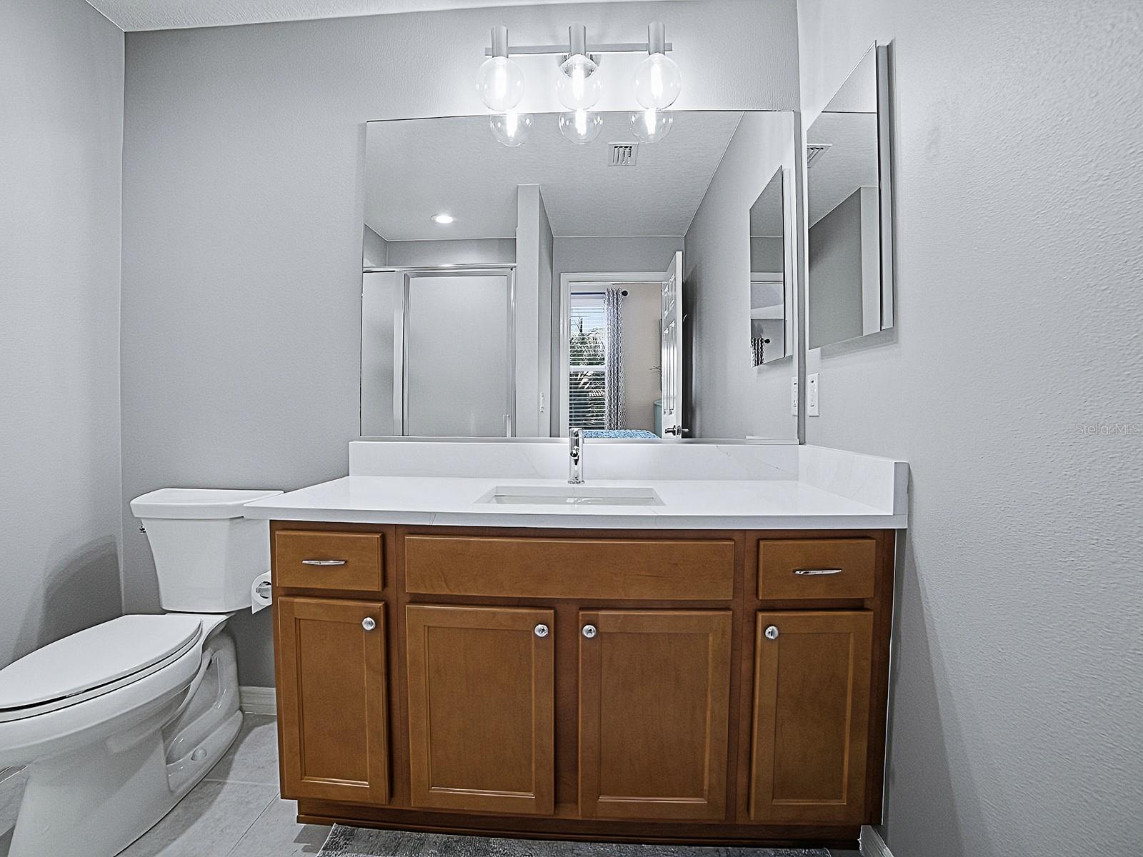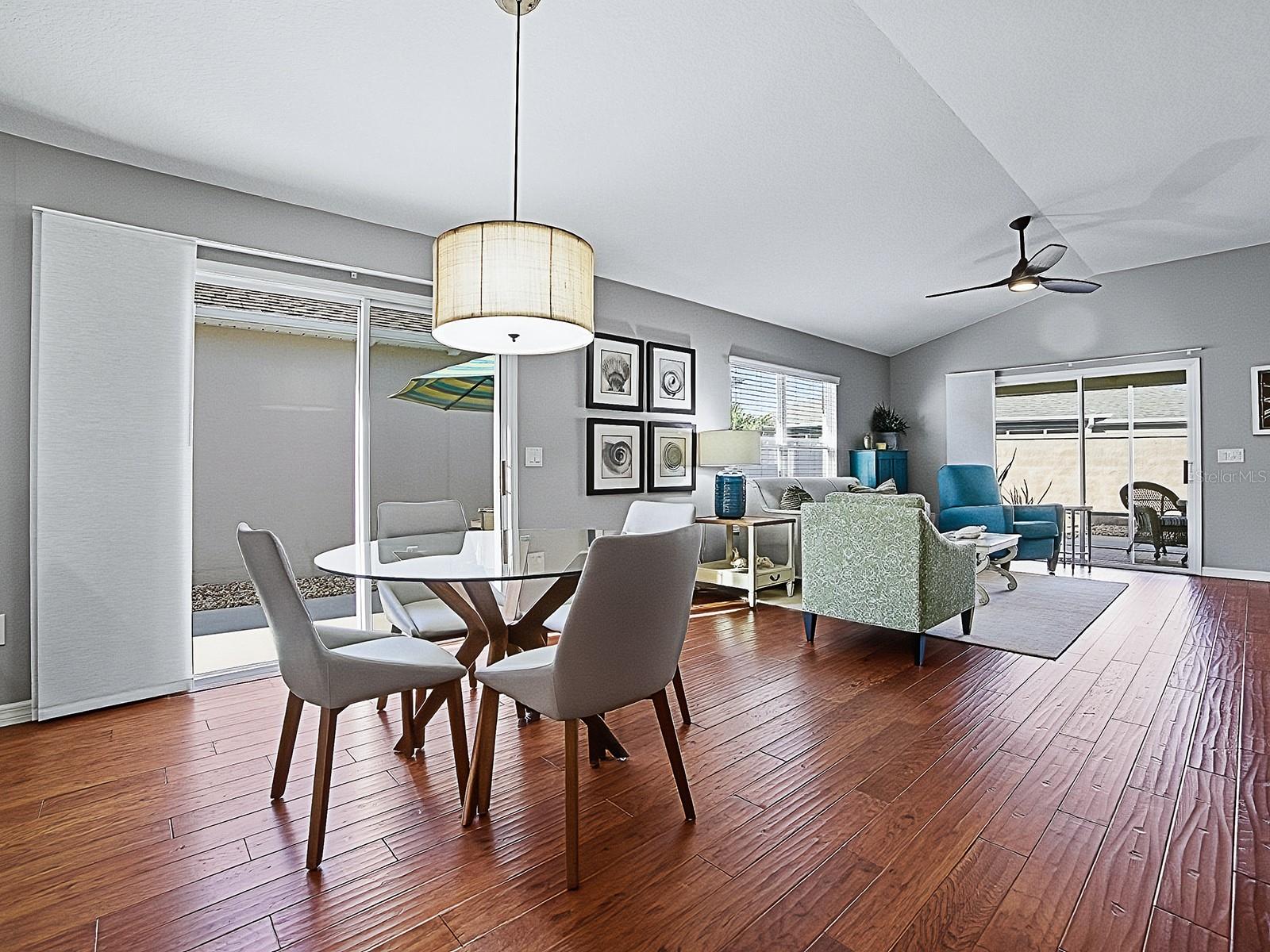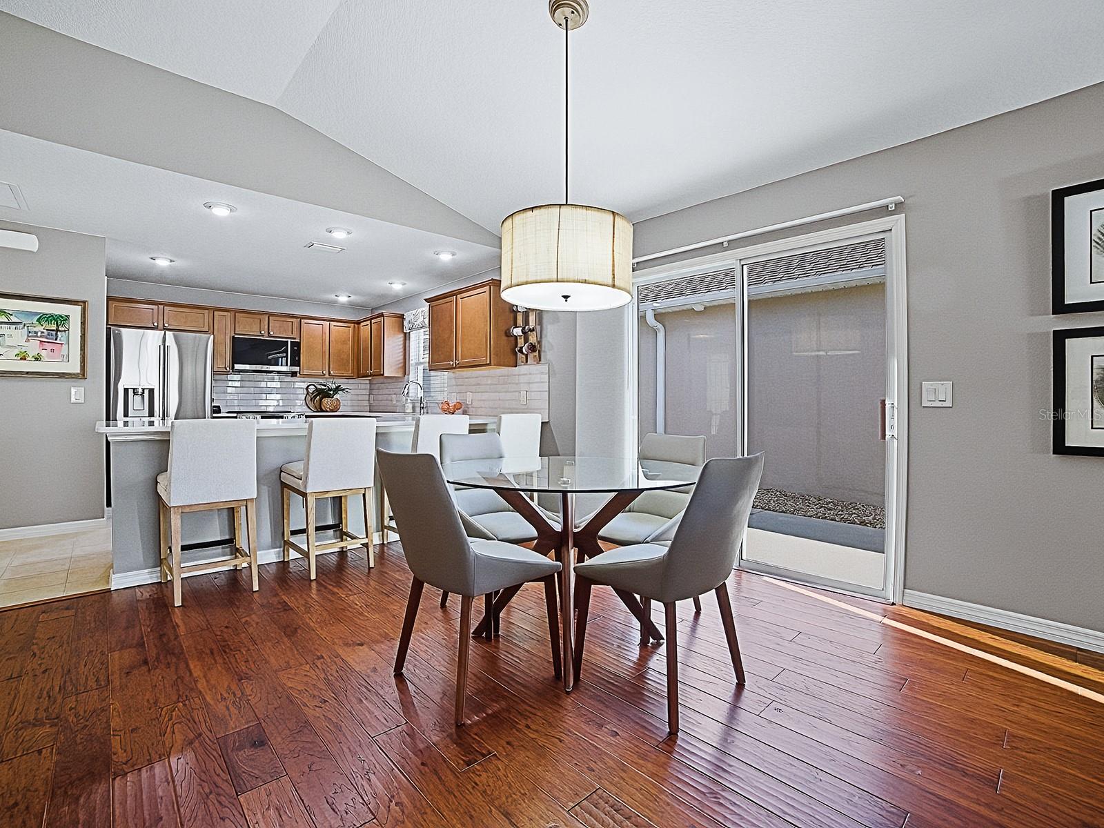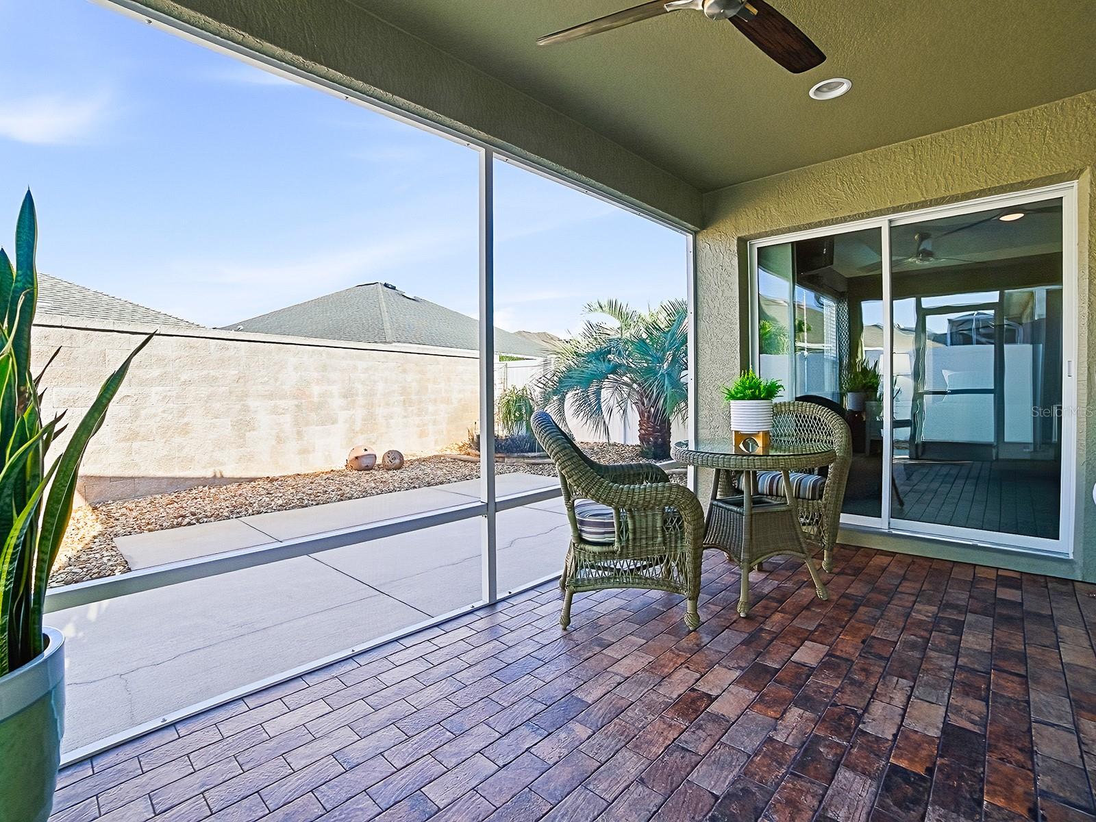 LOVELY 2-bedroom, 2-bath COURTYARD VILLA located in the VILLAGE of GILCHRIST, featuring an impressive list of recent UPGRADES. You'll appreciate the LOW MAINTENANCE landscaping - all hardscape around the entire home. Striking NEW LEADED GLASS front door offers an inviting entrance. The spacious kitchen has light CHERRY cabinetry complemented by NEW QUARTZ countertops, NEW custom subway TILE BACKSPLASH, NEW LG refrigerator, microwave, and slide-in range, NEW sink and faucet, a CLOSET PANTRY, lots of storage and workspace, and a large breakfast bar! The living and dining areas showcase engineered HARDWOOD flooring, while both bedrooms feature NEW carpet. Throughout the home, you’ll find all-NEW light fixtures and ceiling fans! NEW custom PANEL TRACK BLINDS enhance both sets of sliding glass doors in the dining and living rooms. The primary bedroom has a tray ceiling, sliding glass doors that open out to the lanai, a large WALK-IN CLOSET, and an EN-SUITE BATH offering NEW QUARTZ countertops, NEW sink and faucet, NEW light fixture and TILED SHOWER - no fiberglass! A pocket door leads to the guest bath with NEW QUARTZ countertops, NEW sink and faucet, NEW framed mirror, NEW light fixture, and TILED shower and tub; the guest bedroom has a ceiling fan, and large closet. The SCREENED LANAI has been beautifully finished with "CHICAGO BRICK" flooring, creating a perfect space to relax. You’ll love the wrap around COURTYARD with a convenient place to dine and grill, or just relax and enjoy the FLORIDA sunshine! Additional highlights include NEW Carrier HVAC upsized to 2.5 Ton for added comfort and efficiency, fresh interior and exterior paint, the kitchen and baths tile flooring has newly refinished grout, French drain installed in courtyard, gutters around the entire home, added cabinet in laundry area, and FRONT LOAD washer and dryer which do convey with the home. Conveniently located between the Bonifay and Evans Prairie Golf and Country Clubs. And there’s plenty of recreation close by, including shopping and dining at Pinellas and Colony Plazas, and Brownwood Paddock Square! THIS MOVE-IN READY VILLA COMBINES STYLE, QUALITY UPDATES, AND EASY LIVING!