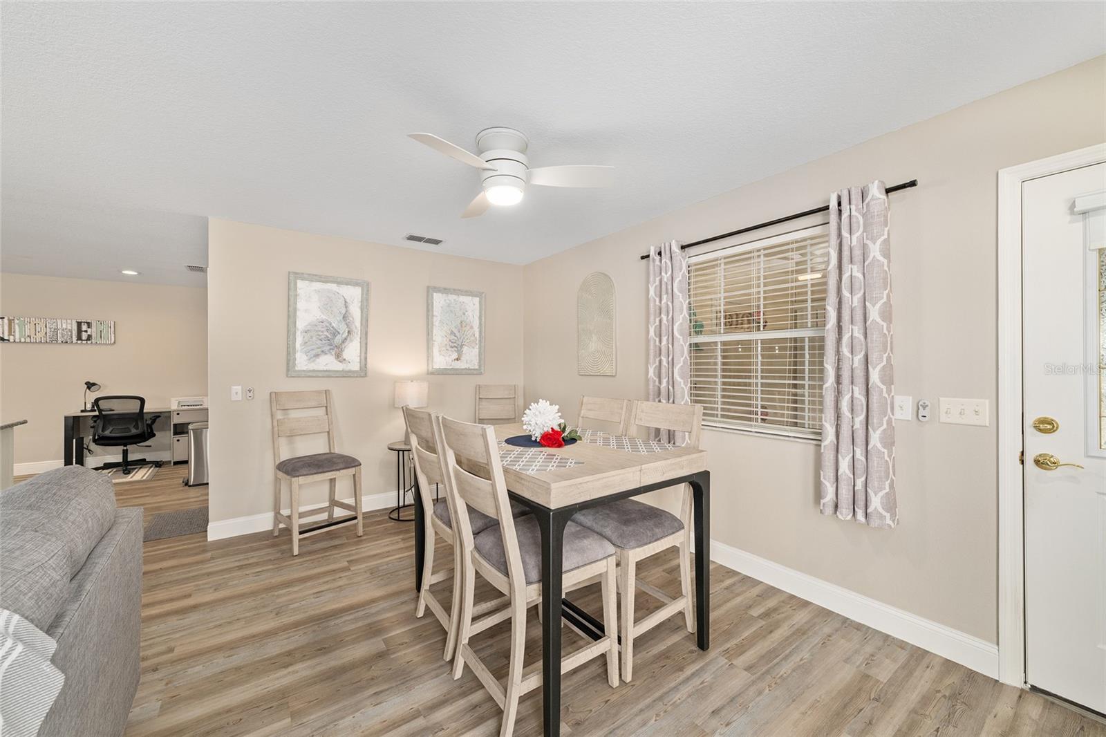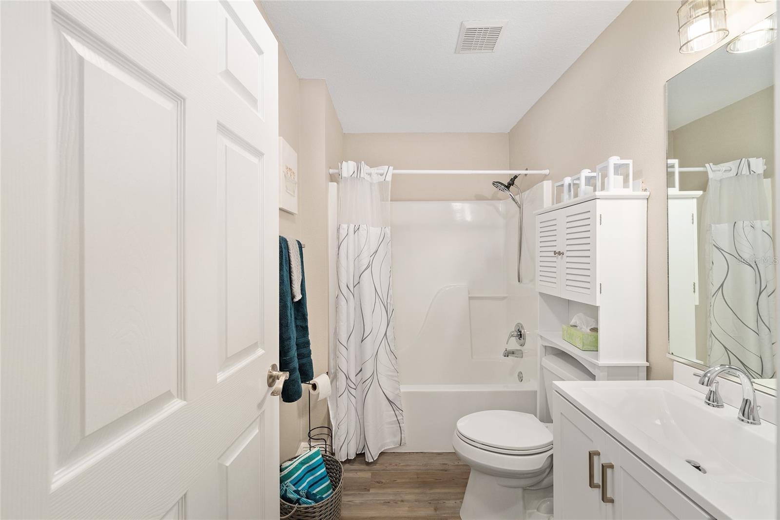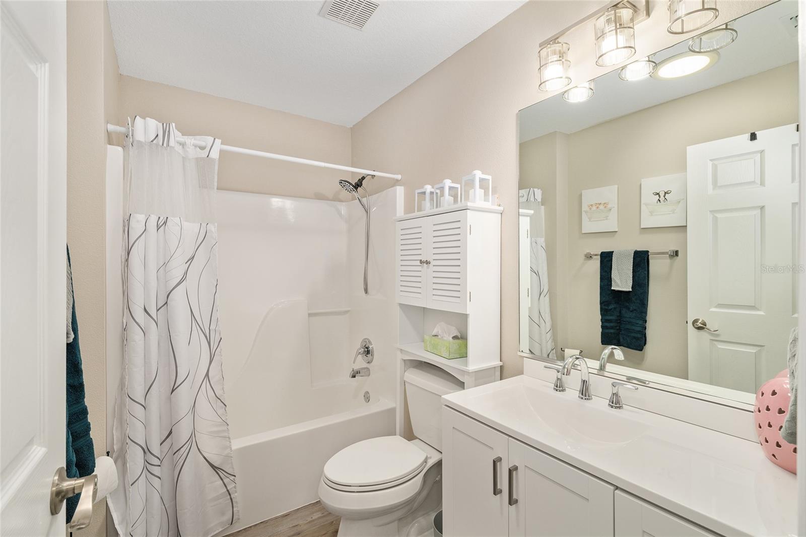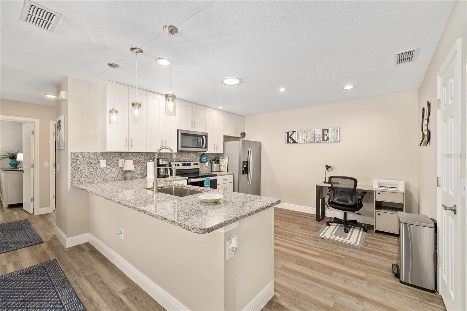 This beautiful VILLA has been tastefully REMODELED and boasts a ROOF replaced in 2022, A/C IN 2020 and WATER HEATER IN 2025 with NO BOND! The owners only used the villa seasonally so it's practically new and so clean!! The COLONY Patio Villa in the Villa Del Canto area of Spanish Springs provides an OPEN FLOOR PLAN and is so nicely furnished. As you enter the low maintenance home you first notice the FOUR SEASON LANAI or Florida Room (under heat & air) with a painted floor. How nice to sit outside to dine or have your coffee in comfort. The home boasts LUXURY VINYL PLANK THROUGHOUT (no carpet) with updated lighting and ceiling fans and includes two SOLAR TUBES for brightness. The Living/Dining combination is comfortable & bright and leads to the upgraded Kitchen with GRANITE COUNTERS AND BACKSPLASH, new CABINETS with SOFT-CLOSE DRAWERS AND DOORS, STAINLESS STEEL APPLIANCES and a DEEP SINK with Pendant Lighting. The Primary Bedroom includes a LARGE WALK-IN CLOSET and EN-SUITE. The Guest room is spacious and convenient to the 2nd full bathroom. The Garage has beautiful EPOXY FLOORS and SCREENED PANELS with plenty of room for your car and golf cart. The Laundry Area is there as well with good lighting and shelving. This home is BEAUTIFULLY DECORATED and these furnishings/decor and TURN-KEY PACKAGE can be yours as well as the 2015 YAMAHA GAS GOLF CART. This Moonstone GC was purchased from The Villages Golf Cars and was well maintained. This home is just minutes away from Spanish Springs or Lake Sumter Landing Squares, Dining, Shopping, Rec Centers and Medical Facilities. And your mail center and exit are very close and convenient! Schedule your private showing of this well-priced Villa which would be a perfect investment opportunity or your very own slice of paradise- truly Move-In Ready!!