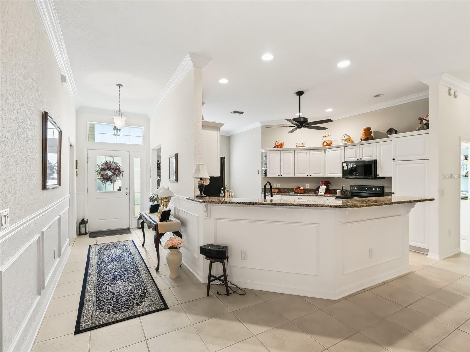 One or more photo(s) has been virtually staged. Brand new A/C 2026 and Bond paid! Welcome to this spacious 3/2 Camellia model offering 2,039 square feet of thoughtfully designed living space. Ideally located on a corner lot in the desirable Village of Poinciana, just down the street from the Seabreeze Recreation Center. This well-appointed home features high ceilings and elegant crown molding throughout, enhancing the open and airy feel. The custom kitchen boasts quality cabinetry and granite countertops throughout the home. The primary suite is a true retreat, complete with an additional office or reading room, offering flexible space for working from home or relaxing in privacy. Enjoy year-round comfort in the climate-controlled, enclosed lanai (20x16)—an ideal additional living space. An oversized two-car garage provides ample room for vehicles and golf carts. Newer roof in 2021.