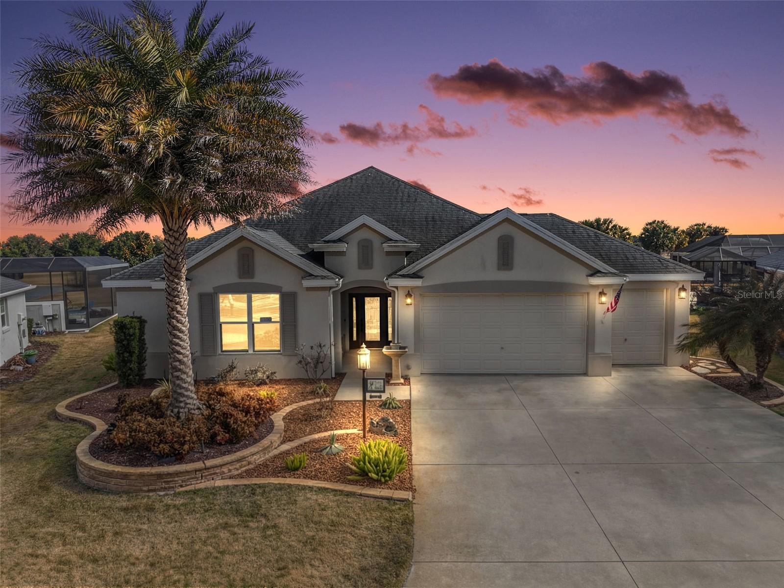 One or more photo(s) has been virtually staged. EXPERIENCE CHAMPIONSHIP GOLF and SERENE WATER VIEWS from this STUNNING 3/2.5 STRETCHED Bridgeport featuring a GAS HEATED POOL, HOT TUB, PUTTING GREEN, and OVERSIZED 2-CAR + GOLF CART GARAGE in the Village of LaBelle! JUST MINUTES to Brownwood Paddock Square and Lake Sumter Landing! Distinguished by its commanding position on a premium pie-shaped homesite, this residence offers what few homes in The Villages can: SPACE, PRIVACY, and PANORAMIC views! With 124’ of direct GOLF COURSE FRONTAGE, this property offers a SWEEPING VISTA of MULTIPLE tee boxes, ROLLING fairways, and DUAL scenic lakes! TIERED tropical landscaping with STONED beds, COVERED entry vestibule, and LEADED GLASS door with sidelights and transom welcome you in to the GENEROUS foyer with entry closet. The OPEN CONCEPT layout of the living, dining, and kitchen showcase TILE flooring, ARCHED DOORWAYS, and HIGH CEILINGS creating a SPACIOUS main living area. The STRIKING kitchen boasts CHERRY STAGGERED cabinetry; a generous CENTER ISLAND; QUARTZ countertops; STAINLESS appliances; DOUBLE PANTRY with ROLL-OUTS; built-in DESK; and EAT-IN breakfast bar and dinette area. Adjacent to the kitchen, the dining room, with its TRAY ceiling and BAY window, invites NATURAL LIGHT. The EXPANSIVE living room showcases a TRAY ceiling and triple sliding glass doors to the lanai and pool. This EXCEPTIONAL OUTDOOR OASIS invites you to ENJOY the resort-style POOL, relax in the SPA, or bask in the sun on the EXPANSIVE DECK—all while taking in STUNNING GOLF COURSE and WATER VIEWS! Completing the experience is a professional-grade outdoor PUTTING GREEN perfect for practice. The LUXURIOUS primary suite boasting a DOUBLE door entry, TRAY ceiling, BAY window, and TWO CUSTOM WALK-IN closets. Its en-suite bathroom features TILE flooring, HIGH ceilings, CHERRY cabinetry, QUARTZ countertops, DUAL sinks, make-up area, TILED ROMAN STYLE WALK-IN shower, LINEN closet, and SEPARATE water closet. Two additional bedrooms and a second bathroom are located near the front of the home ensuring plenty of PRIVACY for guests or home office. Both bedrooms feature HIGH ceilings and CUSTOM BUILT-IN closets. The second bathroom lies between them in “Jack and Jill” style. It offers a TILED floor, CHERRY vanity with QUARTZ top, built-in LINEN cabinet, and TILE tub and shower combination. There’s also an ADDITIONAL HALF BATH hidden behind a POCKET DOOR near the foyer. An INTERIOR laundry room features TILE floors, CHERRY cabinets with QUARTZ top, shelving, and a built-in utility sink. The OVERSIZED TWO CAR + GOLF CART GARAGE showcases EPOXIED floors, ATTIC LIFT, shelving, workbench, extra freezer, and access to expansive stand-up attic storage space. The home is also wired for an Invisible Fence system. Additional upgrades include a NEW HVAC (2025) and full color LED front and lanai programmable lighting system. DON’T MISS YOUR OPPORTUNITY TO OWN THIS AMAZING HOME! The Village of LaBelle is conveniently located close to Brownwood Paddock Square and Lake Sumter Landing; Belle Glade Country Club and Championship Golf Course; Sarasota Golf Practice Facility and Driving Range; Colony Cottage and Rohan Regional Recreation Centers; LaBelle Neighborhood Pool and Recreation Center; Sharon Rose Wiechens Preserve; and CR466A with a plethora of shopping, dining, banking, medical, and more! PLEASE WATCH OUR VIDEO of this EXCEPTIONAL GOLF and WATERFRONT HOME and CALL TODAY for your private showing or virtual tour!