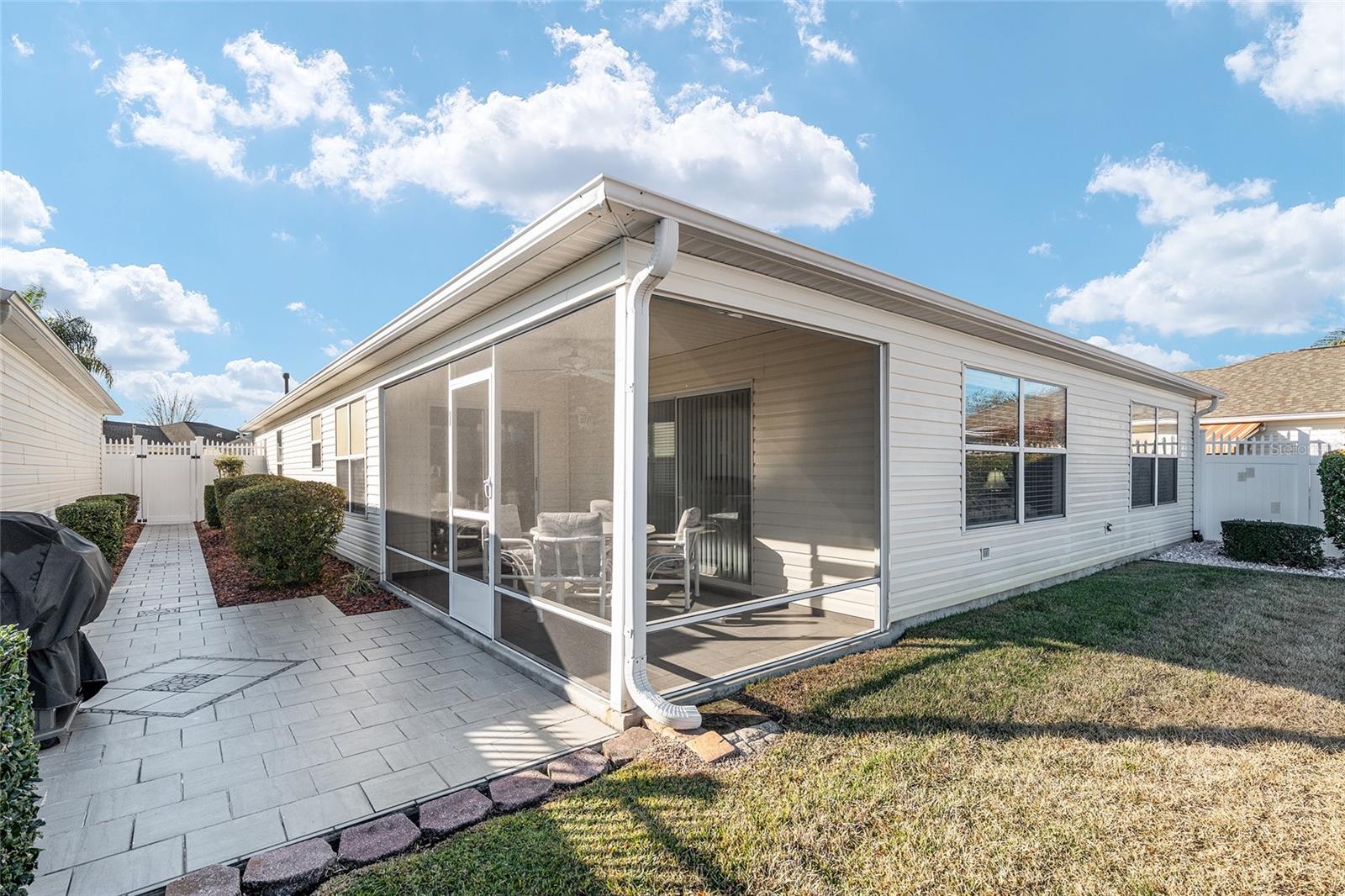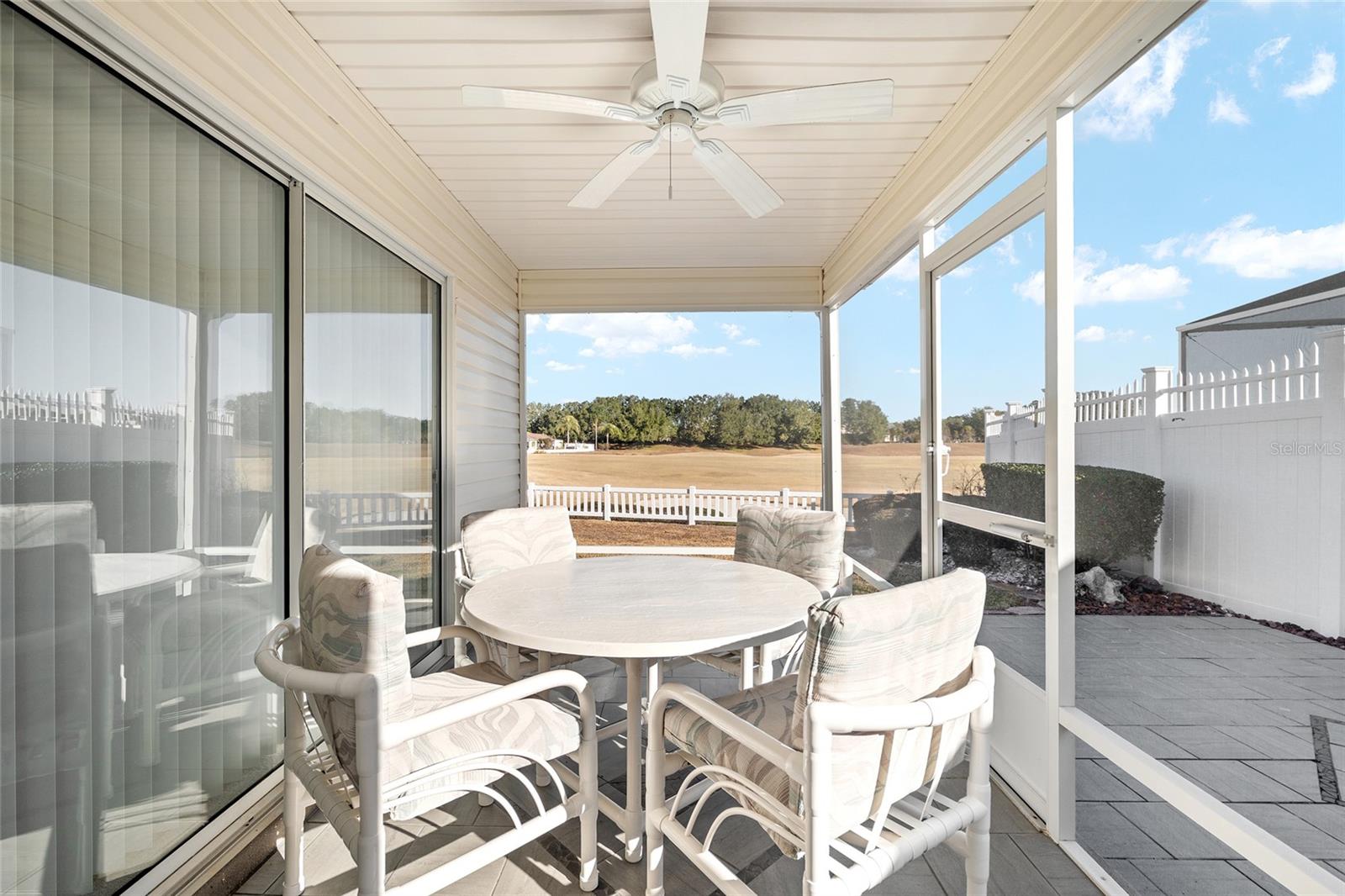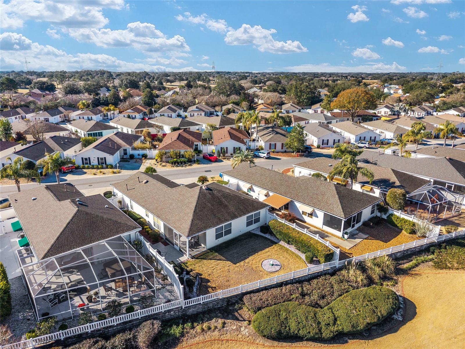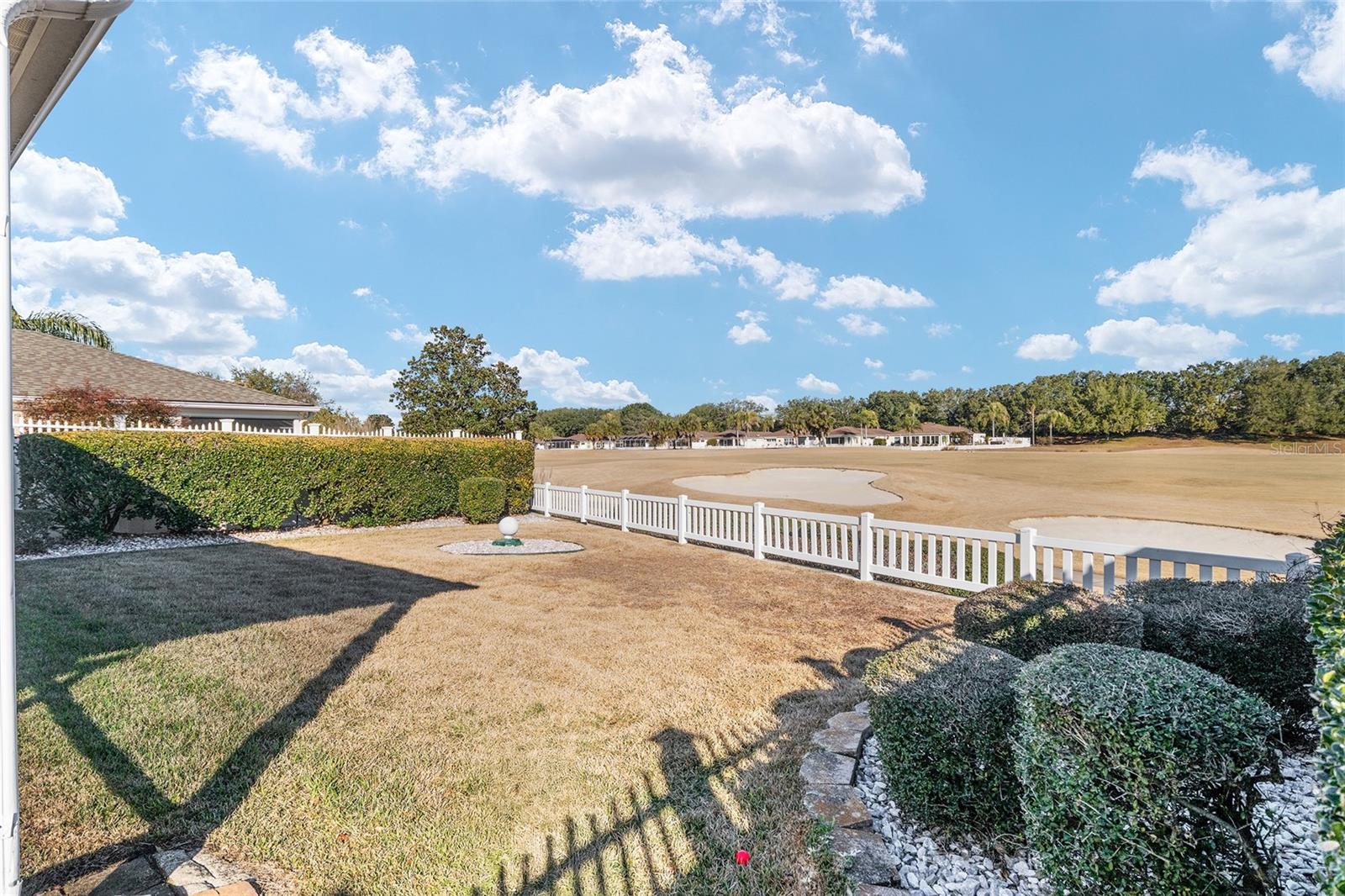BEAUTIFULLY MAINTAINED ONE-OWNER GOLF COURSE VIEW COURTYARD VILLA WITH EXPANSIVE PRIVATE OUTDOOR SPACE! Welcome to this desirable TURN-KEY ANNA MARIA MODEL located in the VILLAGE OF BRIAR MEADOW, perfectly positioned with A VIEW OF THE 5TH HOLE OF THE NANCY LOPEZ ASHLEY MEADOWS GOLF COURSE and a LARGE PRIVATE COURTYARD ideal for entertaining, relaxing, or enjoying the Florida lifestyle. This 3-BEDROOM, 2-BATH COURTYARD VILLA has been BEAUTIFULLY MAINTAINED BY THE ORIGINAL OWNER and is truly MOVE-IN READY. Inside, you’ll appreciate HIGH CEILINGS, a bright OPEN LAYOUT, and LARGE WINDOWS IN BOTH THE PRIMARY SUITE AND LIVING ROOM DESIGNED TO MAXIMIZE THE GOLF COURSE VIEW. CUSTOM DECORATIVE WINDOW TRIM WITH CROWN/CORNICE DETAIL adds an elevated touch throughout the home. The KITCHEN is filled with natural light and features GRANITE COUNTERTOPS, TONS OF CABINETRY WITH PULL-OUT SHELVES, TILE FLOORING, and a GAS RANGE—perfect for everyday living and entertaining. The PRIMARY SUITE includes DUAL SINKS and a TILED WALK-IN SHOWER AND WALK-IN CLOSET, while both guest bedrooms have closets and comfortable space, with the second bedroom showcasing a VAULTED CEILING, and the GUEST BATH offers GRANITE COUNTERTOPS, a TUB/SHOWER COMBINATION, and a SPACIOUS STORAGE CLOSET. The 1½-CAR GARAGE WITH ROOM FOR YOUR CAR & GOLF CART features PULL-DOWN ATTIC STAIRS and a UTILITY SINK for added functionality. Step outside to the SCREENED, TILED LANAI and take in PEACEFUL GOLF COURSE VIEWS—perfect for morning coffee or evening sunsets. The LARGE PRIVATE COURTYARD offers RARE ADDITIONAL OUTDOOR LIVING SPACE not commonly found in villa homes and is ideal for pets, gardening, or outdoor gatherings. LOCATION & AMENITIES: Ideally located just minutes from MULTIPLE EXECUTIVE AND CHAMPIONSHIP GOLF COURSES, RECREATION CENTERS, SWIMMING POOLS, PICKLEBALL, TENNIS, AND MORE. Enjoy convenient access to MULBURY SHOPPING PLAZA, RESTAURANTS, MEDICAL OFFICES, AND THE VA CLINIC, along with easy golf-cart access to SPANISH SPRINGS TOWN SQUARE for nightly entertainment, dining, and shopping. Nearby major roadways make traveling throughout The Villages simple and convenient. MAJOR UPDATES INCLUDE: ROOF (2019) • A/C (2021) • BOND PAID • TURN-KEY • GOLF CART AVAILABLE SEPERATLY