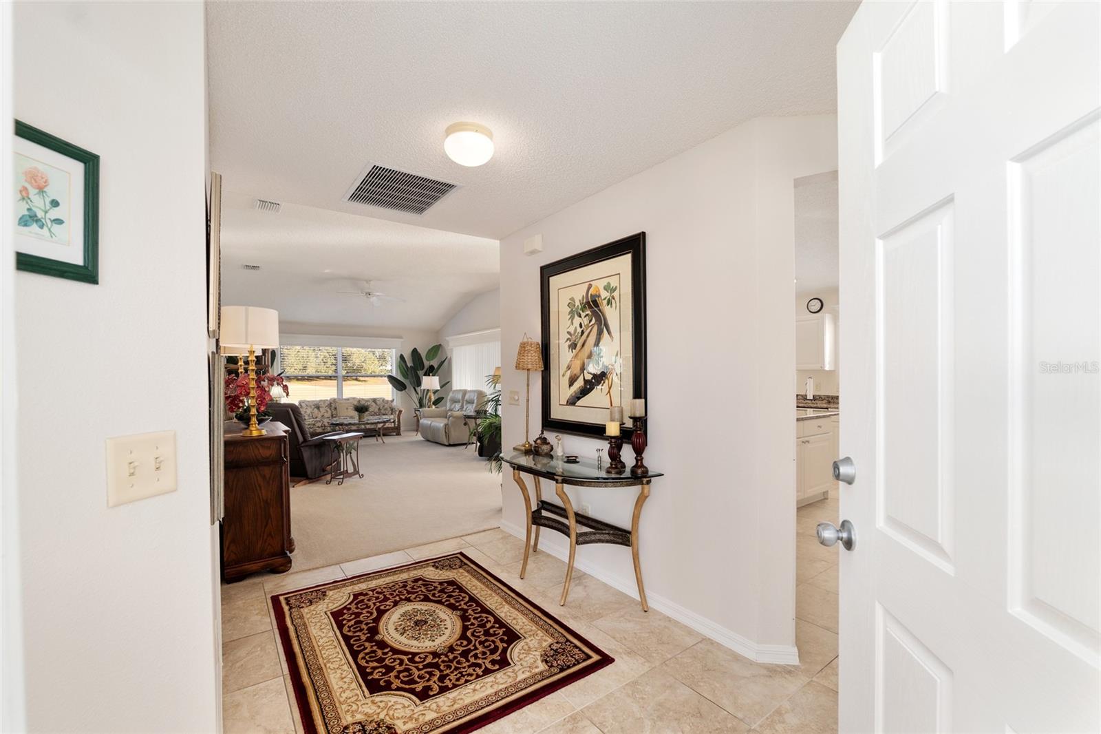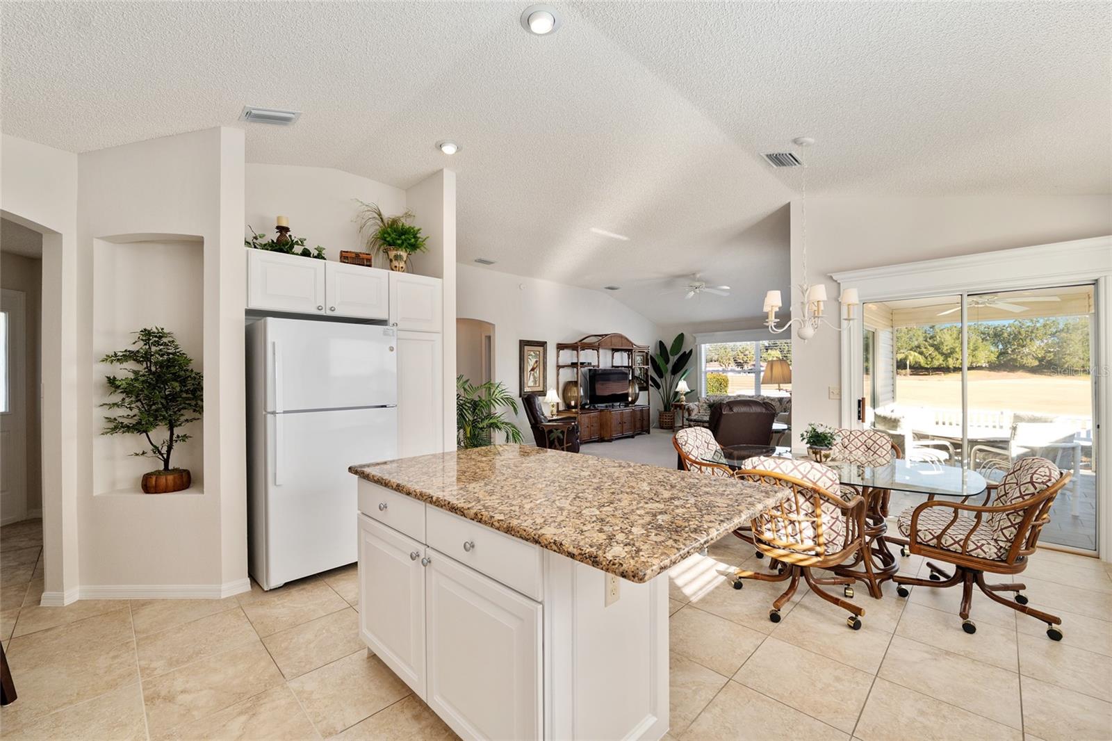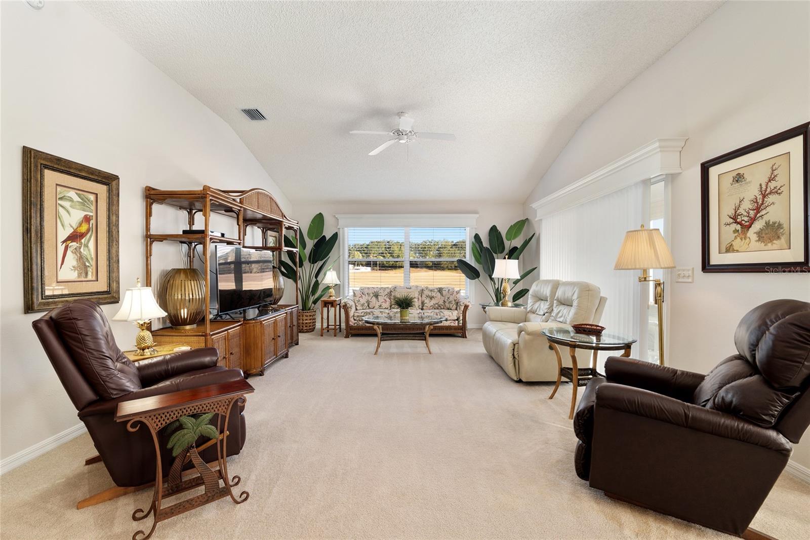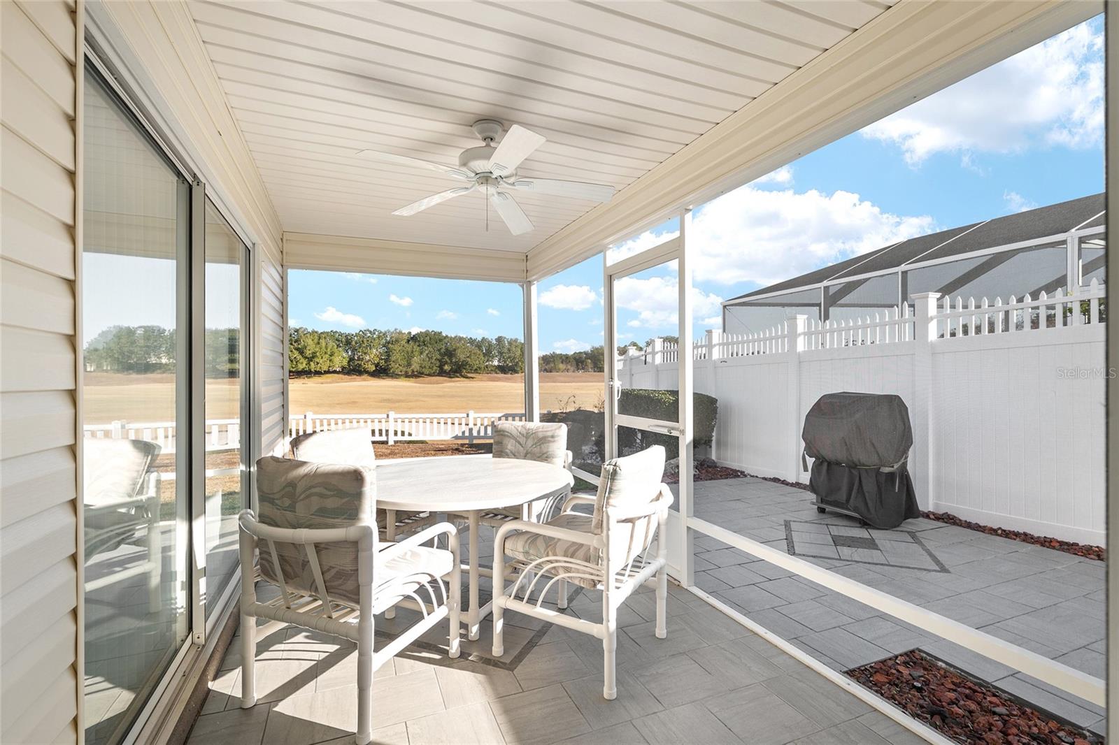 BEAUTIFULLY MAINTAINED ONE-OWNER GOLF COURSE VIEW COURTYARD VILLA WITH EXPANSIVE PRIVATE OUTDOOR SPACE! Welcome to this desirable TURN-KEY ANNA MARIA MODEL located in the VILLAGE OF BRIAR MEADOW, perfectly positioned with A VIEW OF THE 5TH HOLE OF THE NANCY LOPEZ ASHLEY MEADOWS GOLF COURSE and a LARGE PRIVATE COURTYARD ideal for entertaining, relaxing, or enjoying the Florida lifestyle. This 3-BEDROOM, 2-BATH COURTYARD VILLA has been BEAUTIFULLY MAINTAINED BY THE ORIGINAL OWNER and is truly MOVE-IN READY. Inside, you’ll appreciate HIGH CEILINGS, a bright OPEN LAYOUT, and LARGE WINDOWS IN BOTH THE PRIMARY SUITE AND LIVING ROOM DESIGNED TO MAXIMIZE THE GOLF COURSE VIEW. CUSTOM DECORATIVE WINDOW TRIM WITH CROWN/CORNICE DETAIL adds an elevated touch throughout the home. The KITCHEN is filled with natural light and features GRANITE COUNTERTOPS, TONS OF CABINETRY WITH PULL-OUT SHELVES, TILE FLOORING, and a GAS RANGE—perfect for everyday living and entertaining. The PRIMARY SUITE includes DUAL SINKS and a TILED WALK-IN SHOWER AND WALK-IN CLOSET, while both guest bedrooms have closets and comfortable space, with the second bedroom showcasing a VAULTED CEILING, and the GUEST BATH offers GRANITE COUNTERTOPS, a TUB/SHOWER COMBINATION, and a SPACIOUS STORAGE CLOSET. The 1½-CAR GARAGE WITH ROOM FOR YOUR CAR & GOLF CART features PULL-DOWN ATTIC STAIRS and a UTILITY SINK for added functionality. Step outside to the SCREENED, TILED LANAI and take in PEACEFUL GOLF COURSE VIEWS—perfect for morning coffee or evening sunsets. The LARGE PRIVATE COURTYARD offers RARE ADDITIONAL OUTDOOR LIVING SPACE not commonly found in villa homes and is ideal for pets, gardening, or outdoor gatherings. LOCATION & AMENITIES: Ideally located just minutes from MULTIPLE EXECUTIVE AND CHAMPIONSHIP GOLF COURSES, RECREATION CENTERS, SWIMMING POOLS, PICKLEBALL, TENNIS, AND MORE. Enjoy convenient access to MULBURY SHOPPING PLAZA, RESTAURANTS, MEDICAL OFFICES, AND THE VA CLINIC, along with easy golf-cart access to SPANISH SPRINGS TOWN SQUARE for nightly entertainment, dining, and shopping. Nearby major roadways make traveling throughout The Villages simple and convenient. MAJOR UPDATES INCLUDE: ROOF (2019) • A/C (2021) • BOND PAID • TURN-KEY • GOLF CART AVAILABLE SEPERATLY