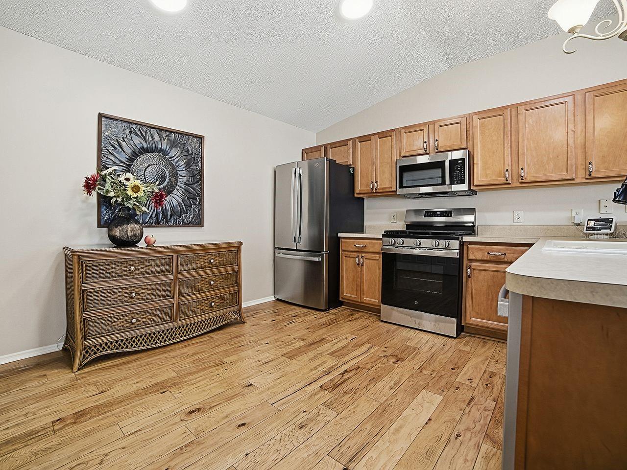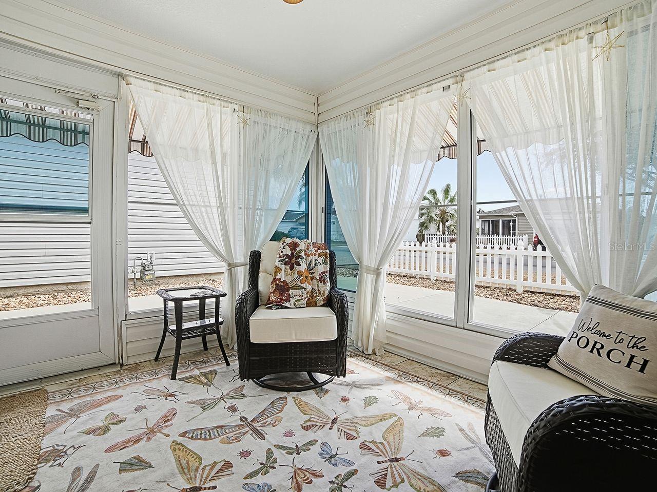 Feel welcome in this tastefully upgraded, meticulously maintained Colony patio villa in the Village of Sabal Chase. Location is everything with this home that is just minutes to Lake Sumter Landing, Lake Miona Regional Recreation Center, a multitude of Villages Recreation Centers, shopping centers and restaurants. With rich looking hand scraped engineered hardwood floors (NO CARPET), Maple Cabinetry, Plantation Shutters, 3 Solar Tubes, updated light fixtures, NEW kitchen APPLIANCES (GE–2024) including a GAS STOVE, and a beautiful built-in Murphy bed in the guest bedroom, there’s nothing left to do but move in and enjoy The Villages!! The ROOF was replaced in 2021, HVAC in 2018 and hot water heater in 2024. The concrete patio has been enlarged for more outdoor entertainment space and less yard maintenance. The screens on the lanai have been replaced, and awnings were installed in 2025 to help keep the lanai cool on those hot summer days. The entire home has been freshly painted in soothing neutral colors. In addition to all of that, the BOND IS PAID!!!