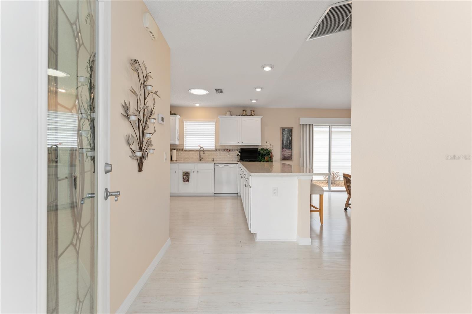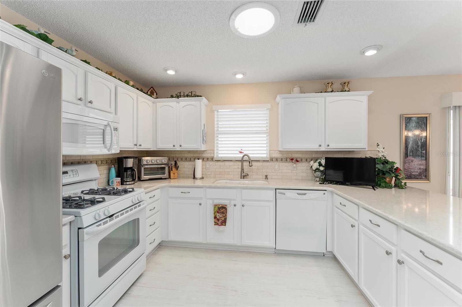 Stunning, luxuriously updated Courtyard Villa with beautifully curated enhancements throughout. This light-filled home welcomes you with a soft neutral color palette and pristine white LVP flooring that elevates the spacious, open feel. The remodeled kitchen is a showstopper, featuring crisp white cabinetry and elegant white quartz countertops that flow seamlessly into the living areas—perfect for entertaining. Both bathrooms have been fully renovated with modern finishes and walk-in showers, creating a spa-like atmosphere. Major components including the roof (2023) and A/C (2021) offering added peace of mind. Every detail has been thoughtfully selected to provide a clean, sophisticated, and move-in-ready experience. Professional photos will be updated on 2/12/26. This exceptional villa is truly a must-see—don’t miss it!