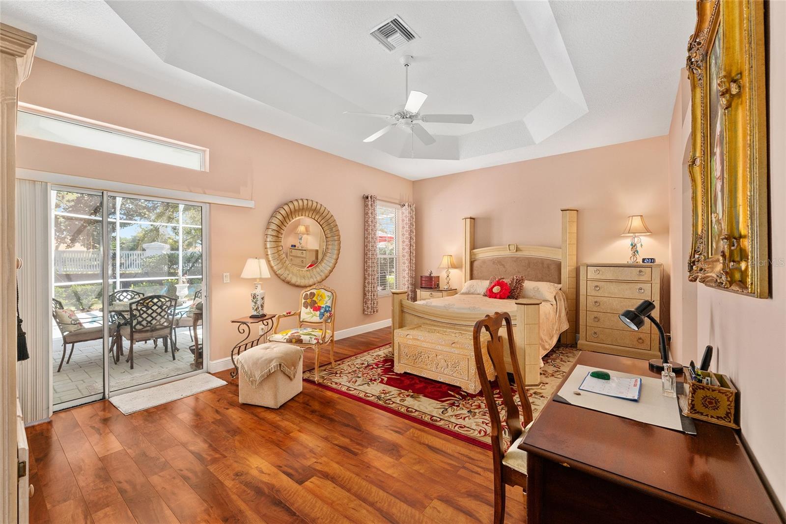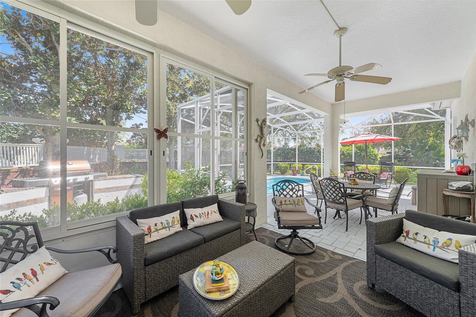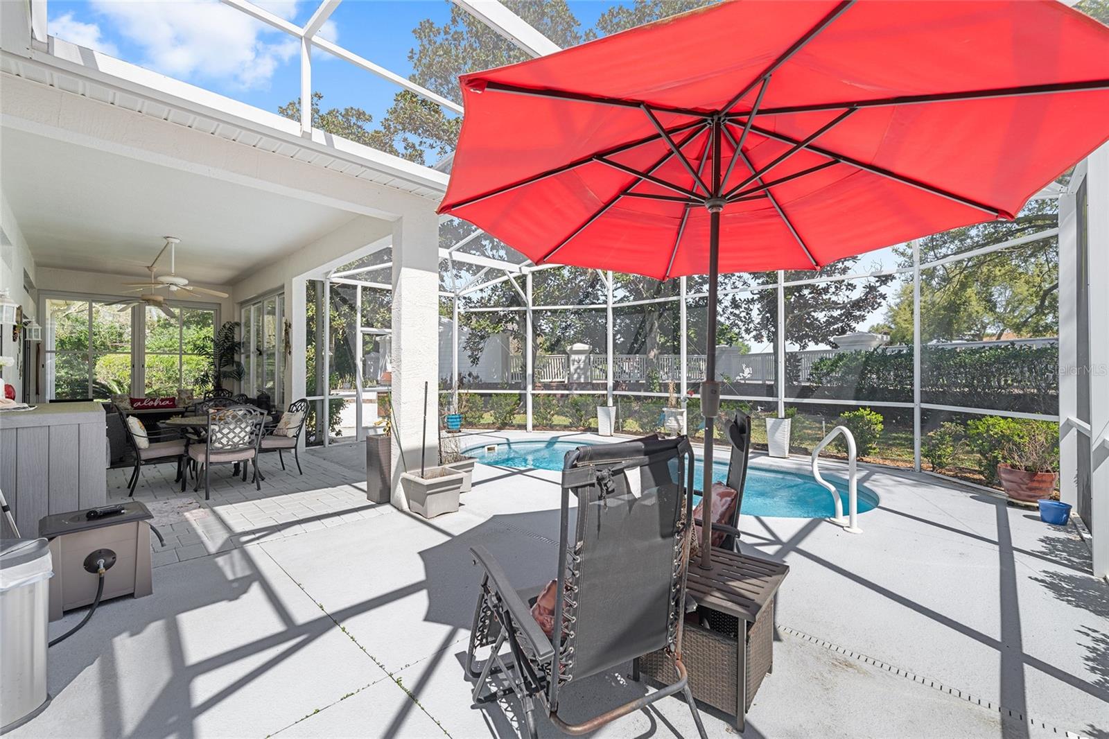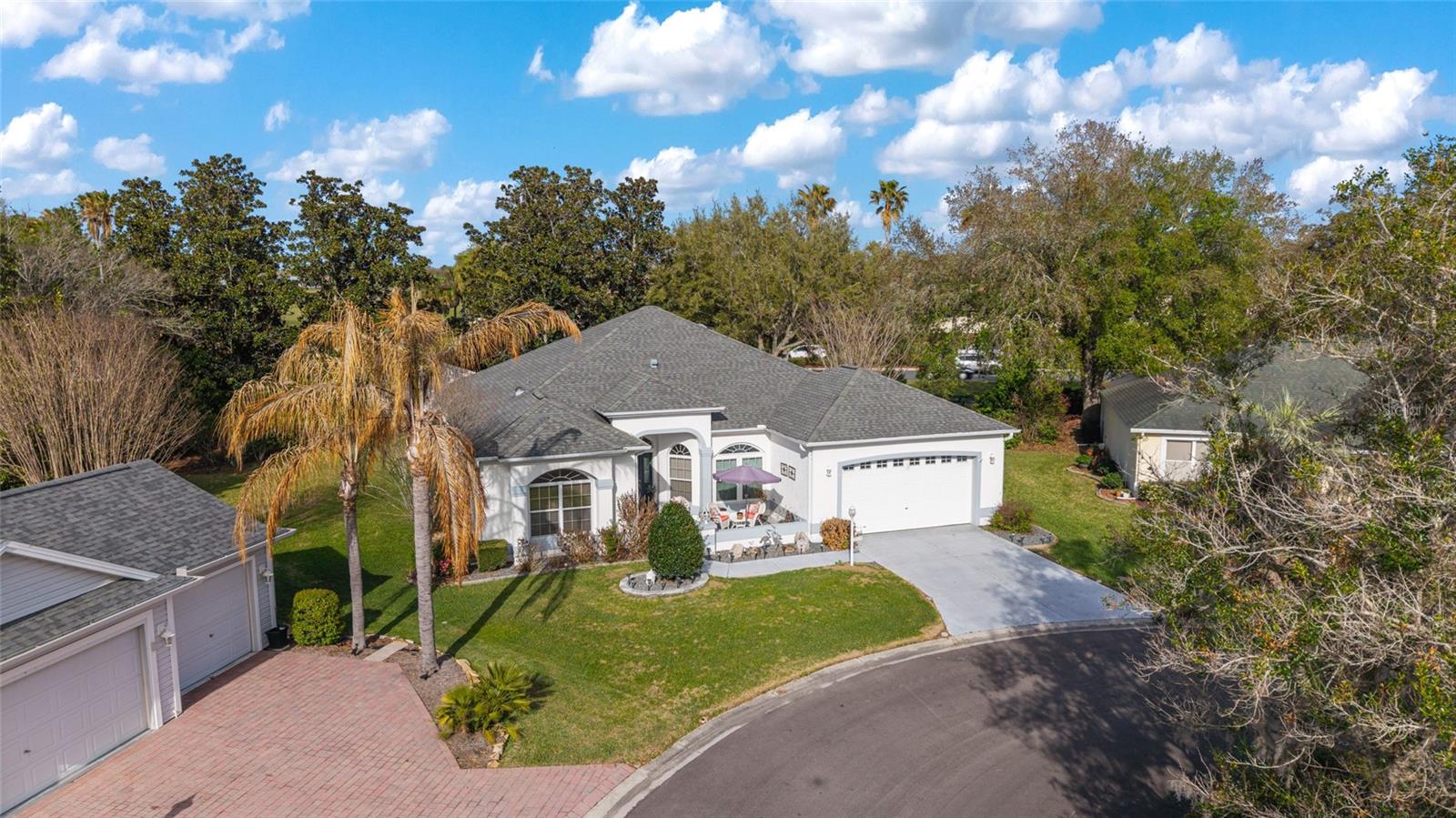 Welcome to this OUTSTANDING ! RANCHO MIRAGE PREMIER HOME located in The VILLAGE OF GLENBROOK on a quiet Cul-De-Sac. BOND PAID, ROOF 2019, HVAC 2016, 3 NEW FRONT WINDOWS 2025, SWIMMING POOL, GOLF CAR INCLUDED, just minutes from Spanish Springs and Sumter Landing ! This PRIVATE, LARGER HOMESITE, features a relaxing outdoor area with a solar-heated pool, perfect for entertaining family and friends. 3 Beds 2 Baths, Big Bright Kitchen and Breakfast Area. With Lots of Natural Light. Large Living and Dining areas Leading to an PARTIALLY ENCLOSED LANAI and HEATED POOL and NO HOMES BEHIND ! As you arrive, you'll notice the charming front courtyard with an umbrella and comfortable seating area, ideal for enjoying your morning coffee. Step inside to discover a bright and open floor plan with high ceilings and plenty of natural light. The updated Kitchen offers White Cabinetry and Appliances, Granite countertops, a Center Island, and a stylish tile backsplash and Beautiful Architectural Columns separating the Kitchen from the Dining Room. Just off the Kitchen on the way to the garage is an Arts or Craft Room. The Living Room features a Taller Painted Tray Ceiling with Crown Molding and provides plenty of space for gathering and entertaining. Just beyond, the Enclosed Lanai leads to the screened, Brick Paver Pool where you can enjoy the Florida lifestyle year-round. The outdoor space also includes a grill and ample room for lounging or hosting get-togethers. There's also plenty of room for your furry friends to play. The spacious primary suite offers peaceful views of the pool and includes two closets, dual sinks, a relaxing garden tub, and a walk-in shower. Two additional guest rooms provide comfortable space for visitors, with one easily serving as a home office or flex room if desired. ( No Closet ) Additional highlights include an oversized garage with epoxy flooring and extra storage, as well as a convenient indoor laundry room currently used as an Art Studio. The Golf Cart is Included—making it easy to explore everything The Villages lifestyle has to offer. This wonderful home combines comfort, privacy, and an unbeatable location. Come see it today and start enjoying the Florida lifestyle! Nearby you'll find the Glenview Country Club with Tennis Courts and Pool and the Championship Golf Course. Also the Savannah Regional Recreation Center and Pool , Saddlebrook Softball Complex, Pool and Rec. Center. The Southern Trace Shopping Center and Multiple Pools and Executive Golf Courses. Please preview the Photos and Video Tour and Schedule Your Private Showing Today. Thank you. BOND PAID, ROOF 2019, HVAC 2016, 3 NEW FRONT WINDOWS 2025, SWIMMING POOL, GOLF CAR INCLUDED.